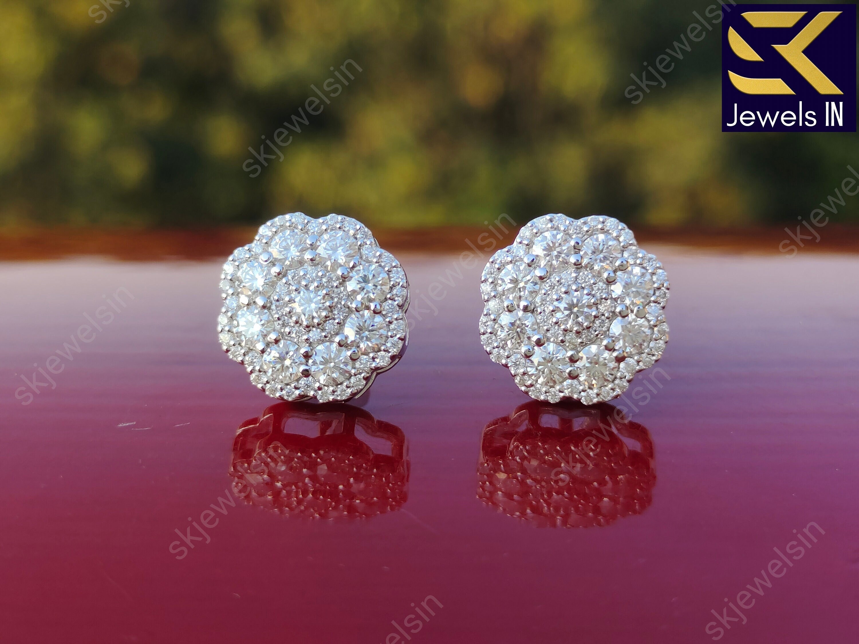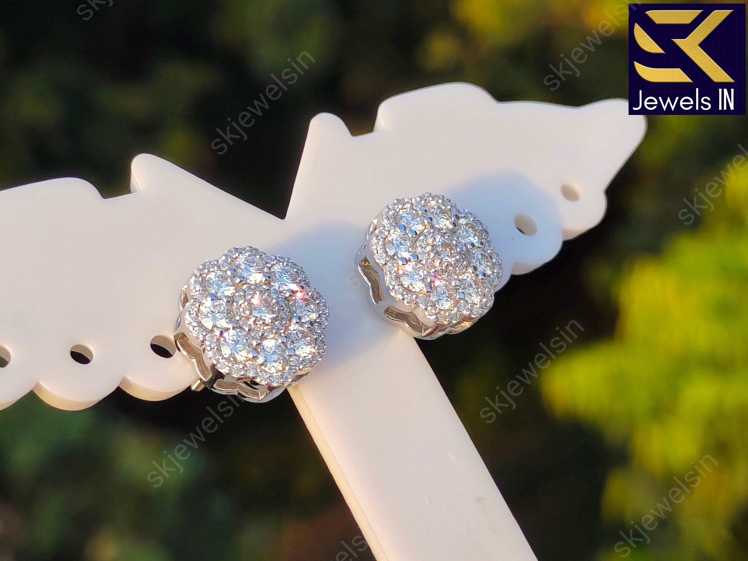 Moissanite Cluster Earrings 10K \ 14K Solid Gold Earrings with Pushbacks, Anniversary Gift, Earrings for Men and Women