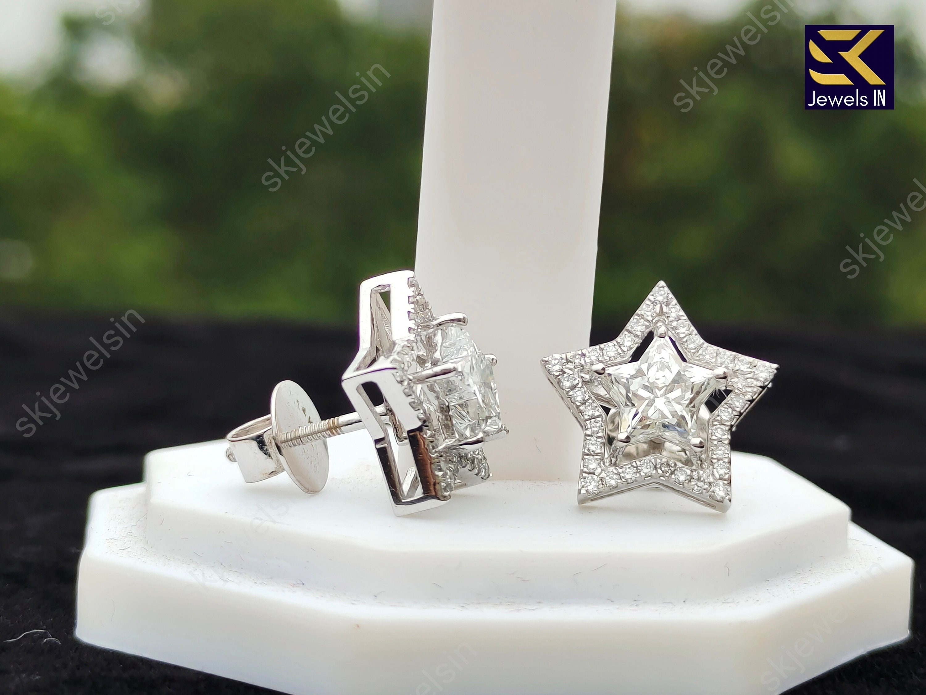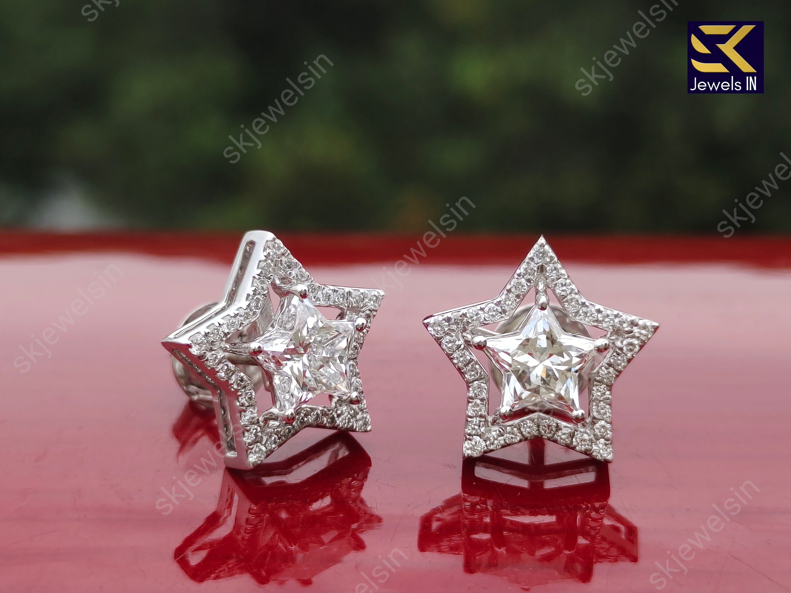 14k White Gold Star Cut Moissanite Earrings Handmade Wedding Stud For Women Unique Stud Earrings for her Anniversary gifts Earrings for her