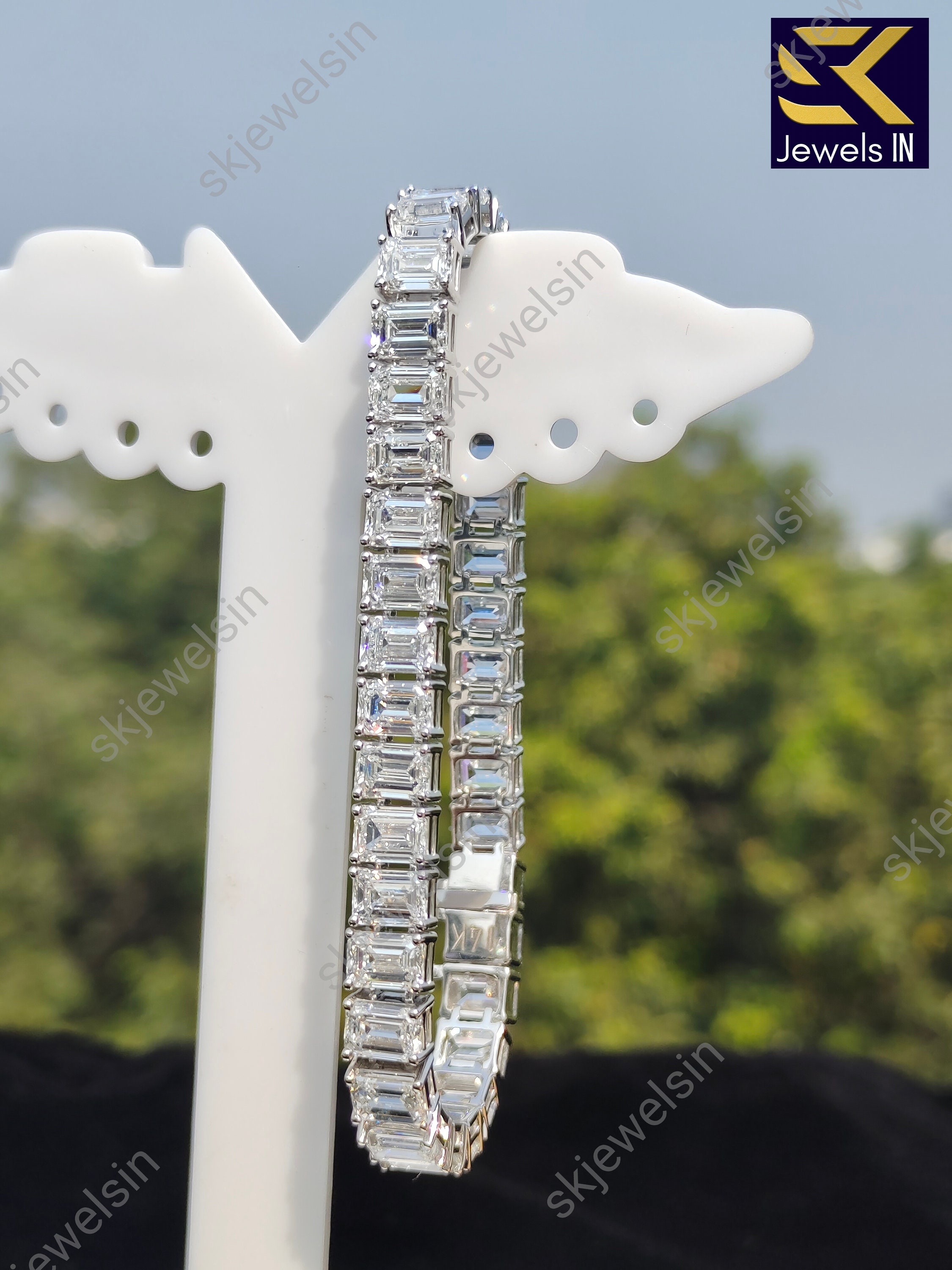 Emerald Cut Moissanite Tennis Bracelet, 925 Sterling Silver, Wedding Jewelry