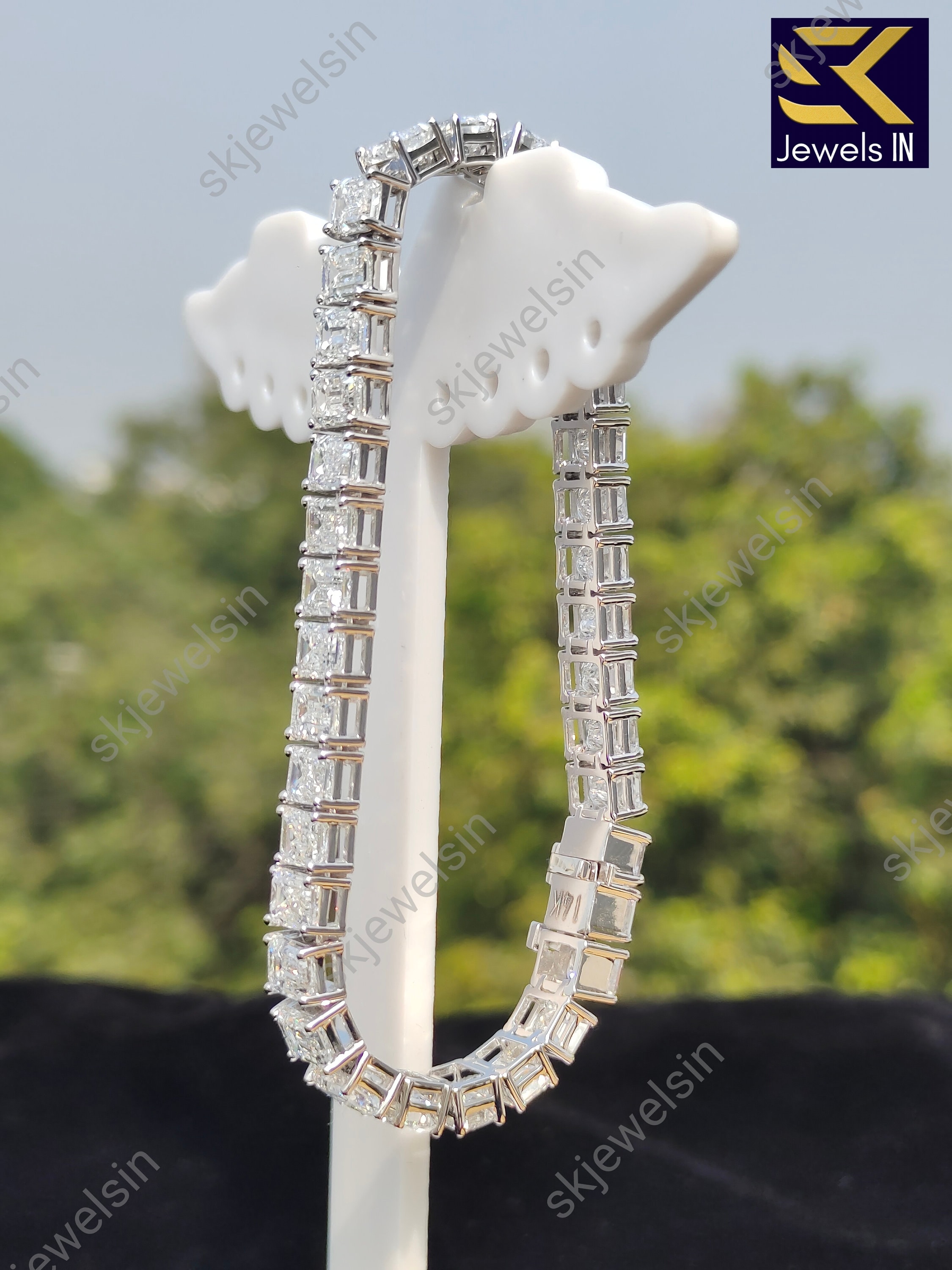 Emerald Cut Moissanite Tennis Bracelet 925 Sterling Silver Bracelet handmade Wedding Bracelet for women Diamond tester pass Gift