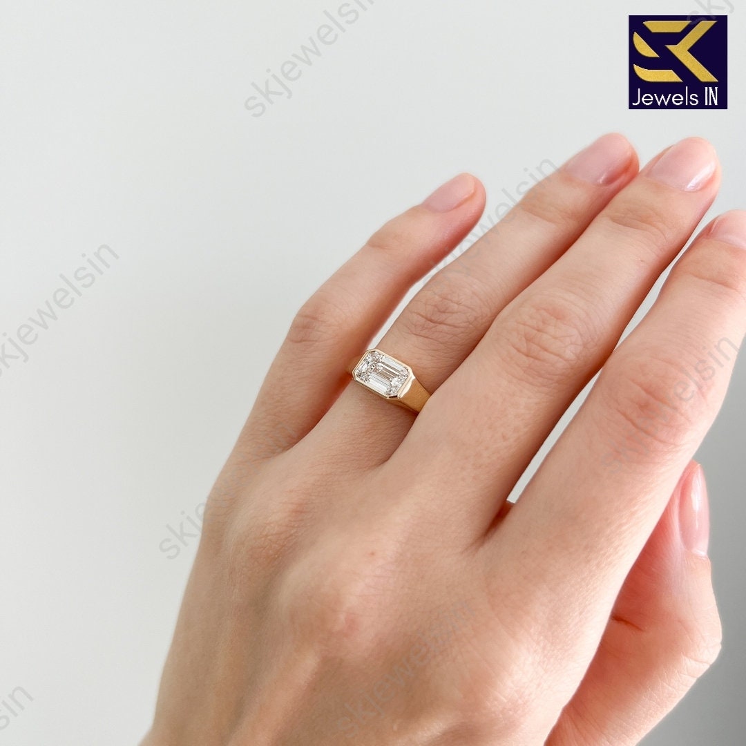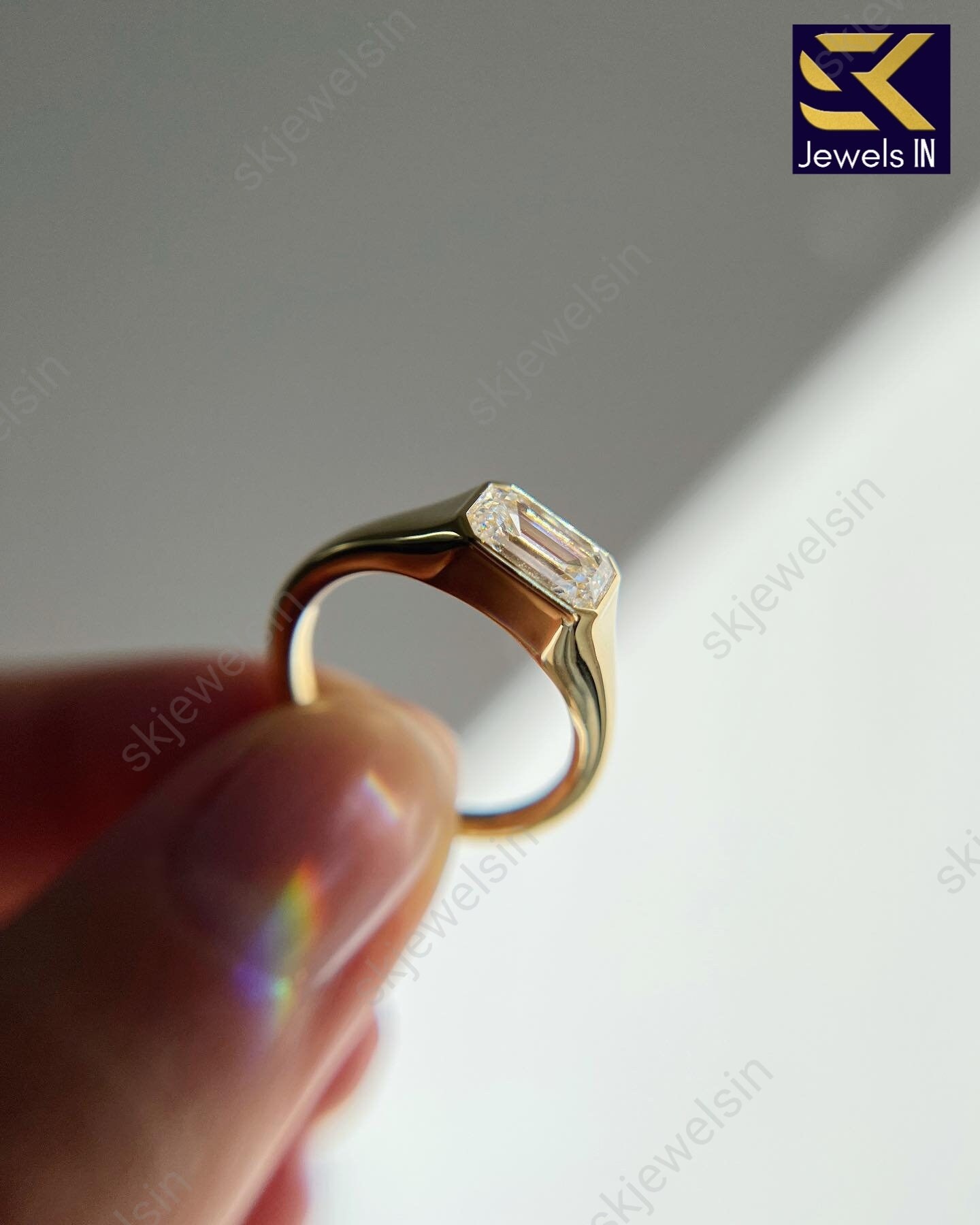 East West Emerald Cut Moissanite Engagement Ring, 14K Gold Wedding & Anniversary Gift Ring For women, Vintage ring for her