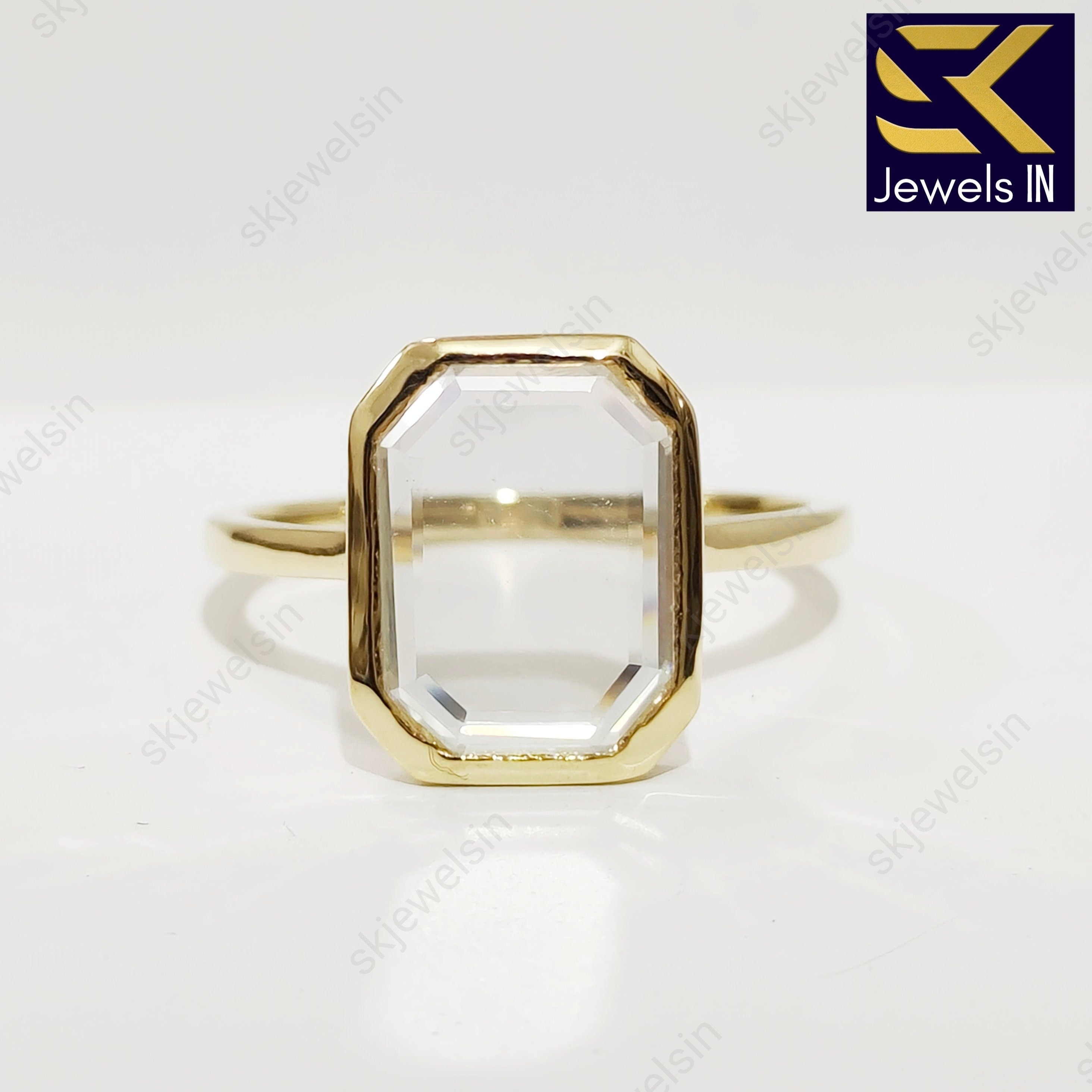 Portrait Cut Emerald Moissanite Ring – Bezel Set Engagement Ring | Art Deco Wedding Ring | 14K Gold Ethical Jewelry | Non-Traditional Bridal