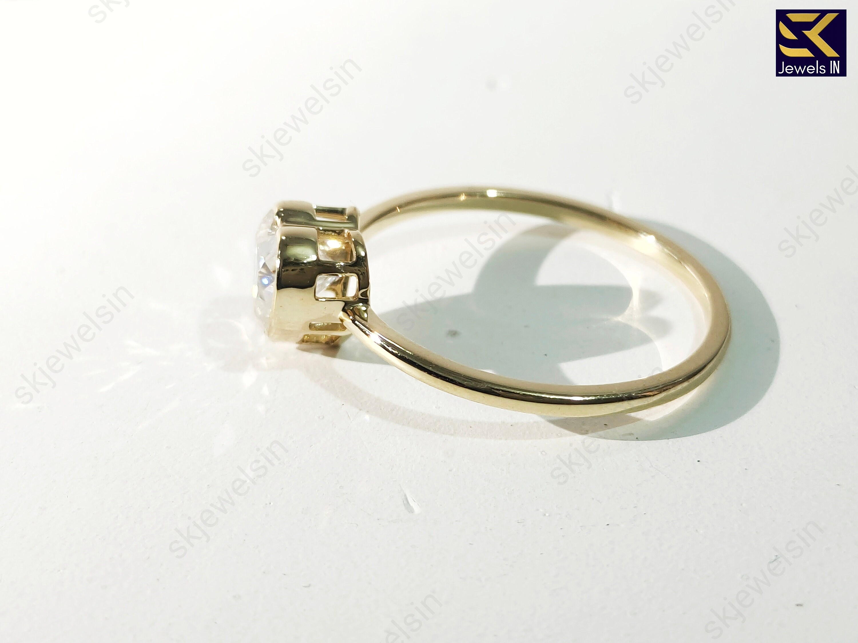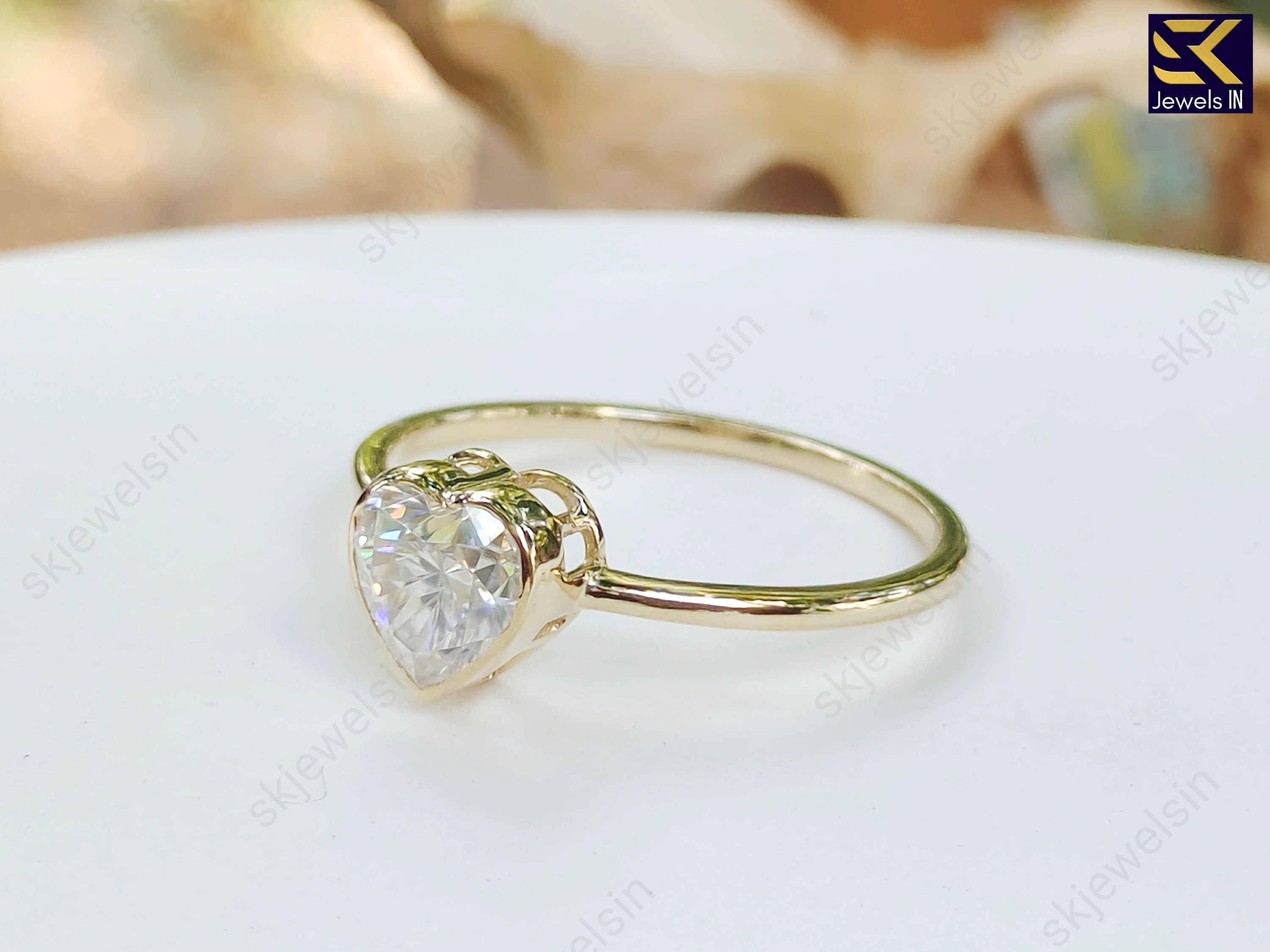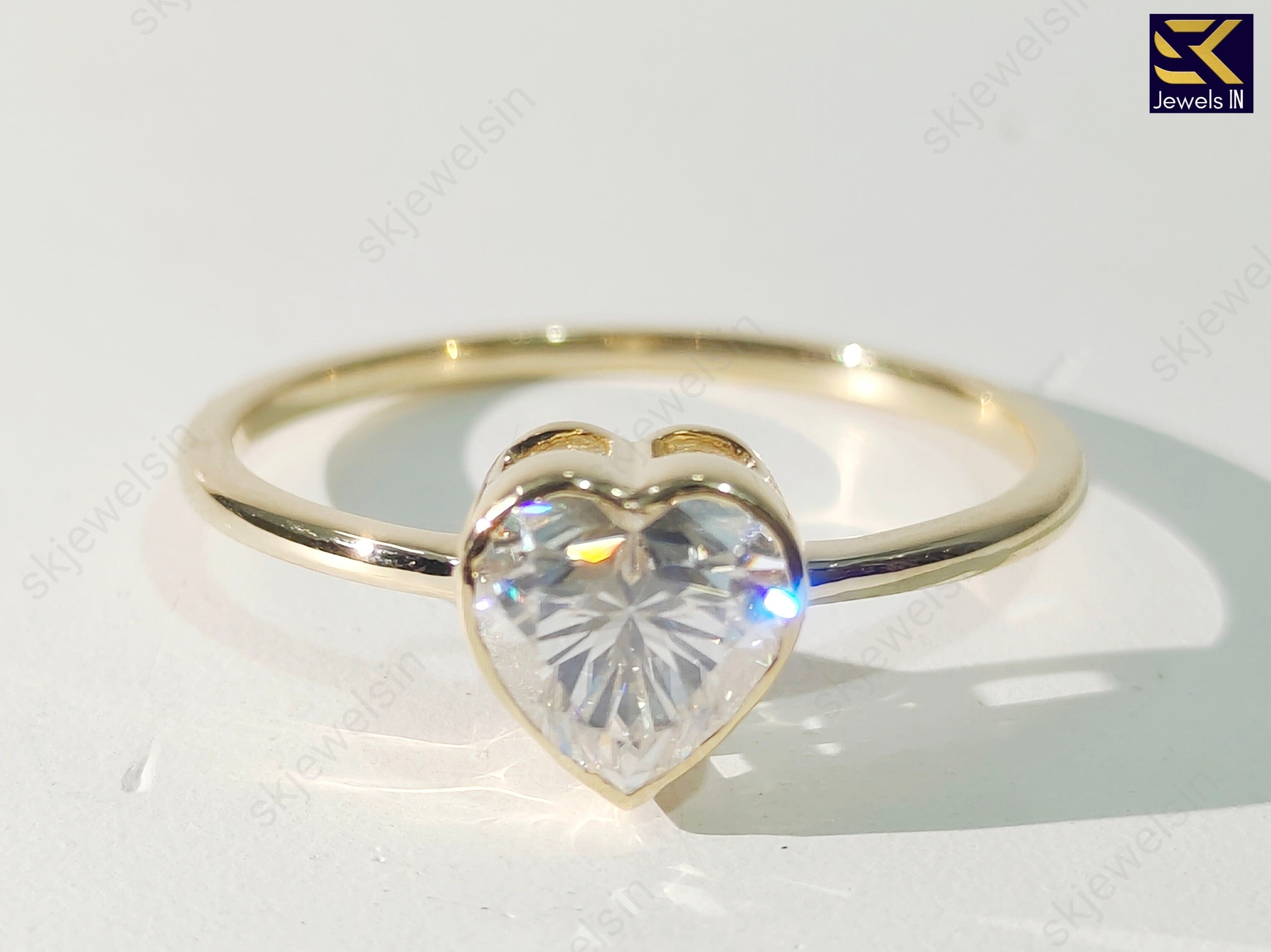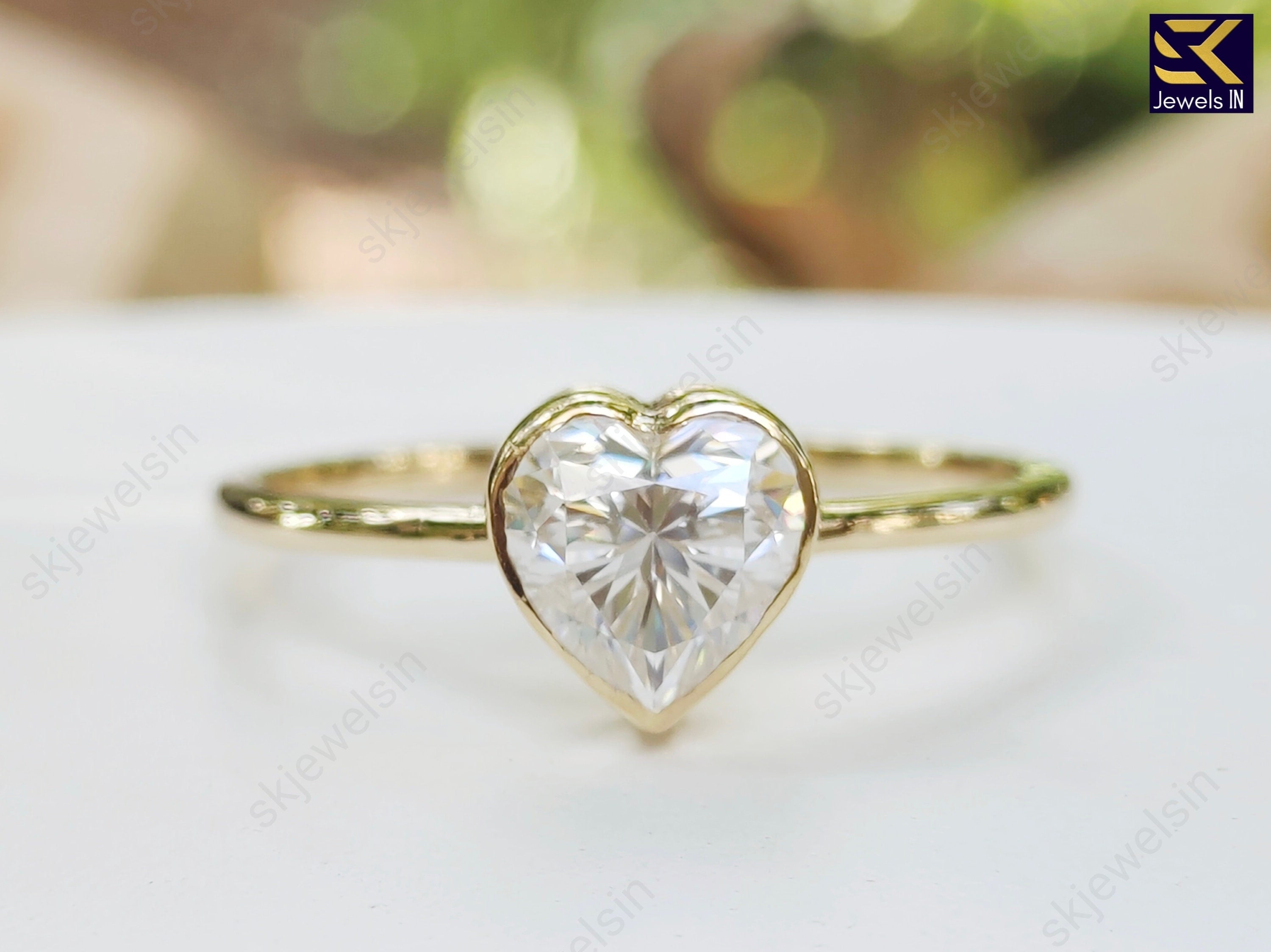 Bezel Set Heart Cut Engagement Ring, 14K Gold Moissanite Ring, Low profile, Heart diamond Ring, Art deco, handmade Vintage jewelry