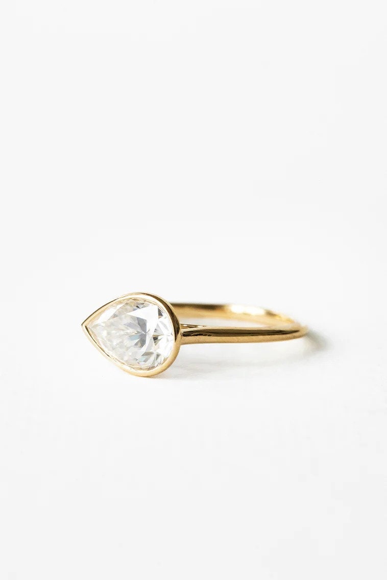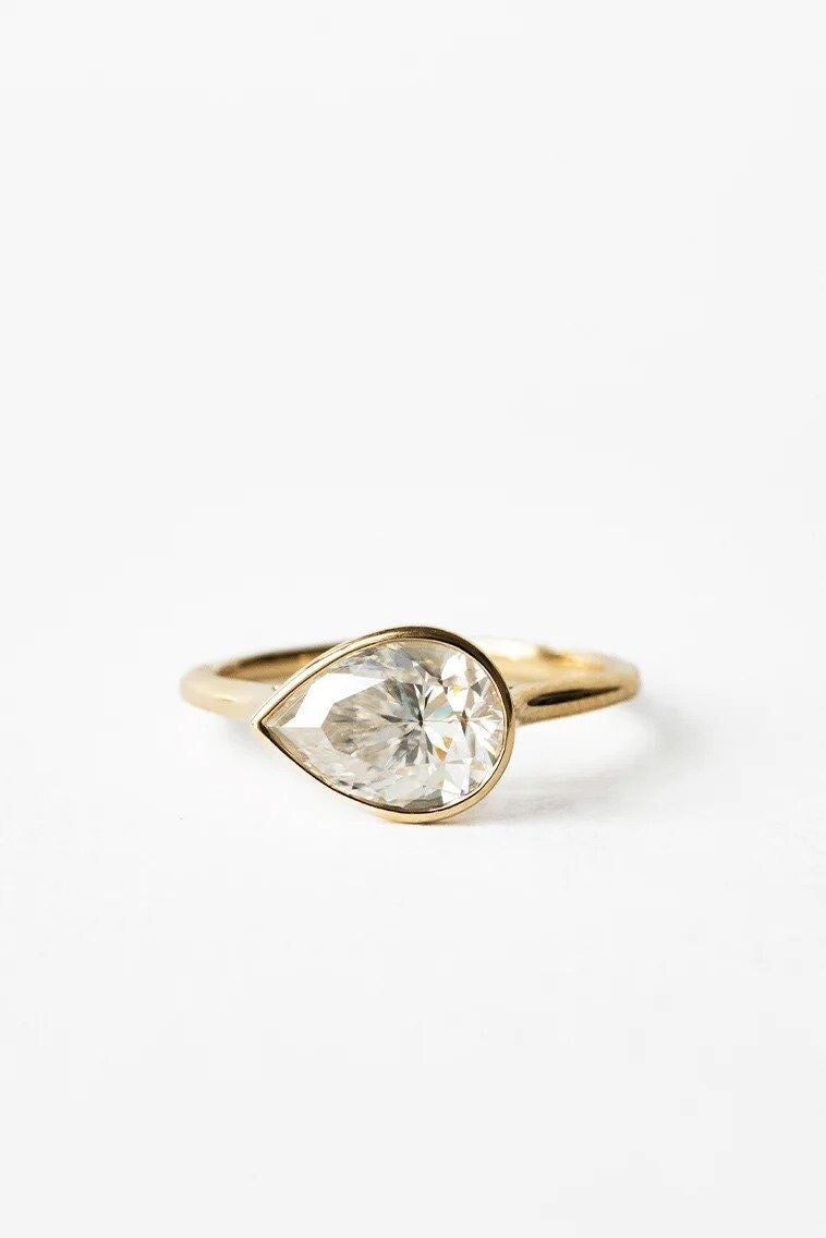 East West Bezel Set Pear Cut Moissanite Engagement Ring, 14K Gold Teardrop Wedding Ring, Personalized Gift for women, Art deco Handmade ring