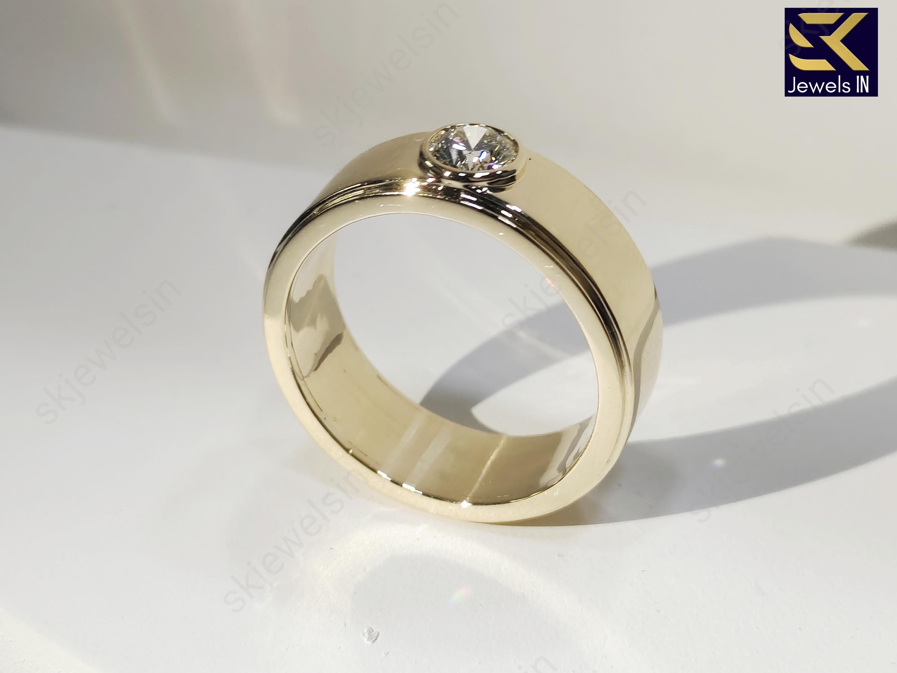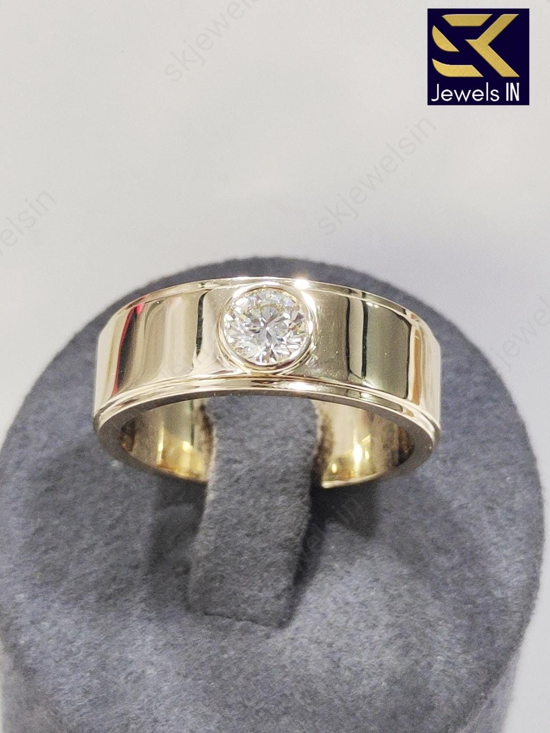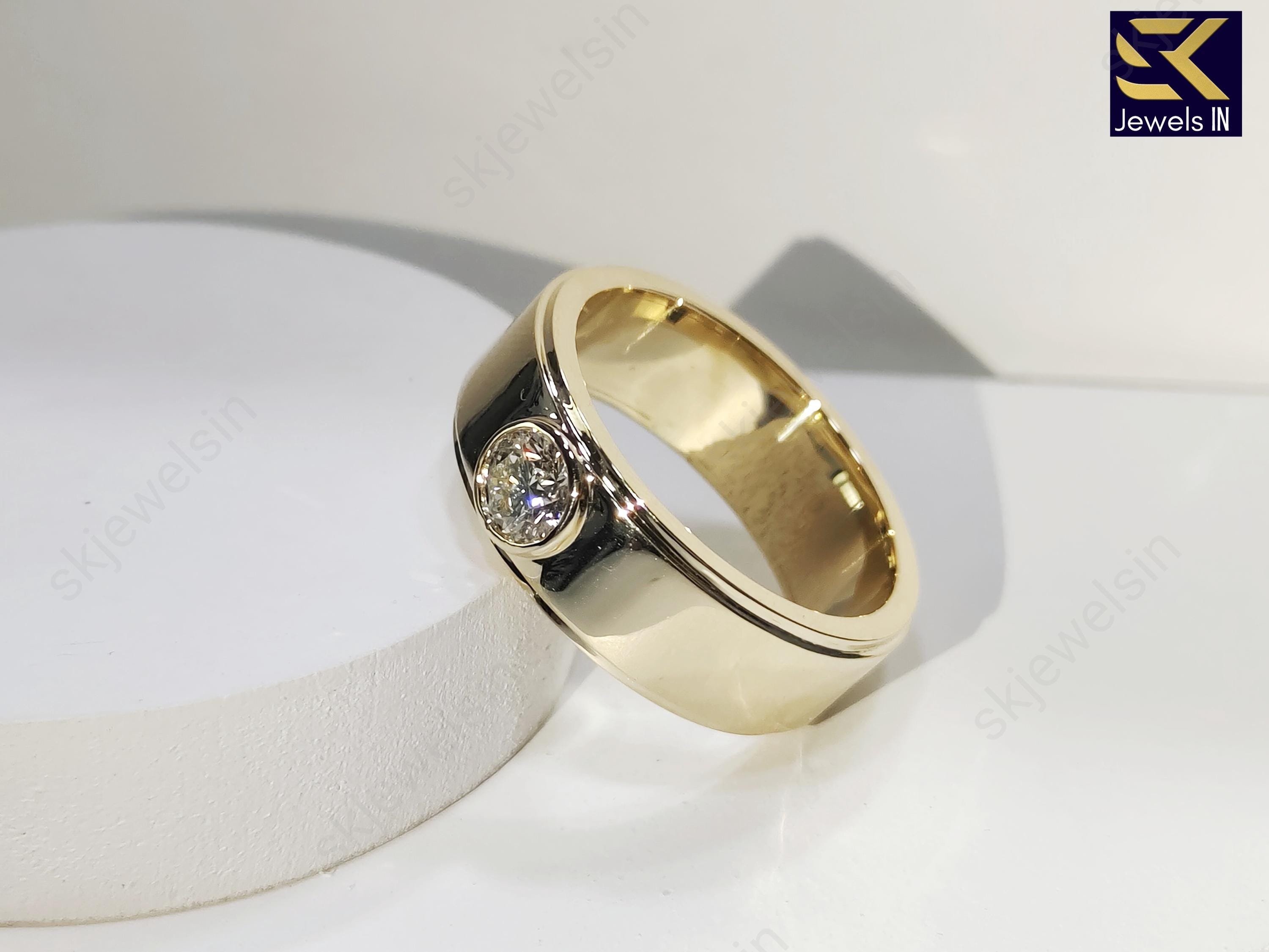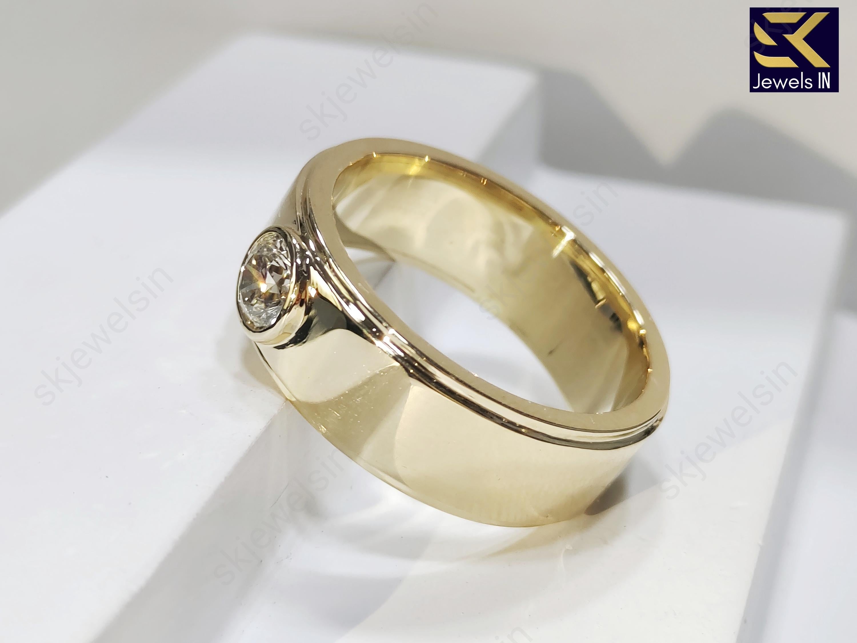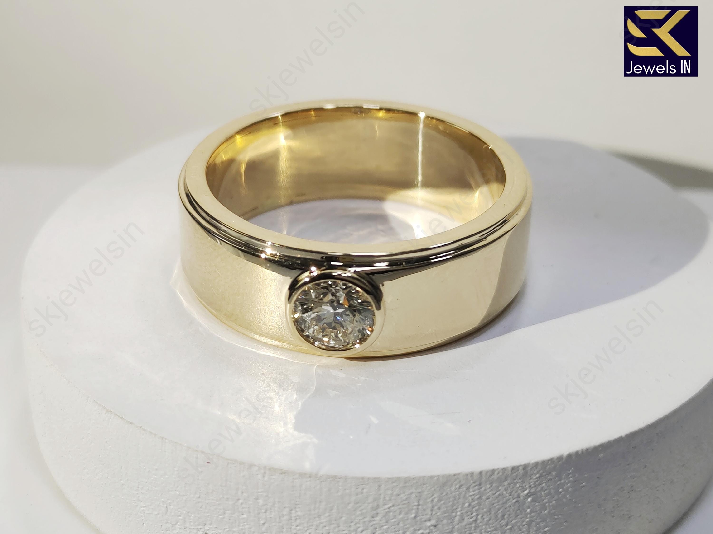 14K Bezel Set Round Moissanite Wedding Band For Men, 8 MM Bandwidth Solitaire Gold band For him, Gift For Husband, Personalized Jewelry