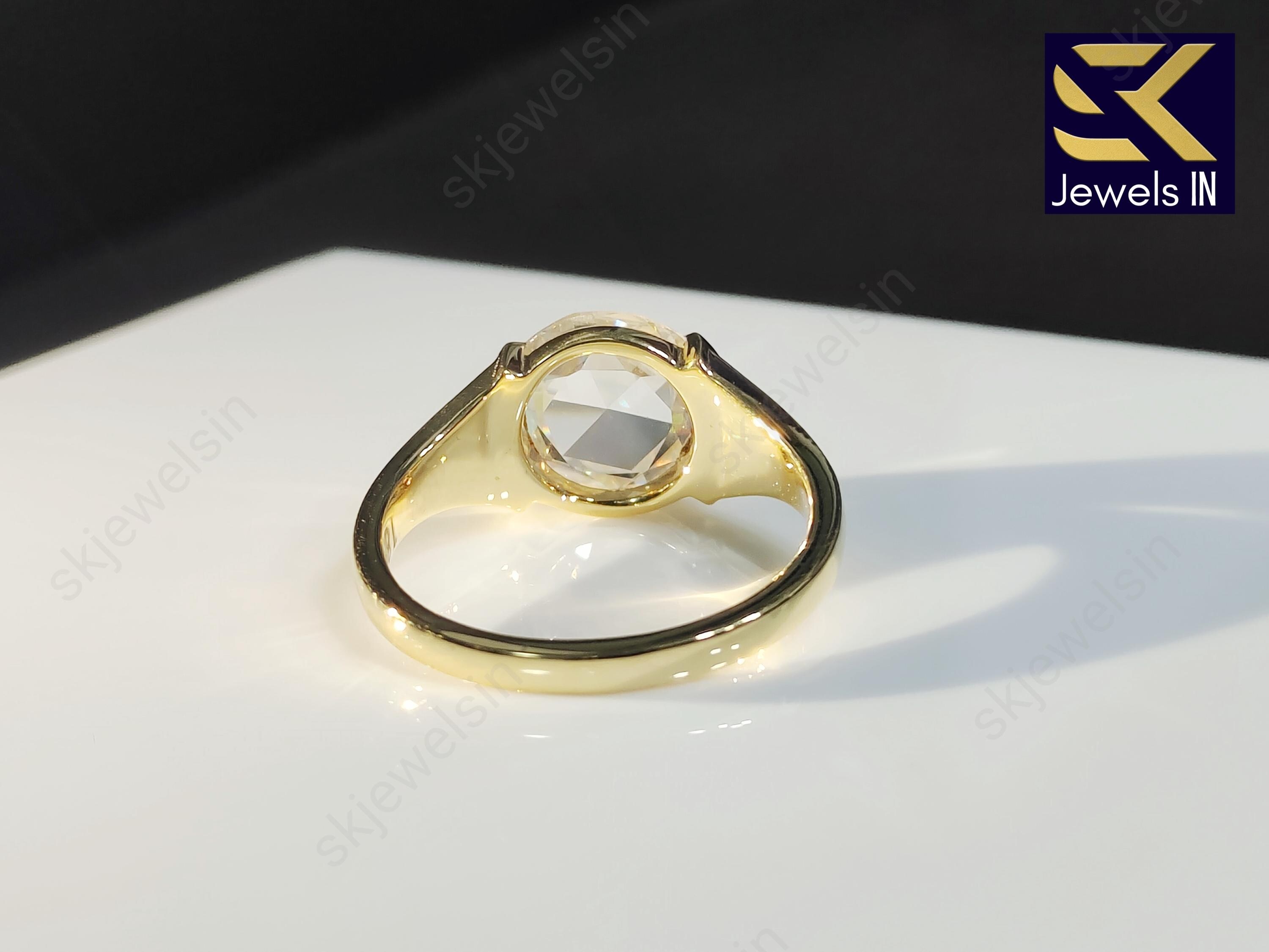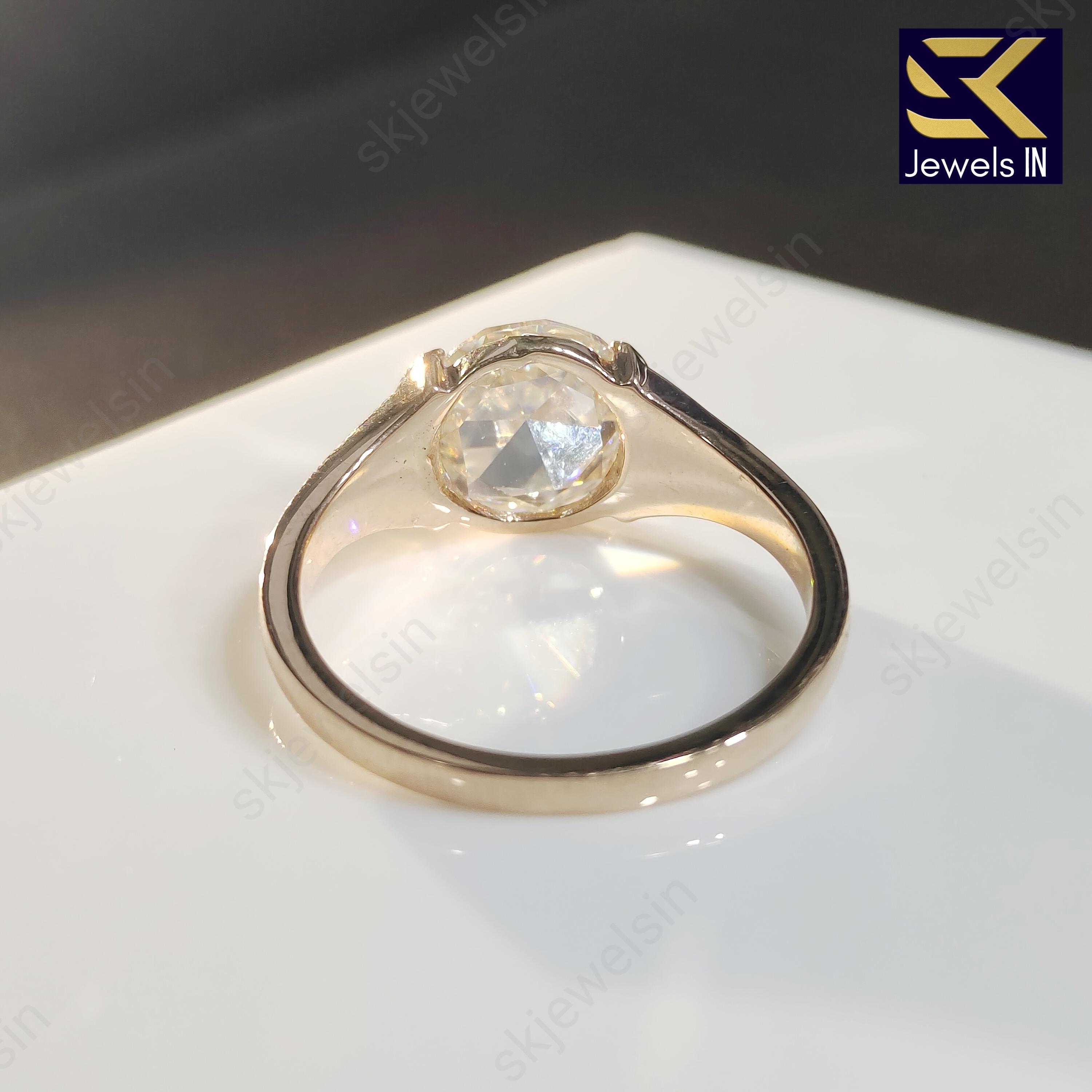Round Rose Cut Moissanite Engagement Ring, 14K Rose Gold Half Bezel Set Wedding & Anniversary Ring, Unique Vintage Ring, Gift for her