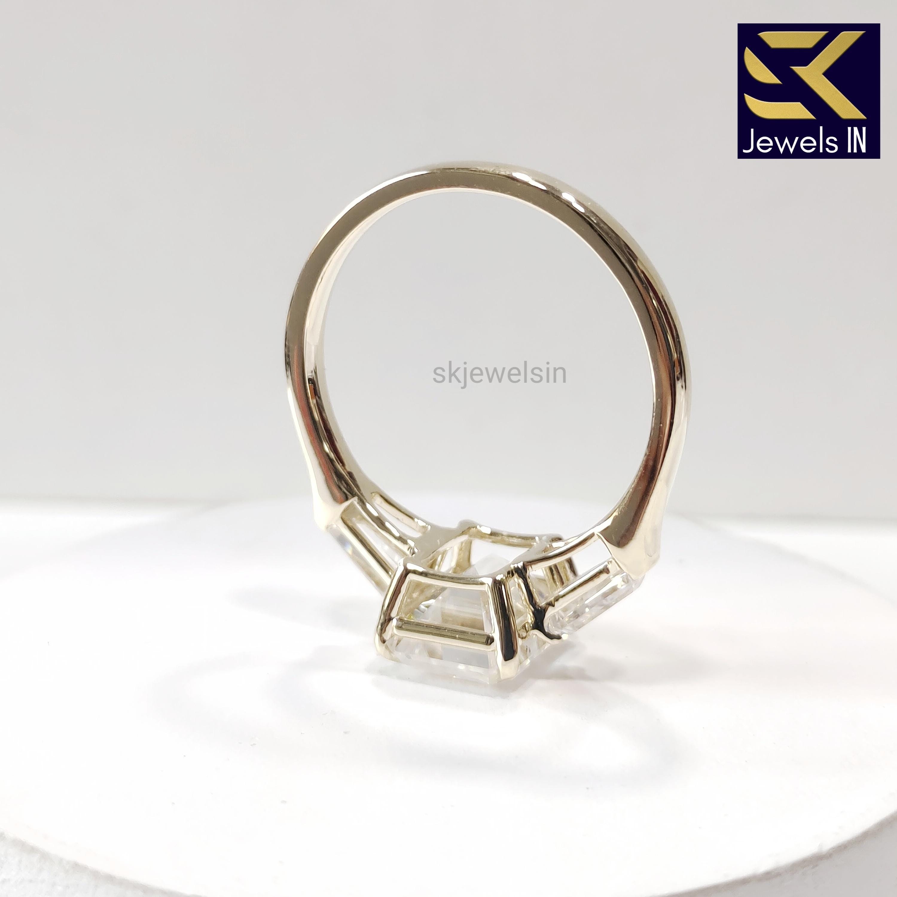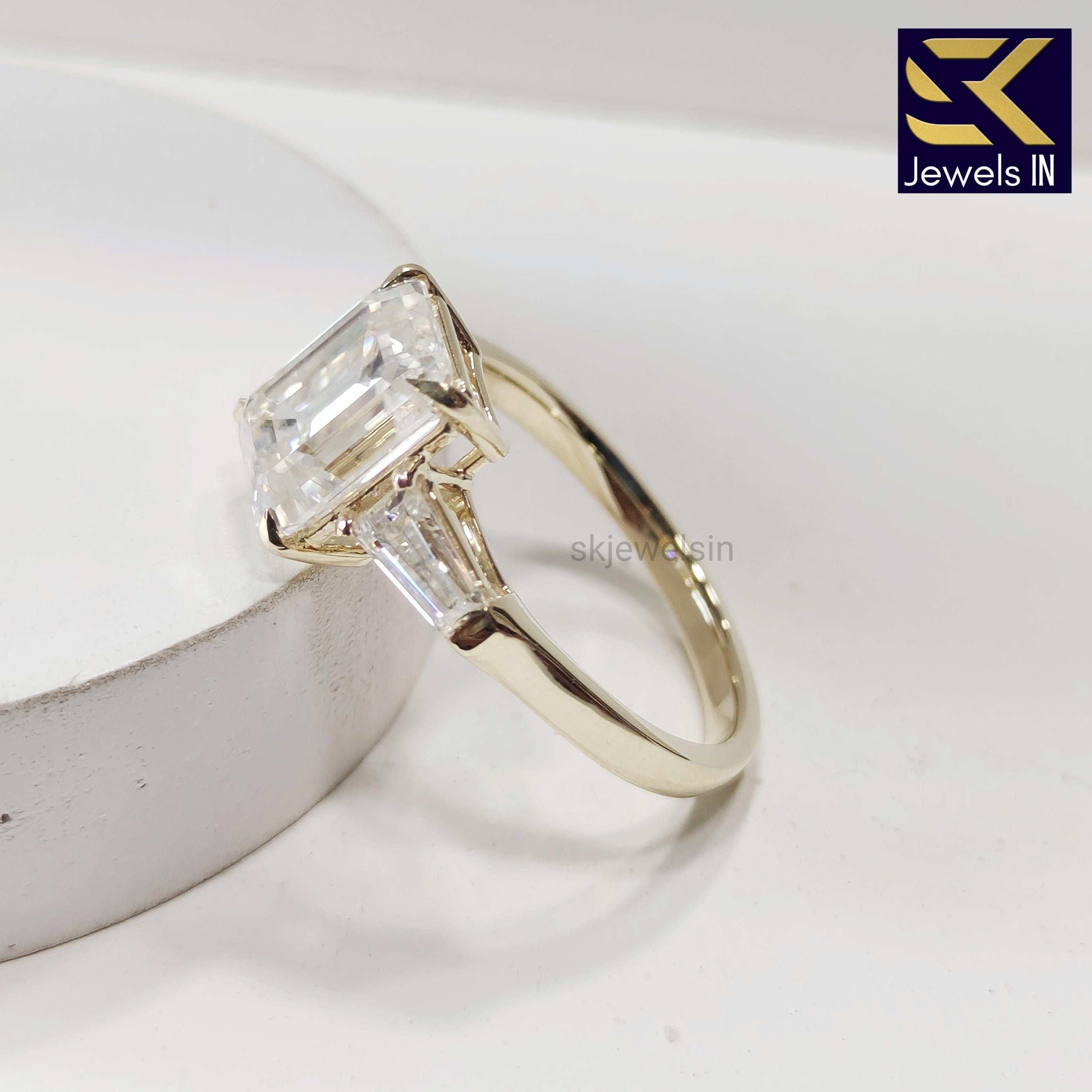 14K Solid Gold Emerald Moissanite Engagement Ring For Women Baguette Accent Wedding Ring Anniversary Ring Gift for women, Promise ring