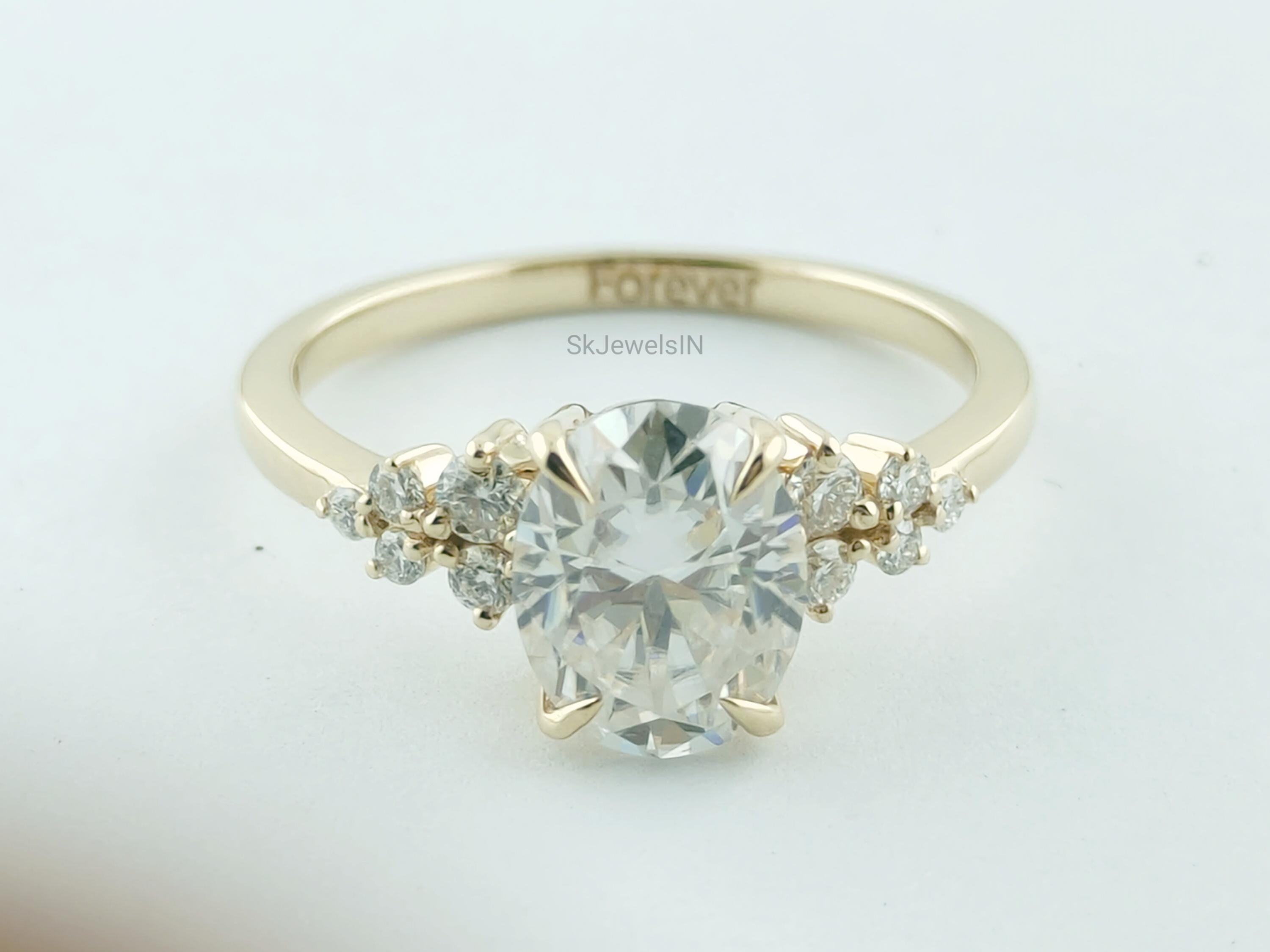 14K Gold Oval Moissanite Engagement Ring, Oval Wedding Ring, Anniversary Gifts, Promise Ring, Gifts for Women, personalized Ring