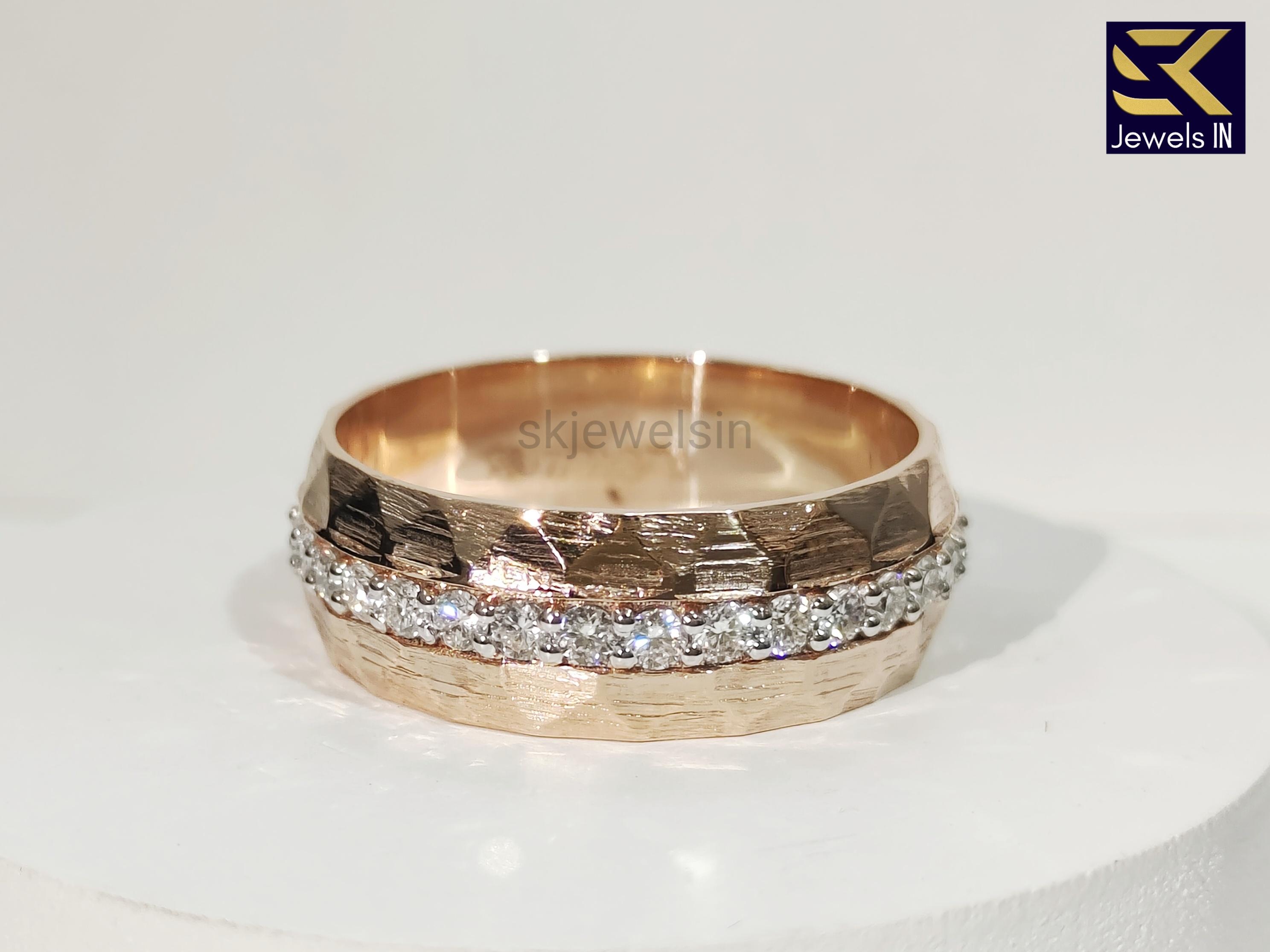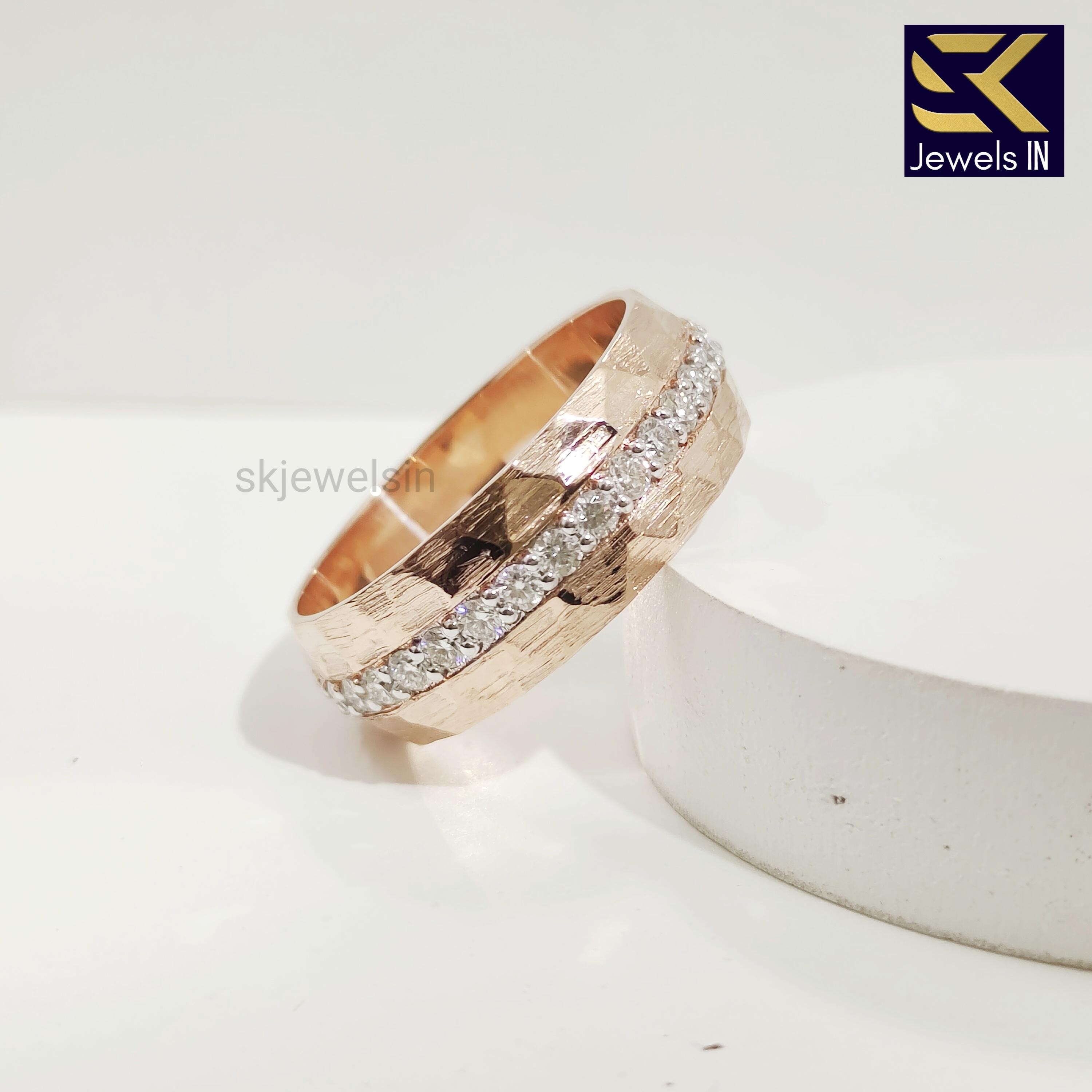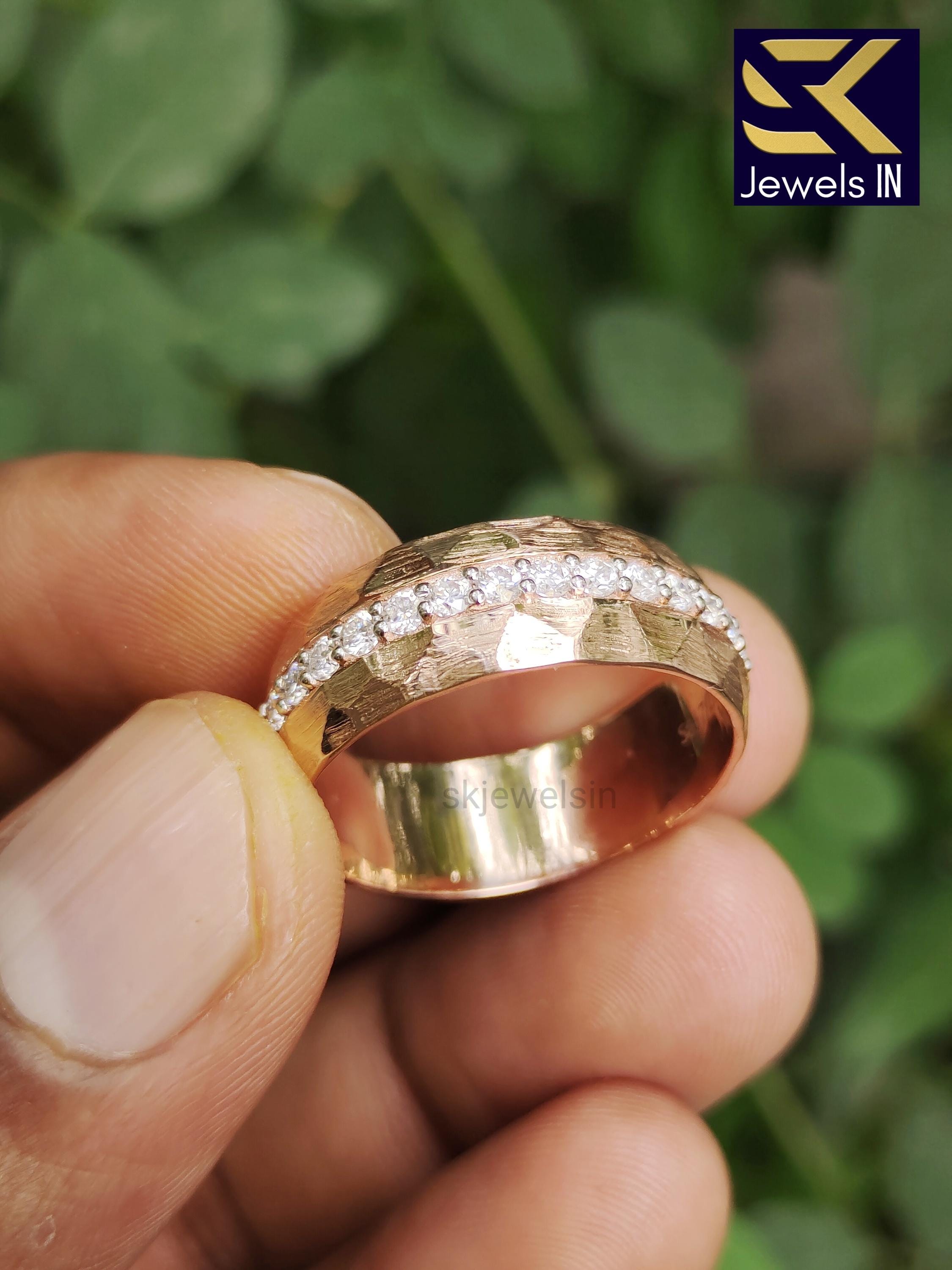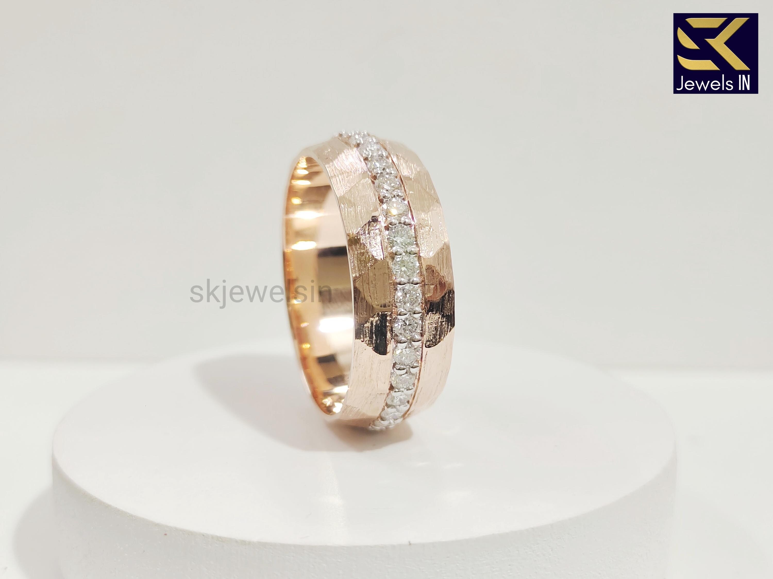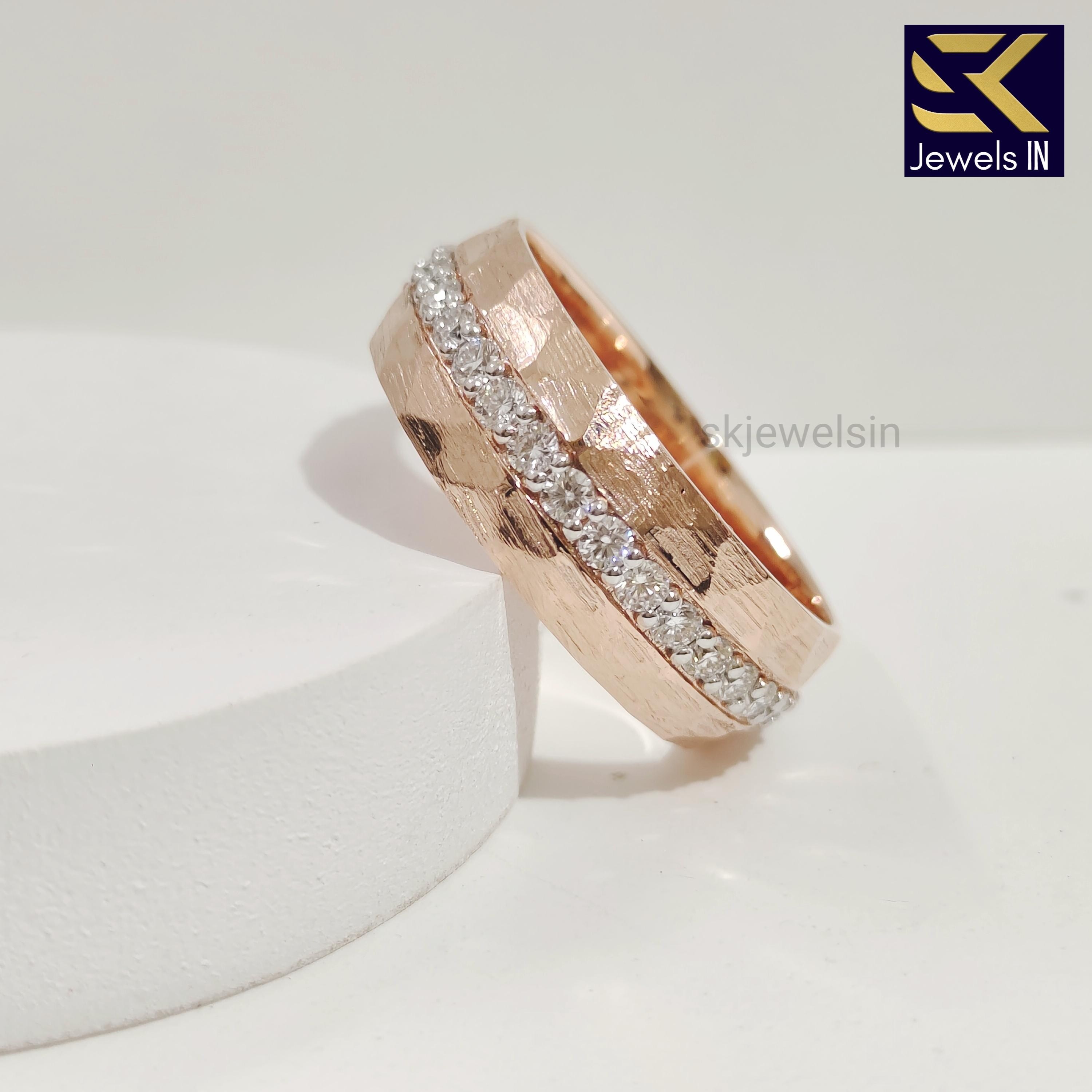 14K Rose Gold Men's Wedding Band, Matte Finish Eternity Unique band For Men, Hammered Gold Band for Him, Gift For Husband
