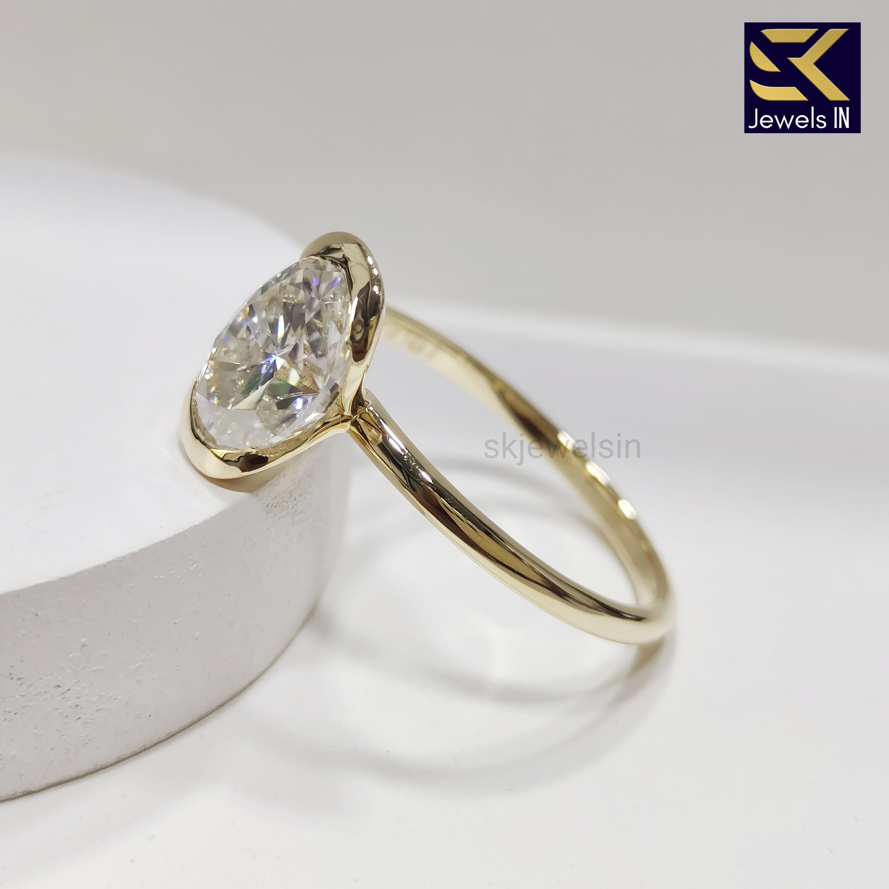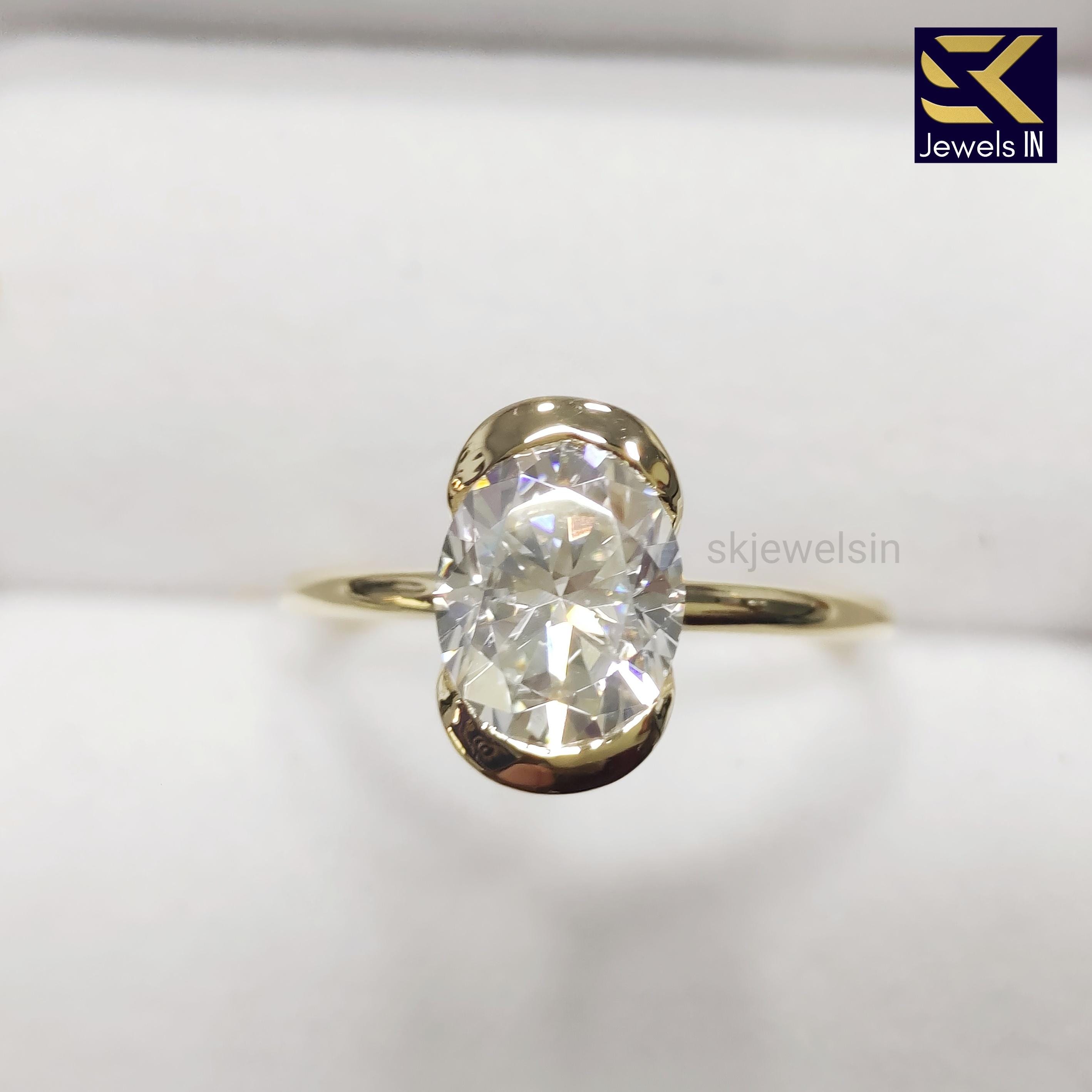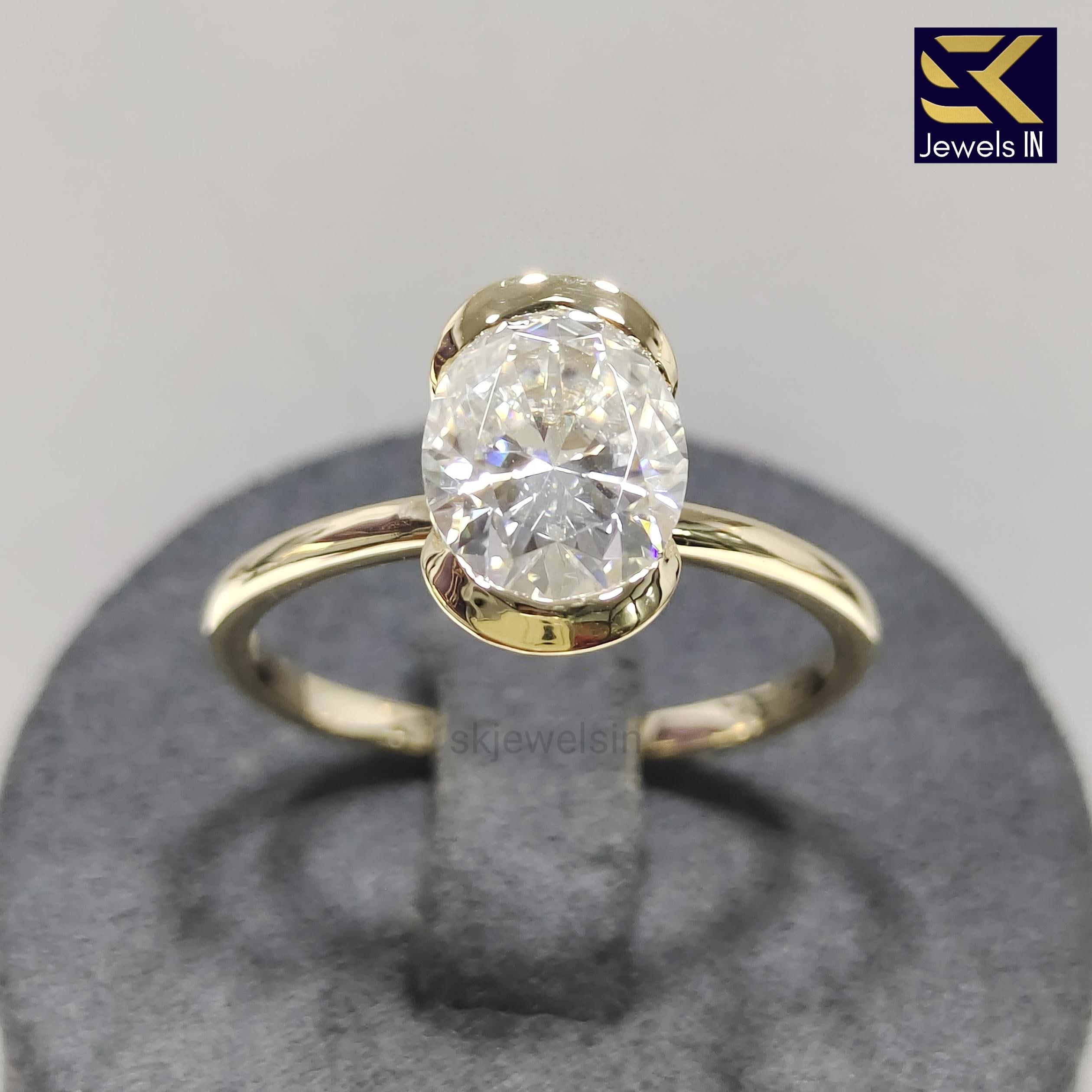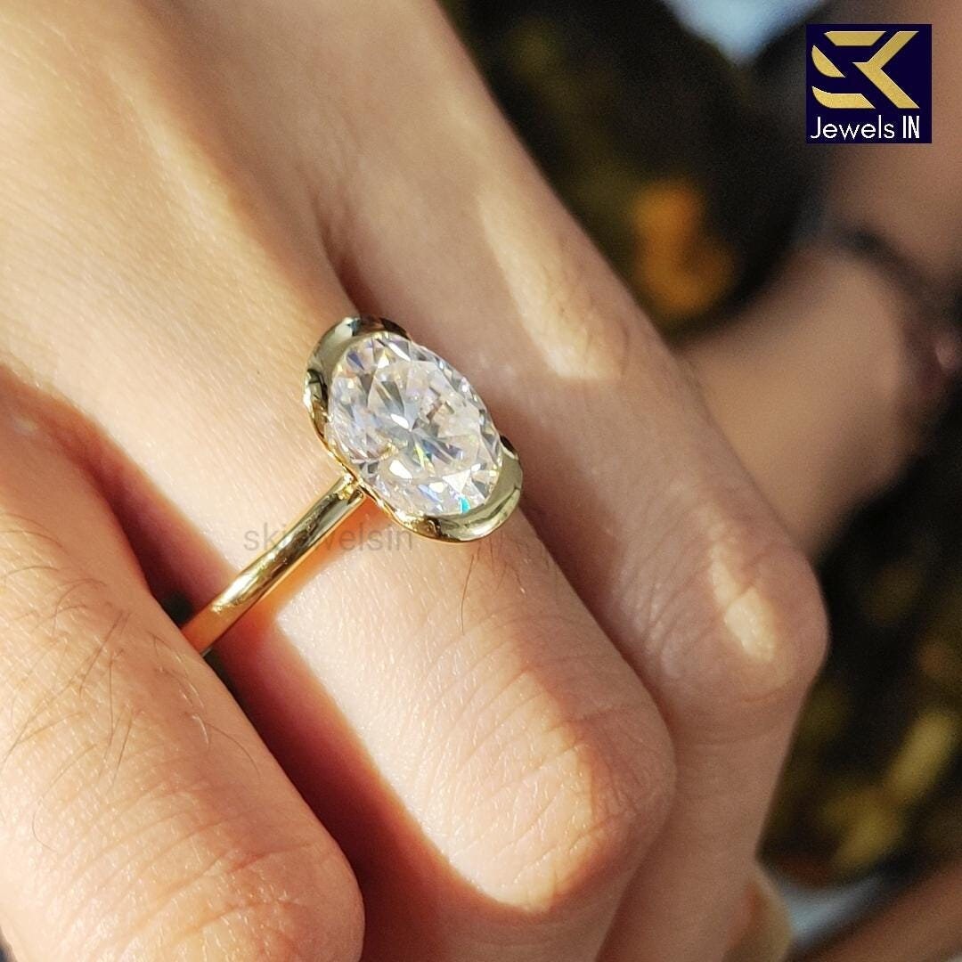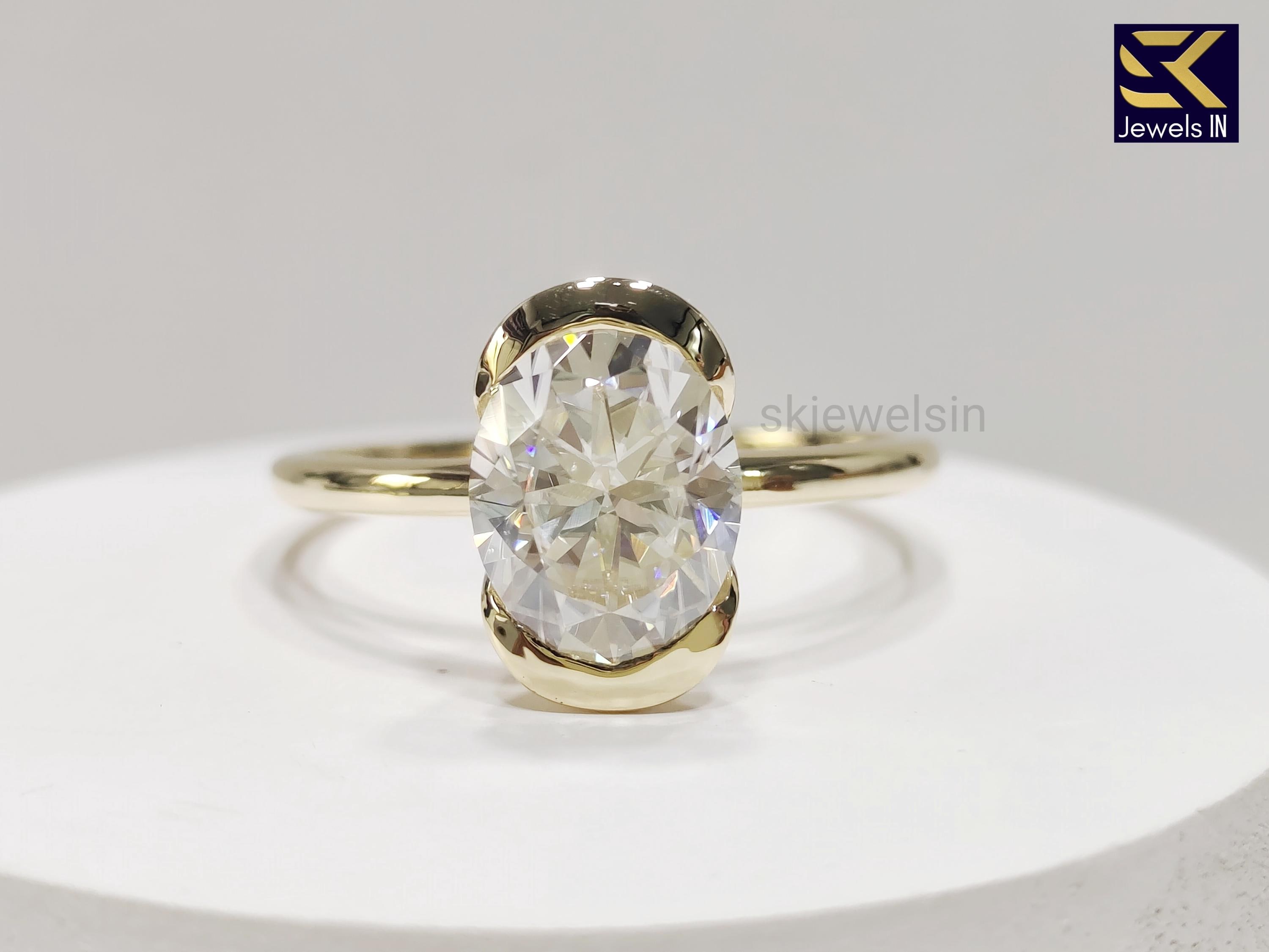 Half Bezel Set Oval Engagement Set, 14K Gold Diamond Ring, Oval Moissanite Wedding Ring, Gifts For Women, Personalized Gift ring for her