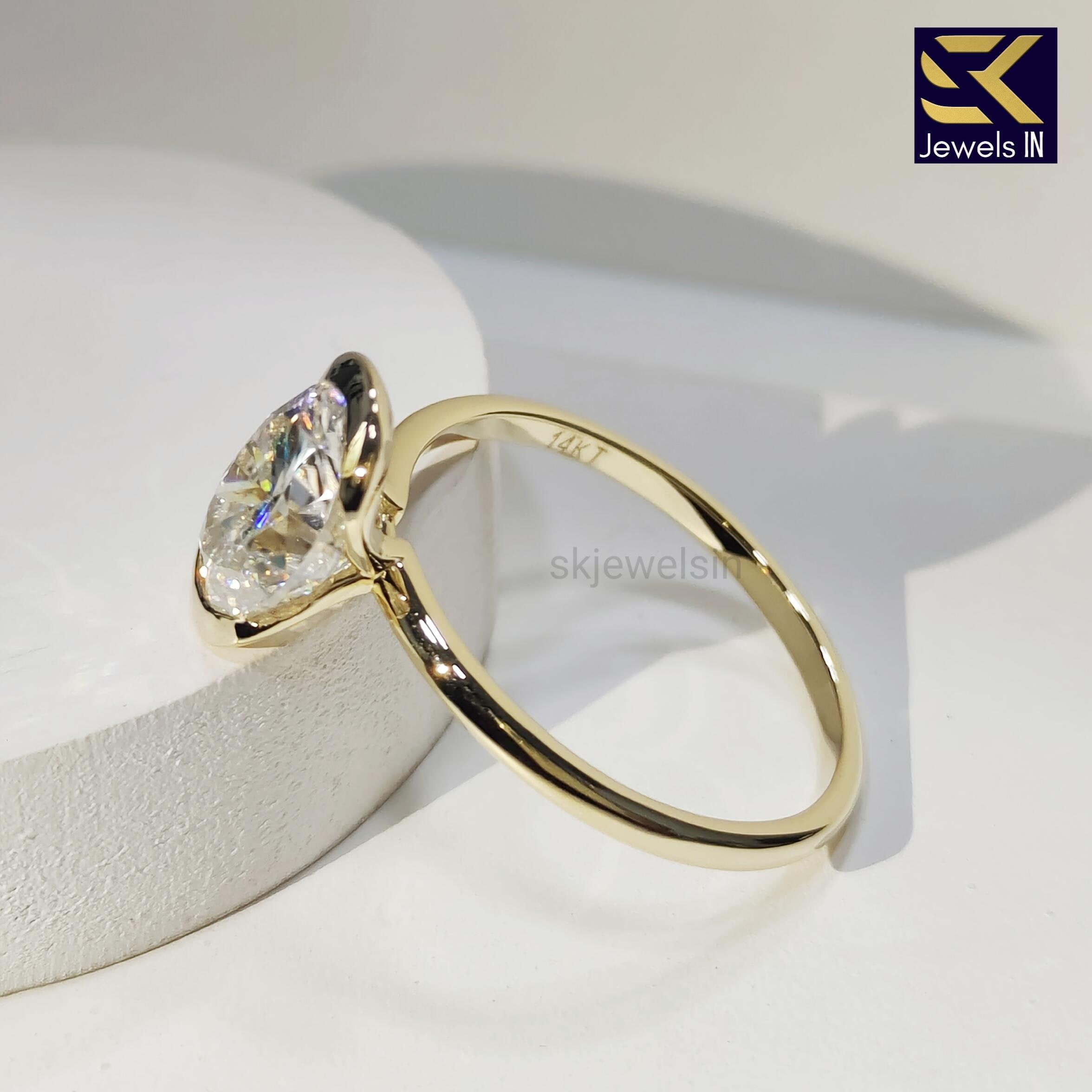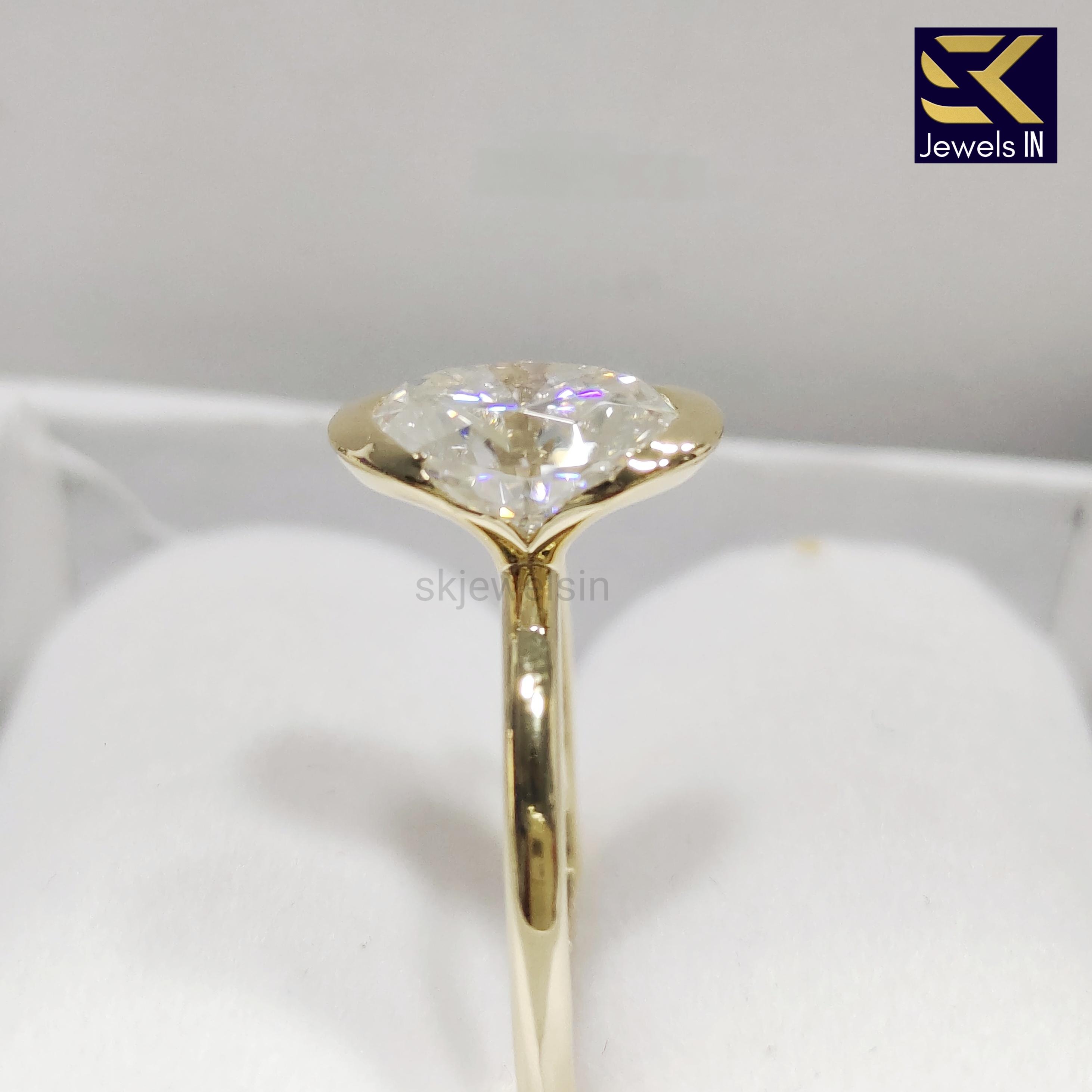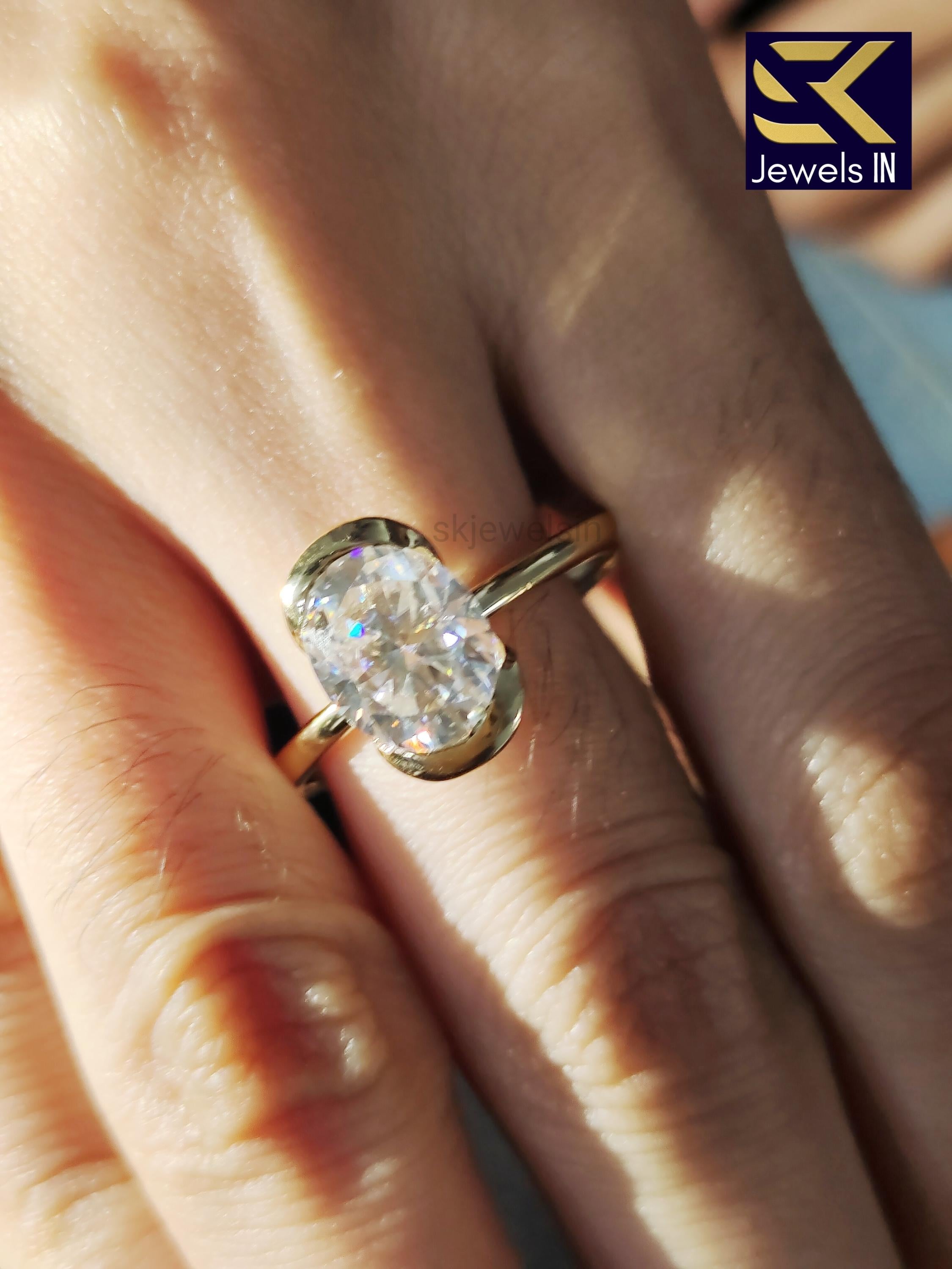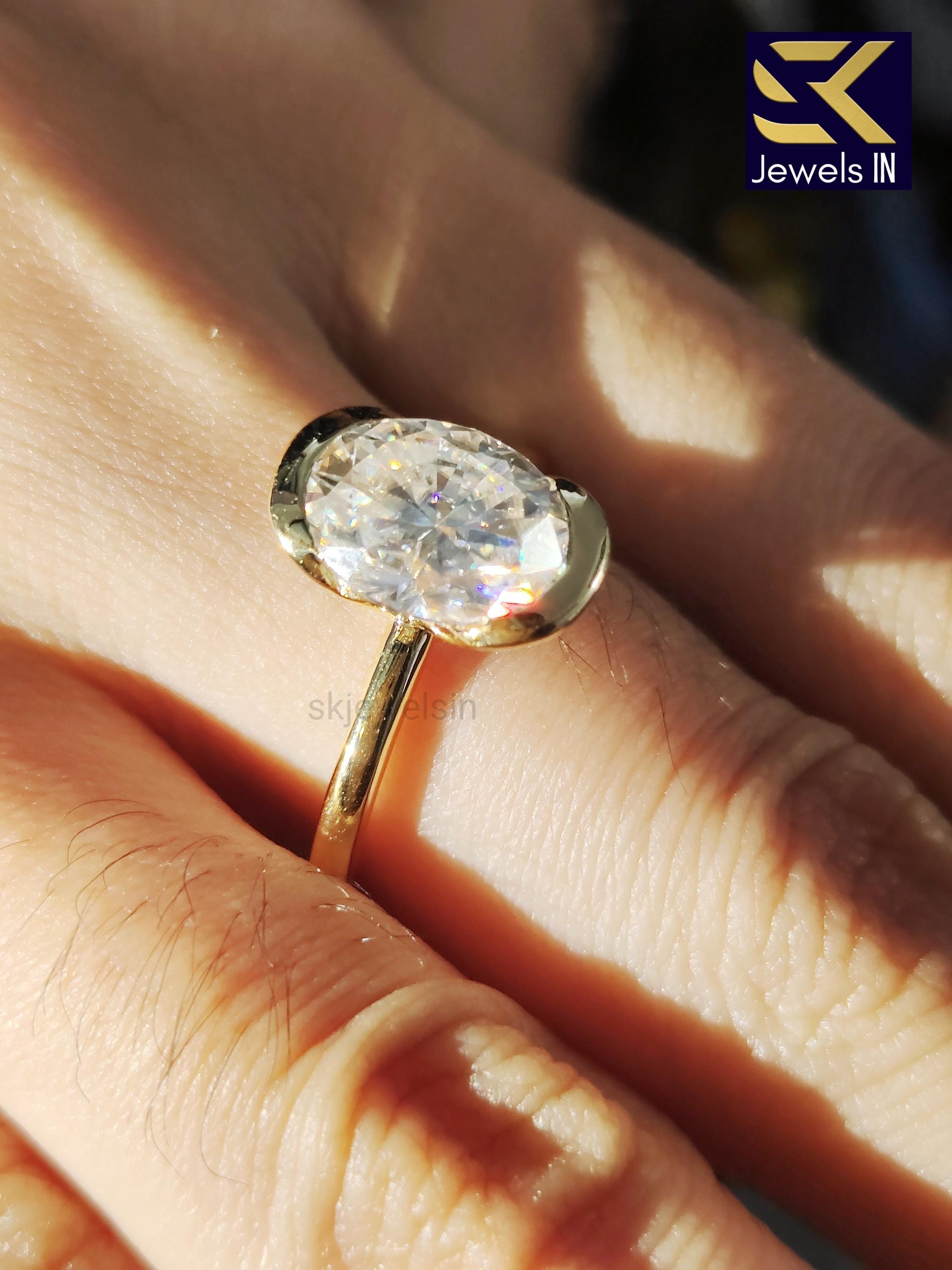 Half Bezel Set Oval Engagement Set, 14K Gold Diamond Ring, Oval Moissanite Wedding Ring, Gifts For Women, Personalized Gift ring for her