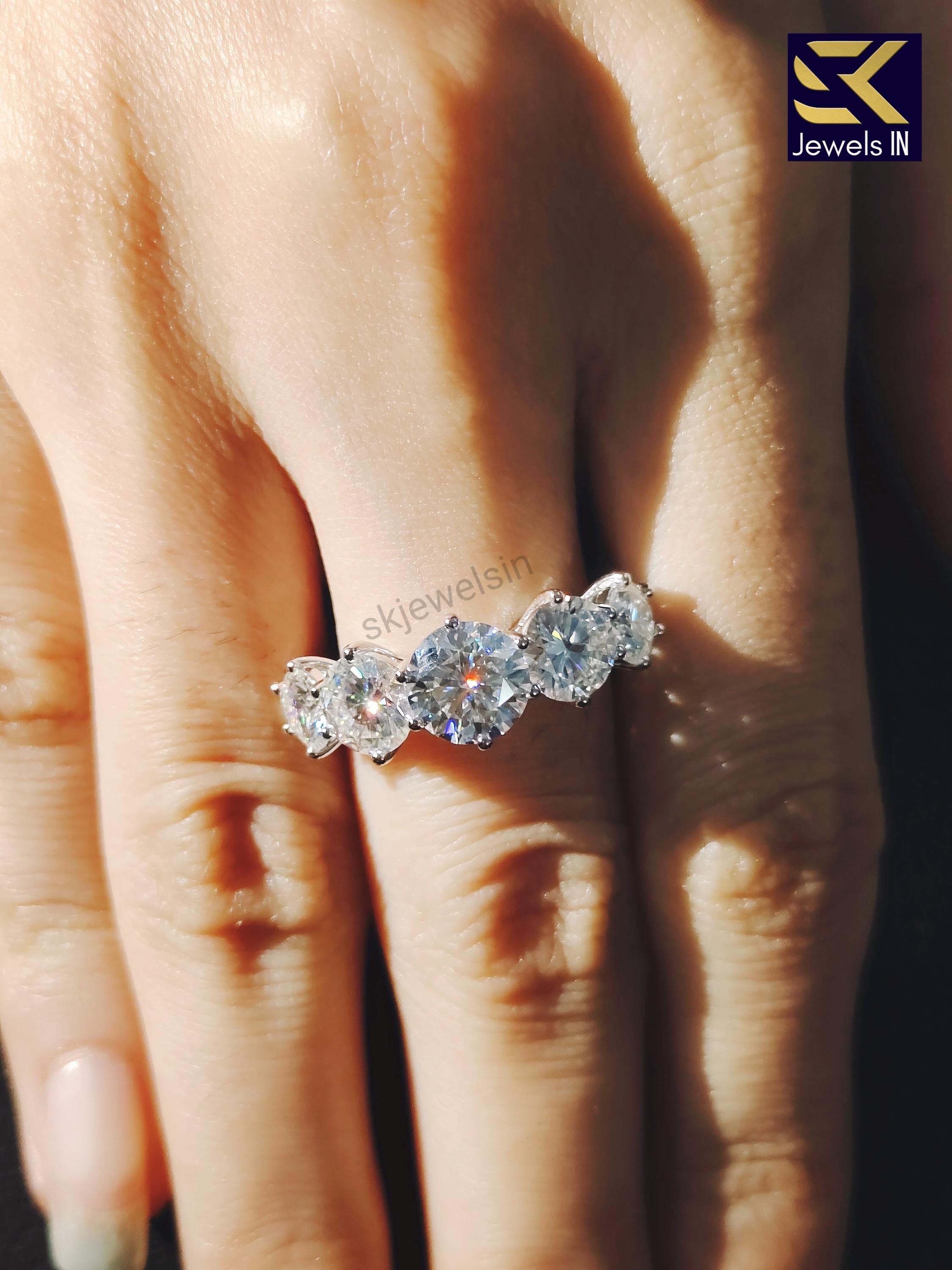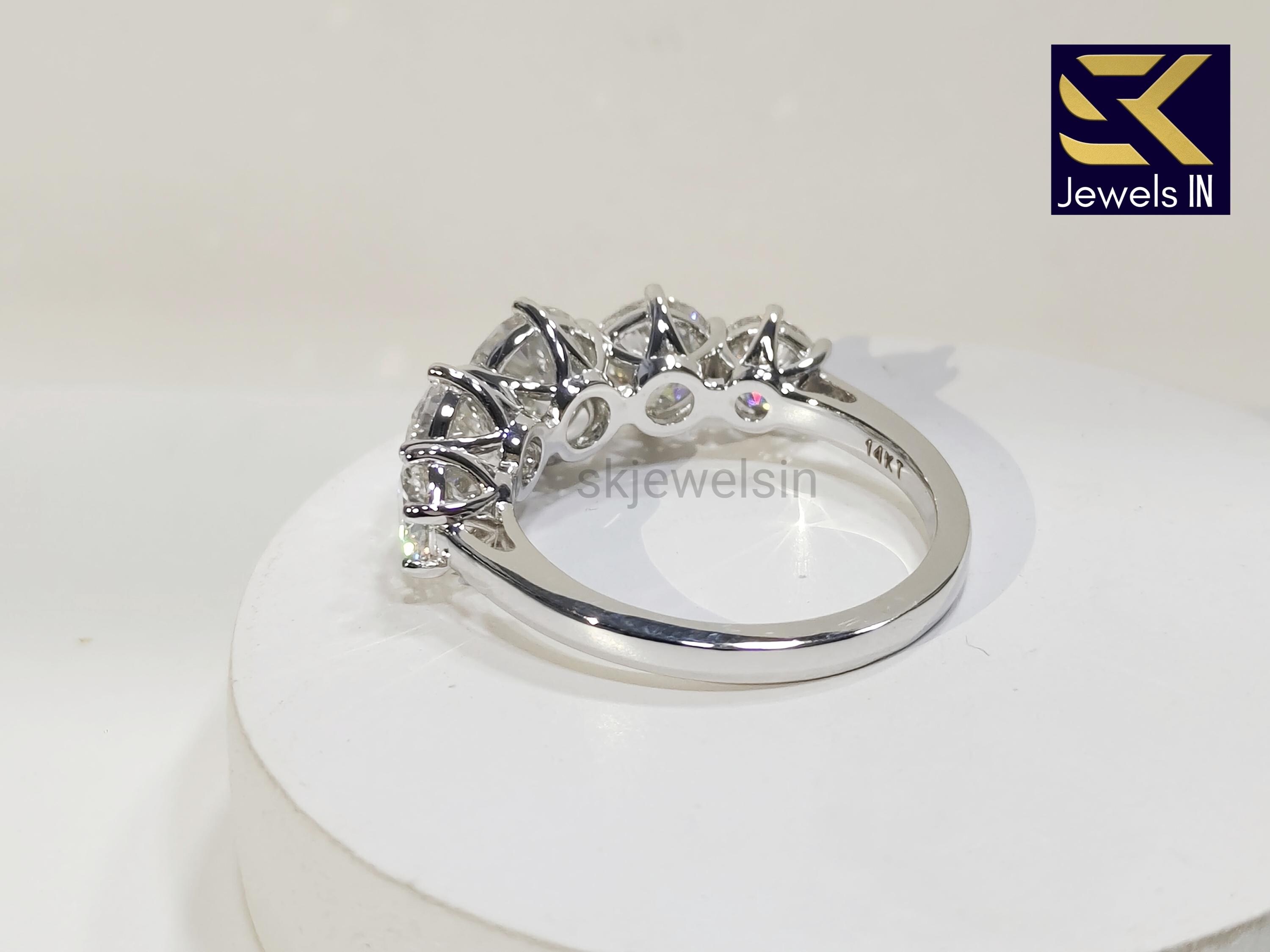Round Brilliant Cut Five Stone Moissanite Engagement Ring, 14K White Gold Wedding Ring, Anniversary Gift, unique gift for her Art deco