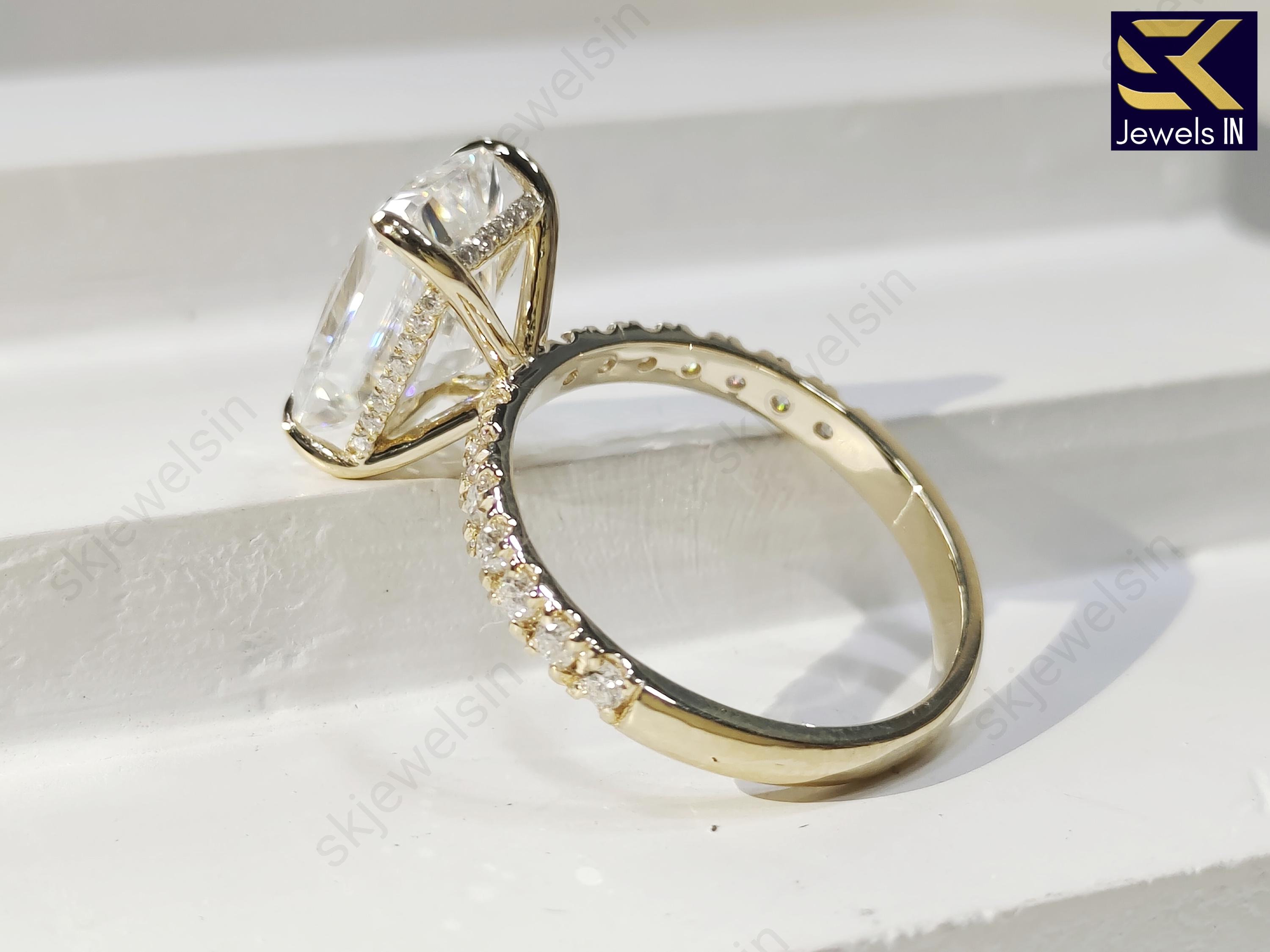 Radiant Cut Moissanite Engagement Ring – 14K Gold Hidden Halo Ring – Elegant Wedding & Anniversary Gift for Her
