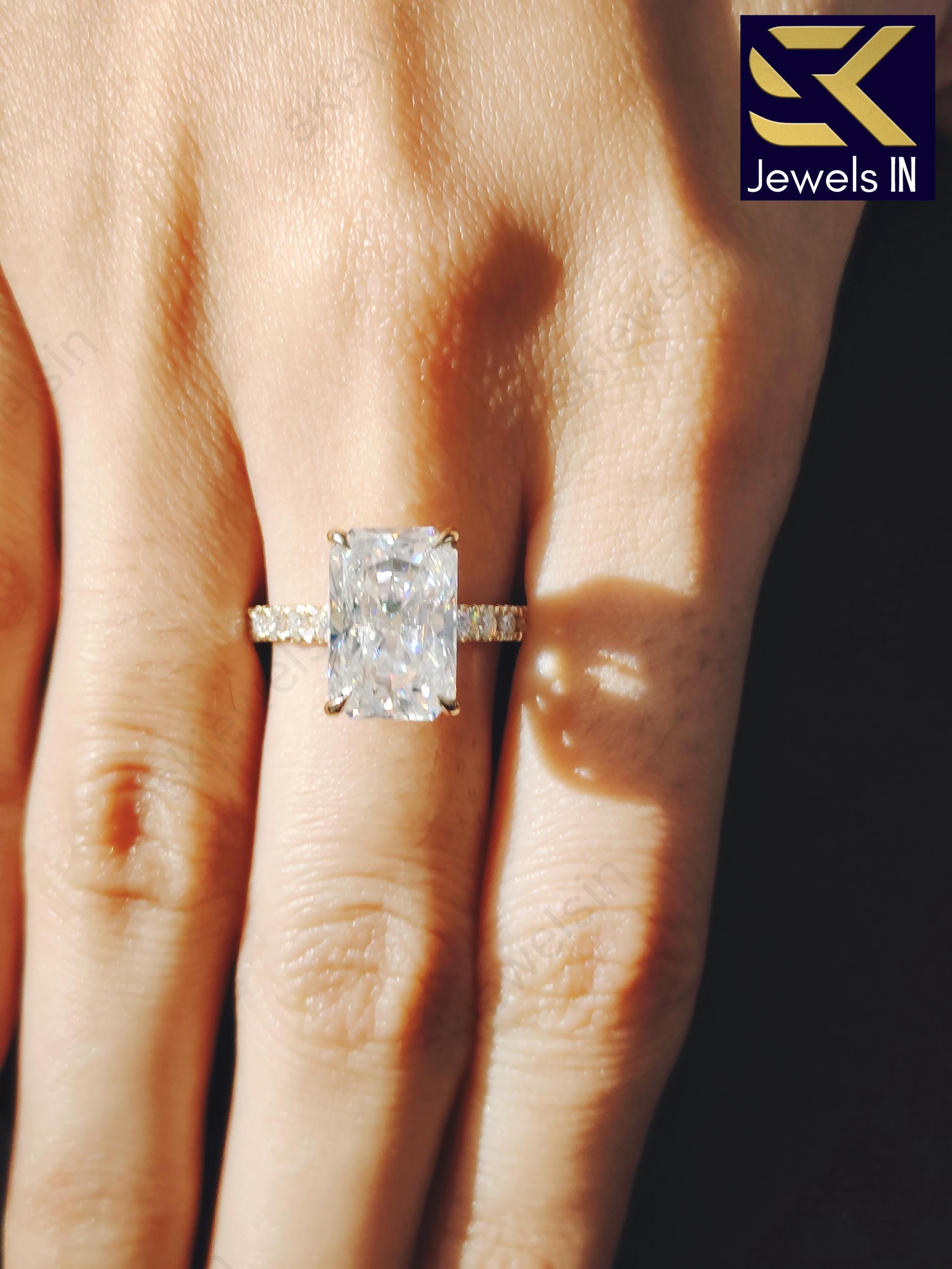 💎 Exquisite Radiant Cut Moissanite – Brilliant, ethically sourced moissanite with exceptional fire and brilliance, rivaling diamonds at a fraction of the cost.