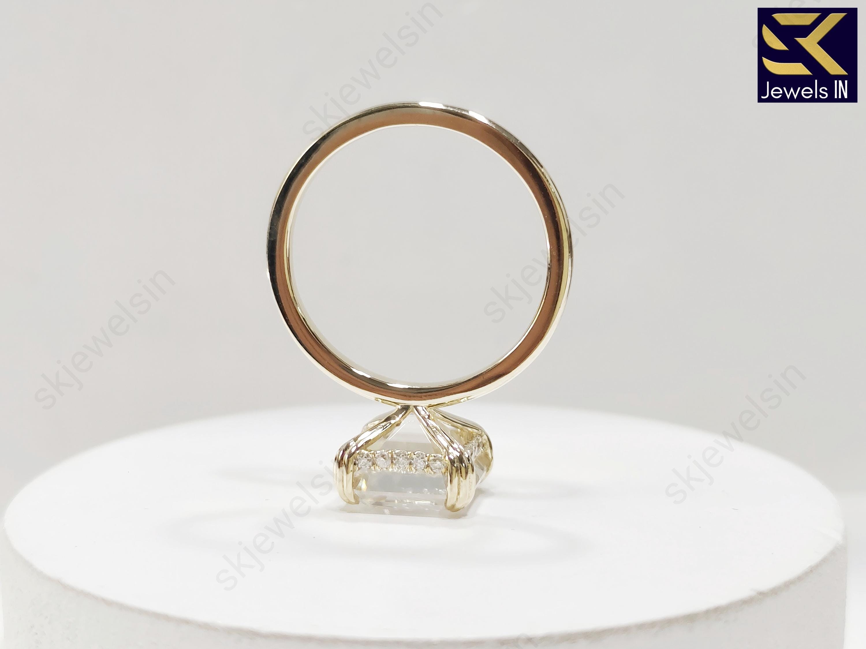 Asscher Cut Solitaire Engagement Ring, 14K Gold Hidden Halo Moissanite Ring, Unique Wedding Ring, Anniversary Gift for her, Promise ring