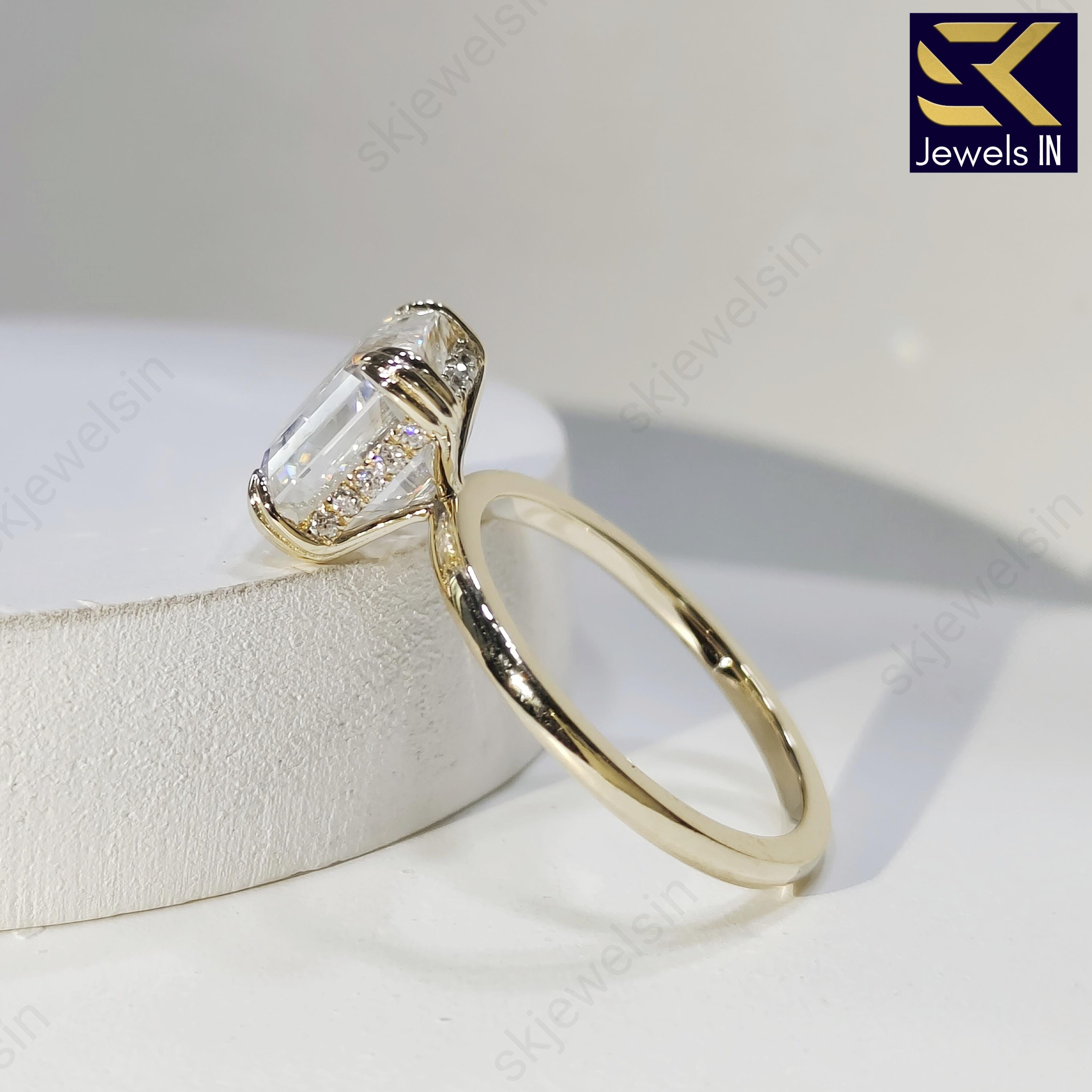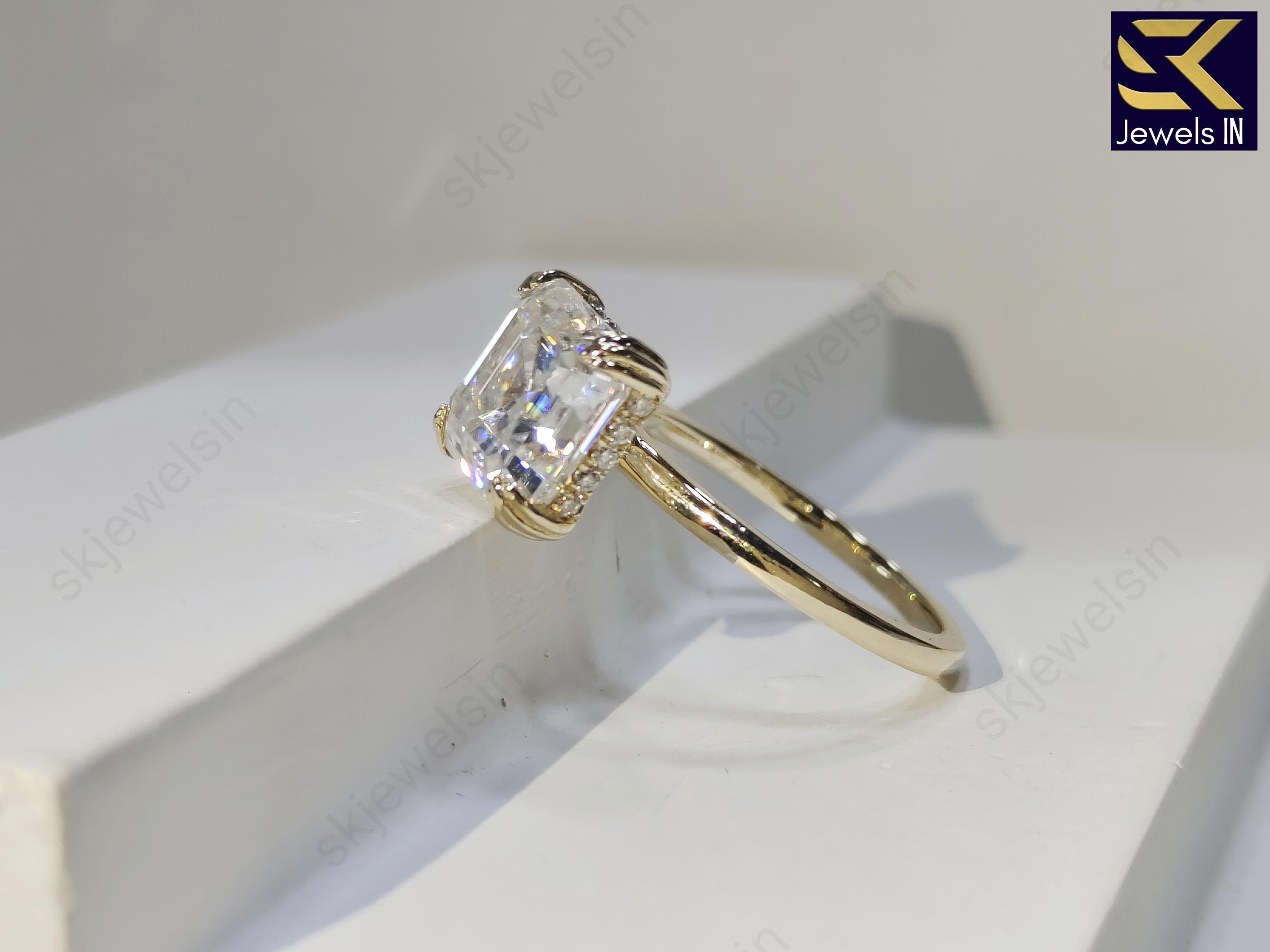 3.00 CT Asscher Cut Moissanite Engagement Ring, 14K Gold Hidden Halo Bridal Set Ring, Unique Wedding Ring, Anniversary Gift for her