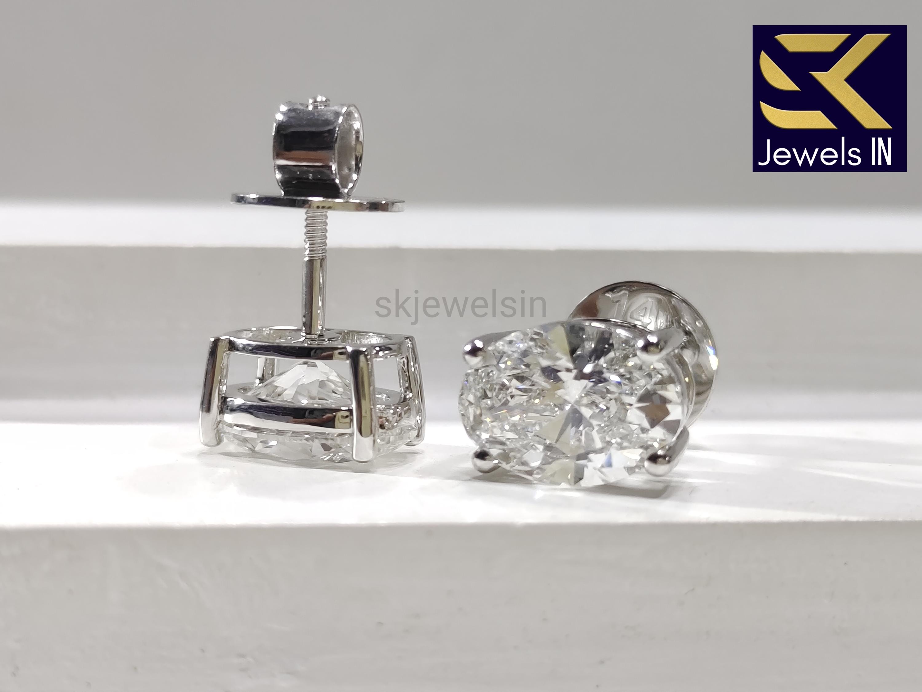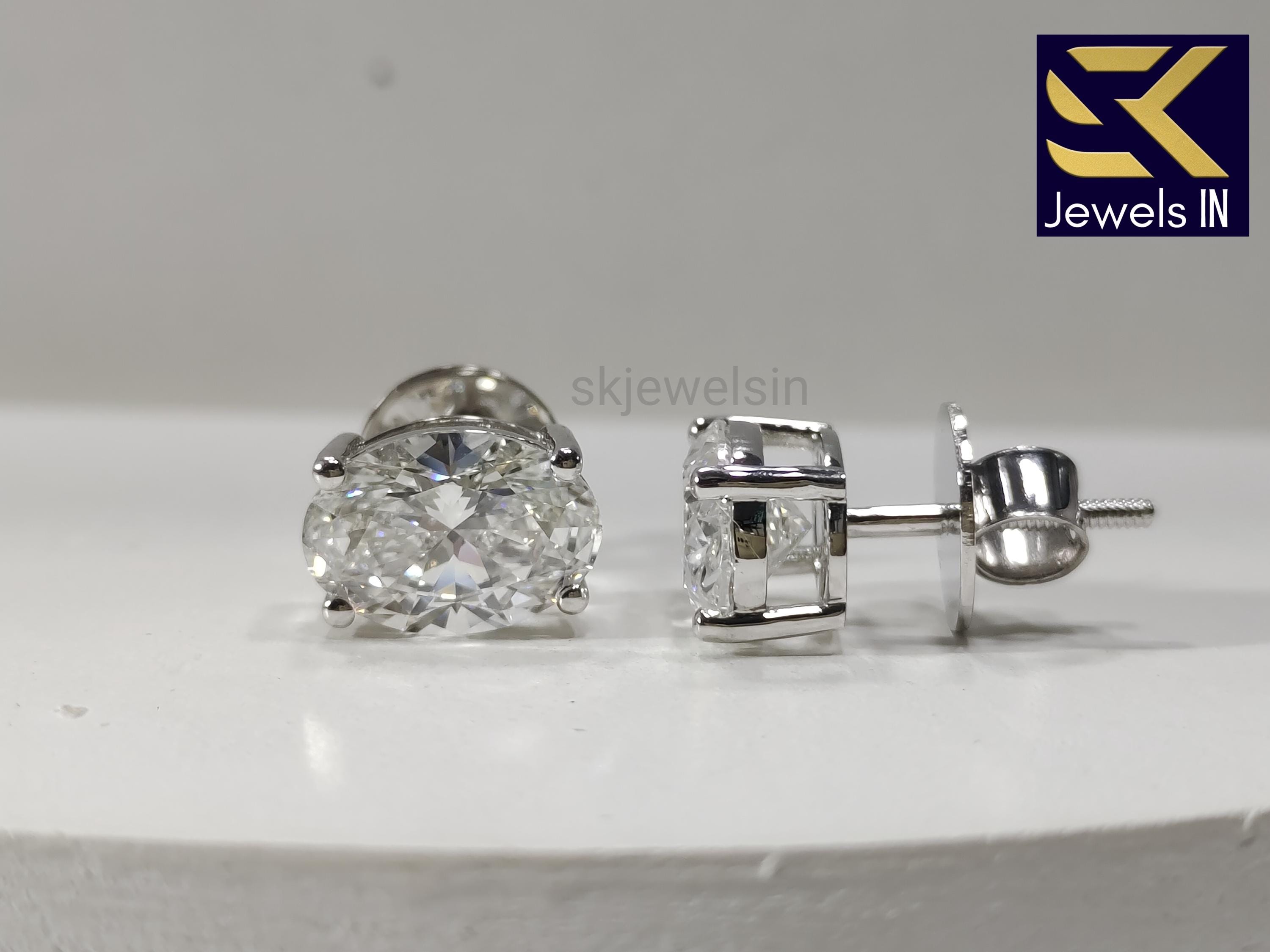 Oval Diamond Studs, 14K White Gold lab grown diamond Stud Earrings, Handmade Bride maid gifts Stud, Screw back Stud Earrings, Stud For women