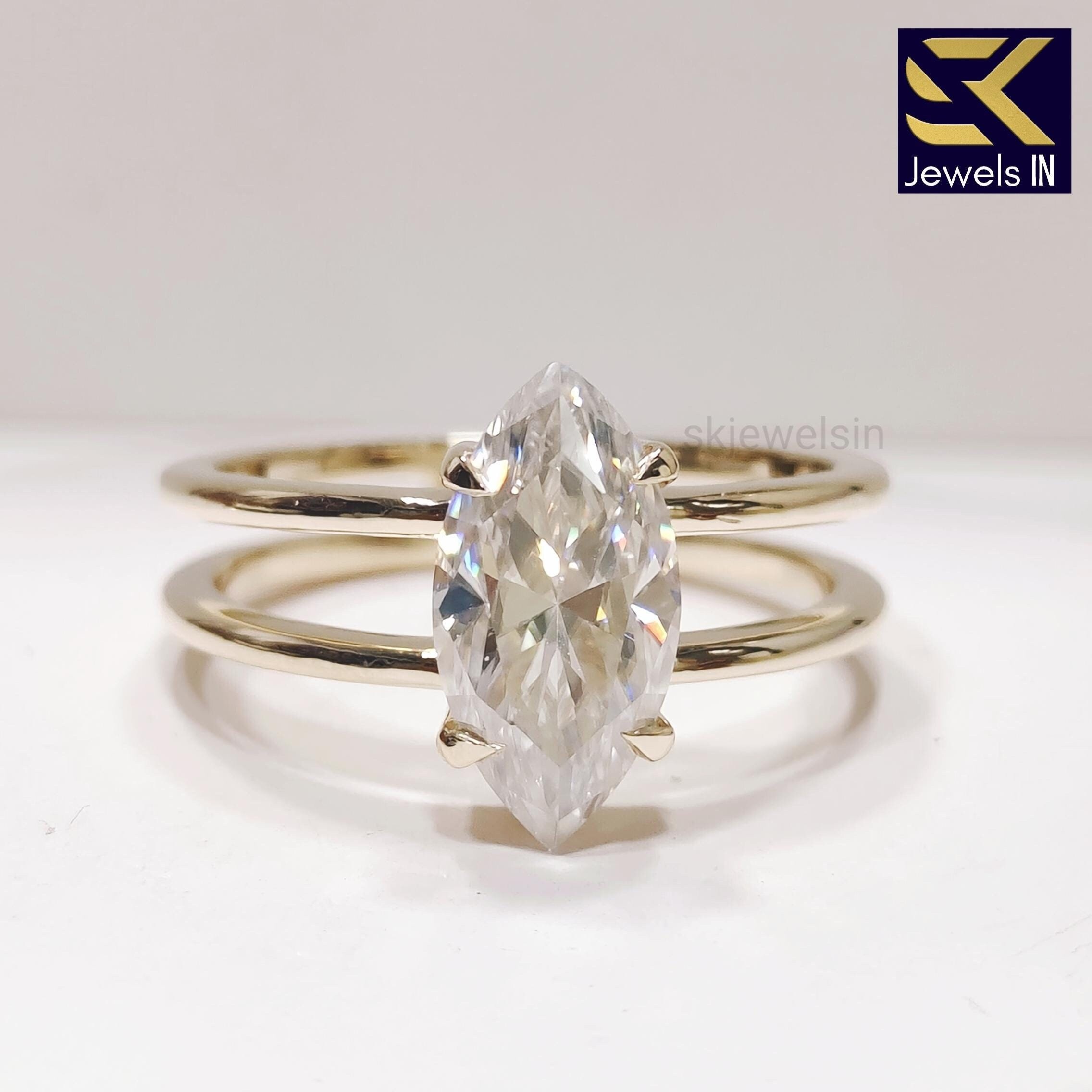 Marquise Cut Moissanite Engagement Ring, 14K Gold Double Shank Unique Handmade Ring, Wedding & Anniversary Gifts, Promise Ring For her