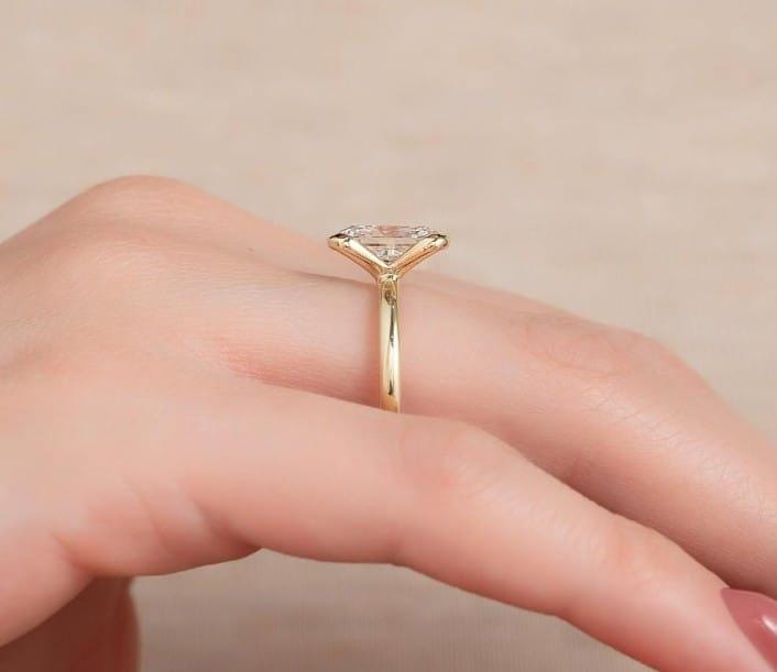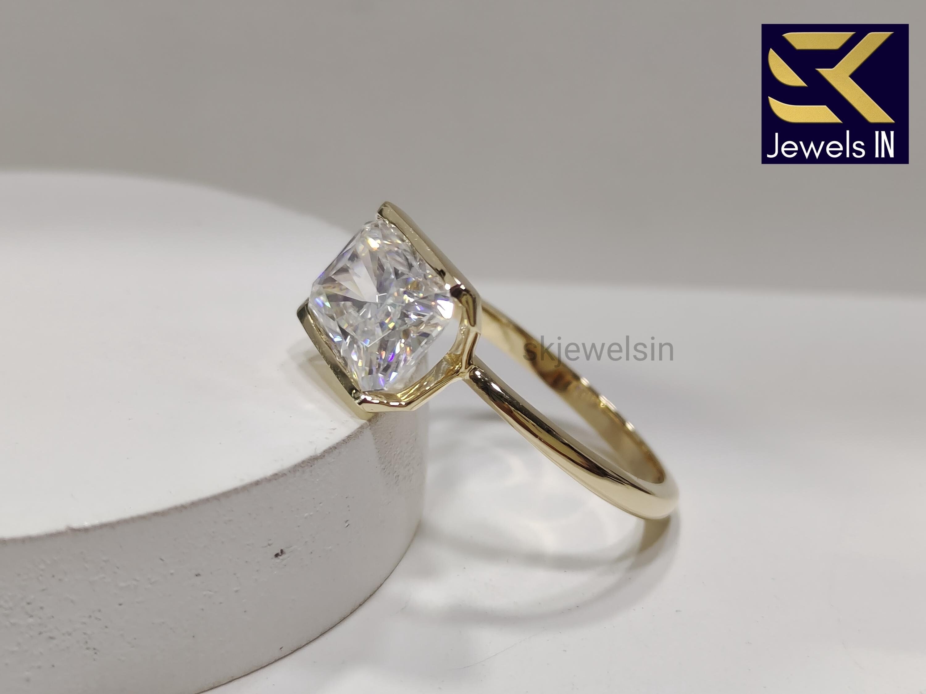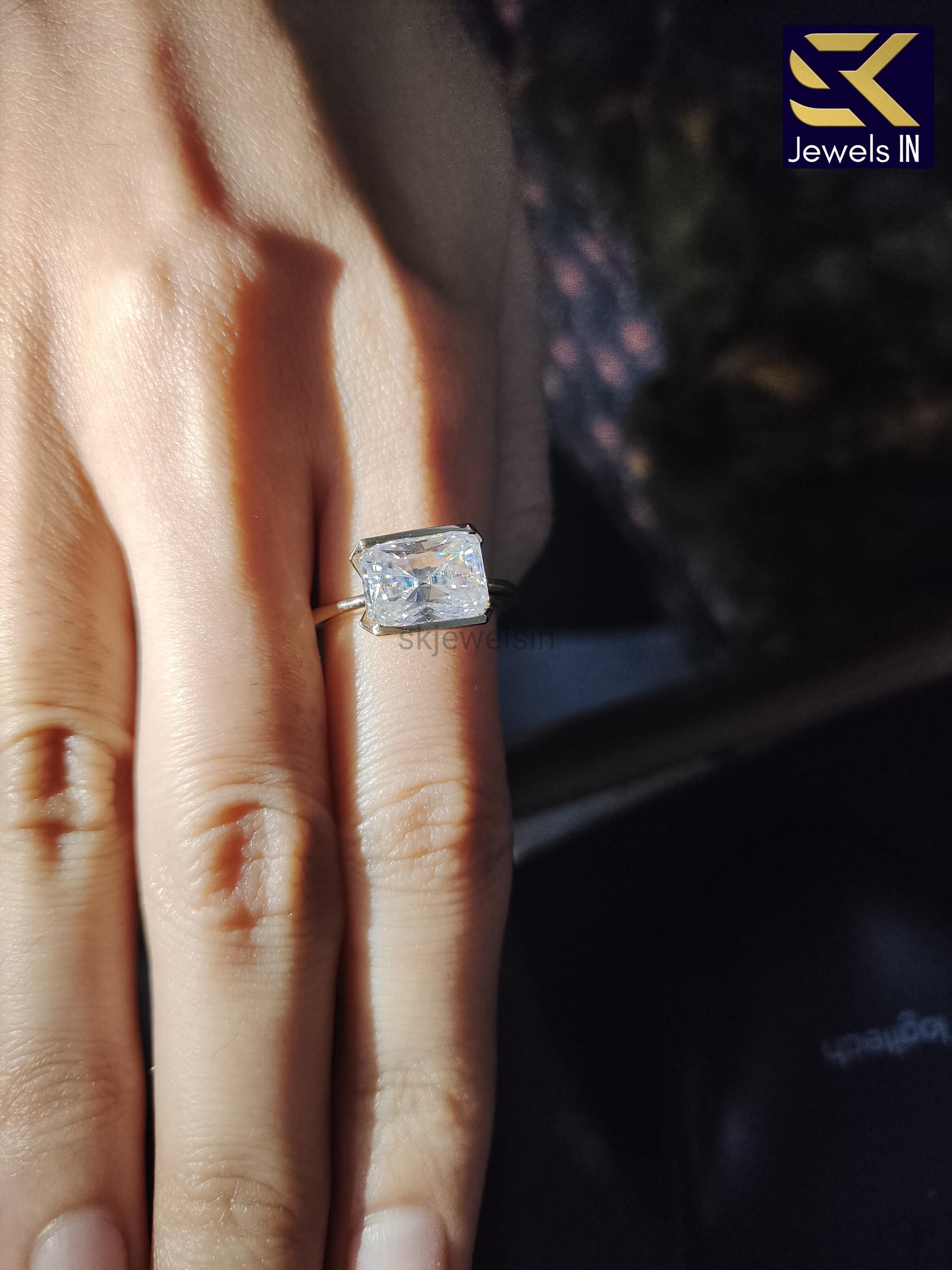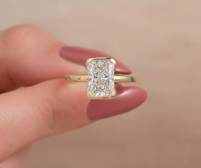 Half Bezel Set Radiant Cut Engagement Ring, 14K Gold East west Moissanite Wedding Ring, Handmade Personalized Gift, Ring For Her