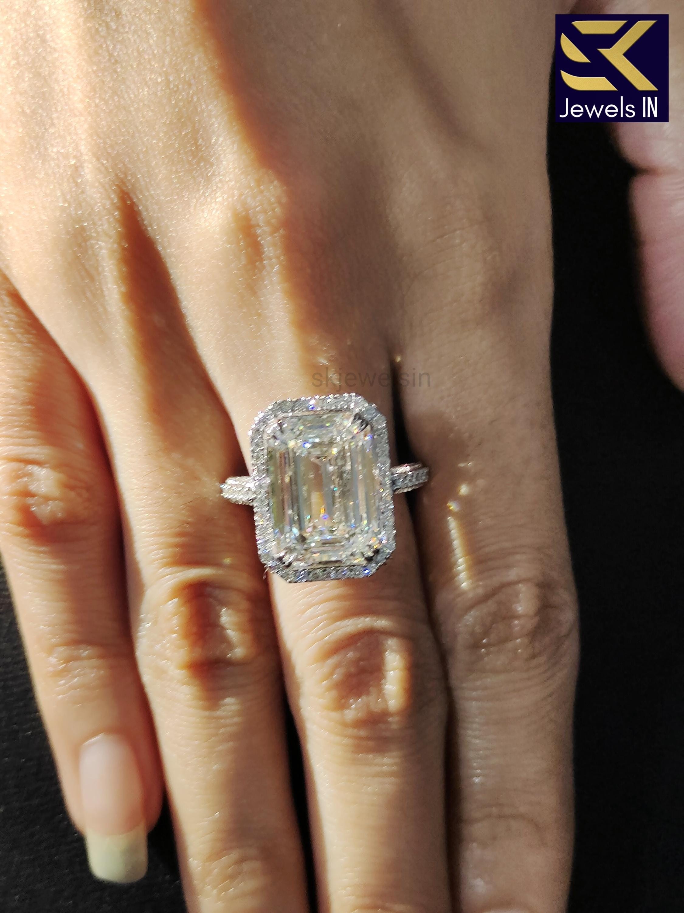 Emerald Cut Moissanite Engagement Ring, 14K Gold Halo Wedding Ring, Vintage Pave set, Gifts for Women, Bridal ring set, handmade