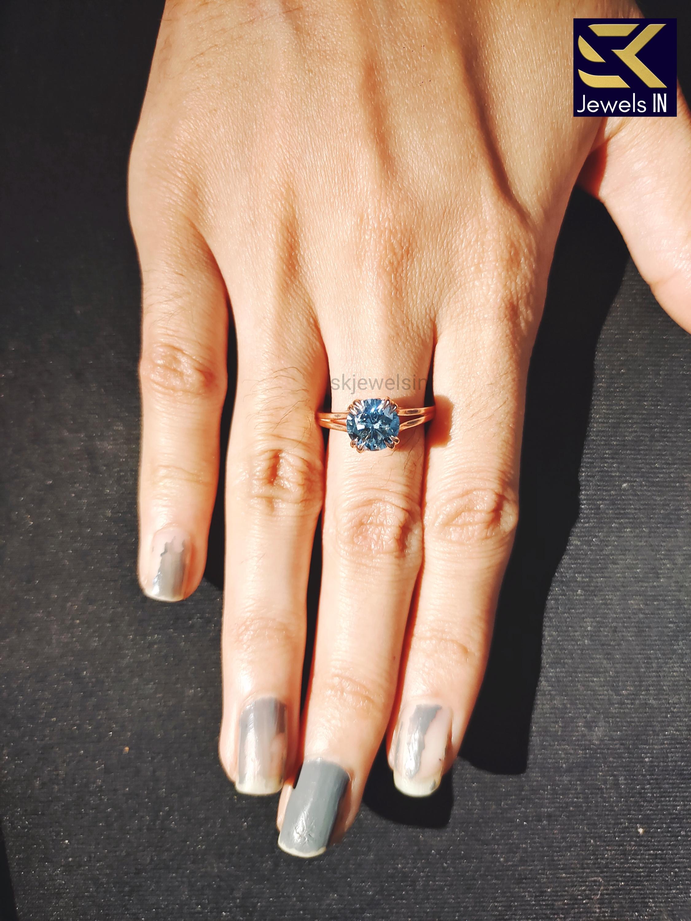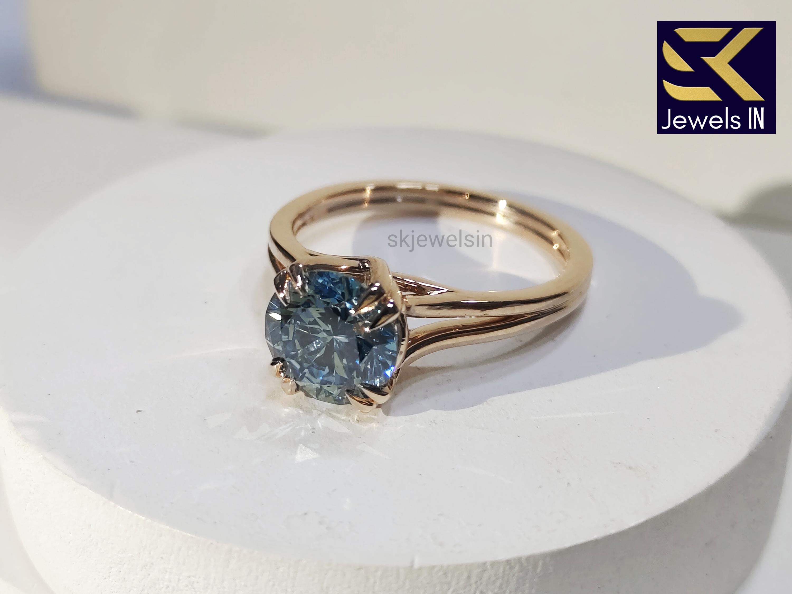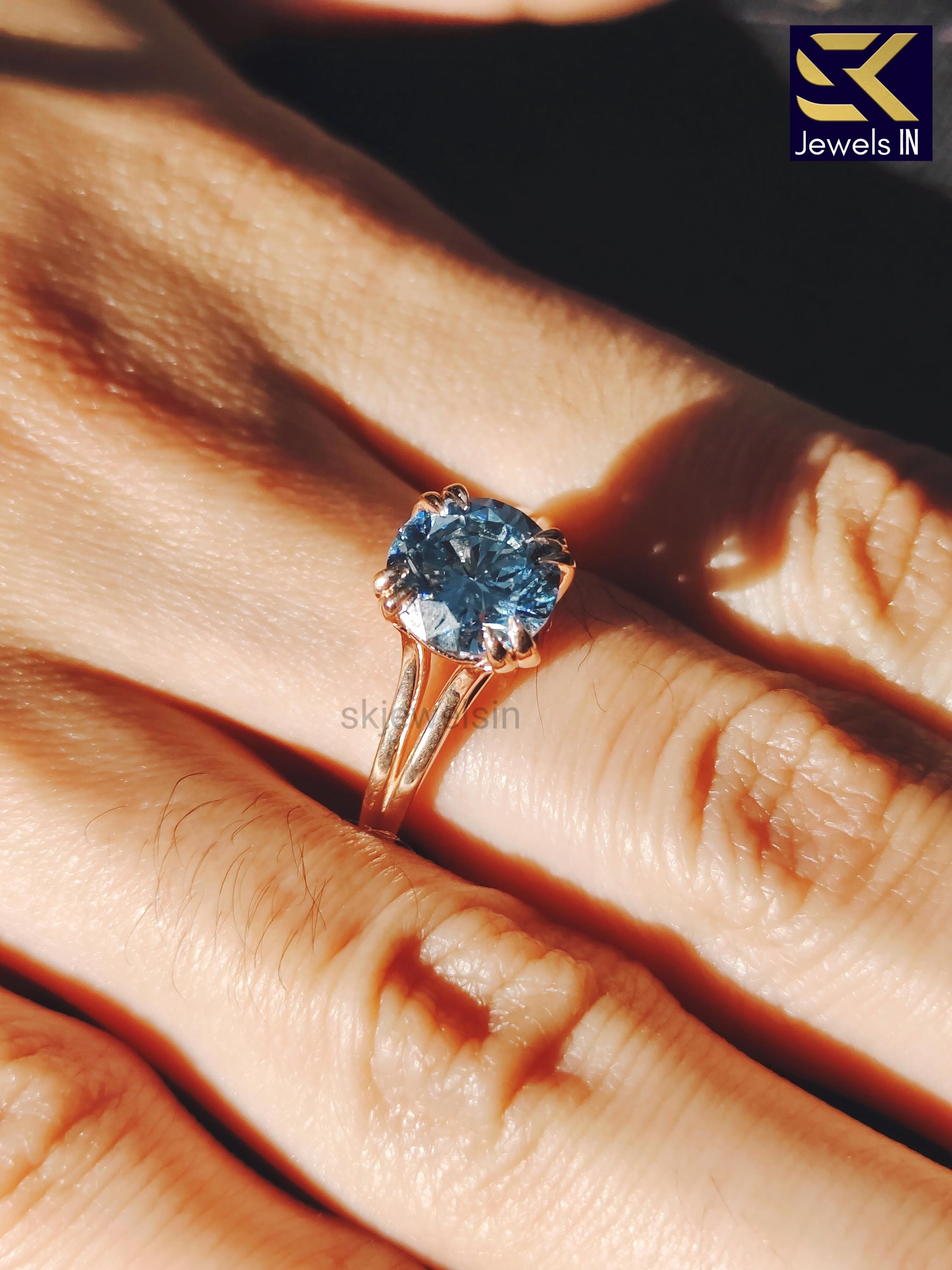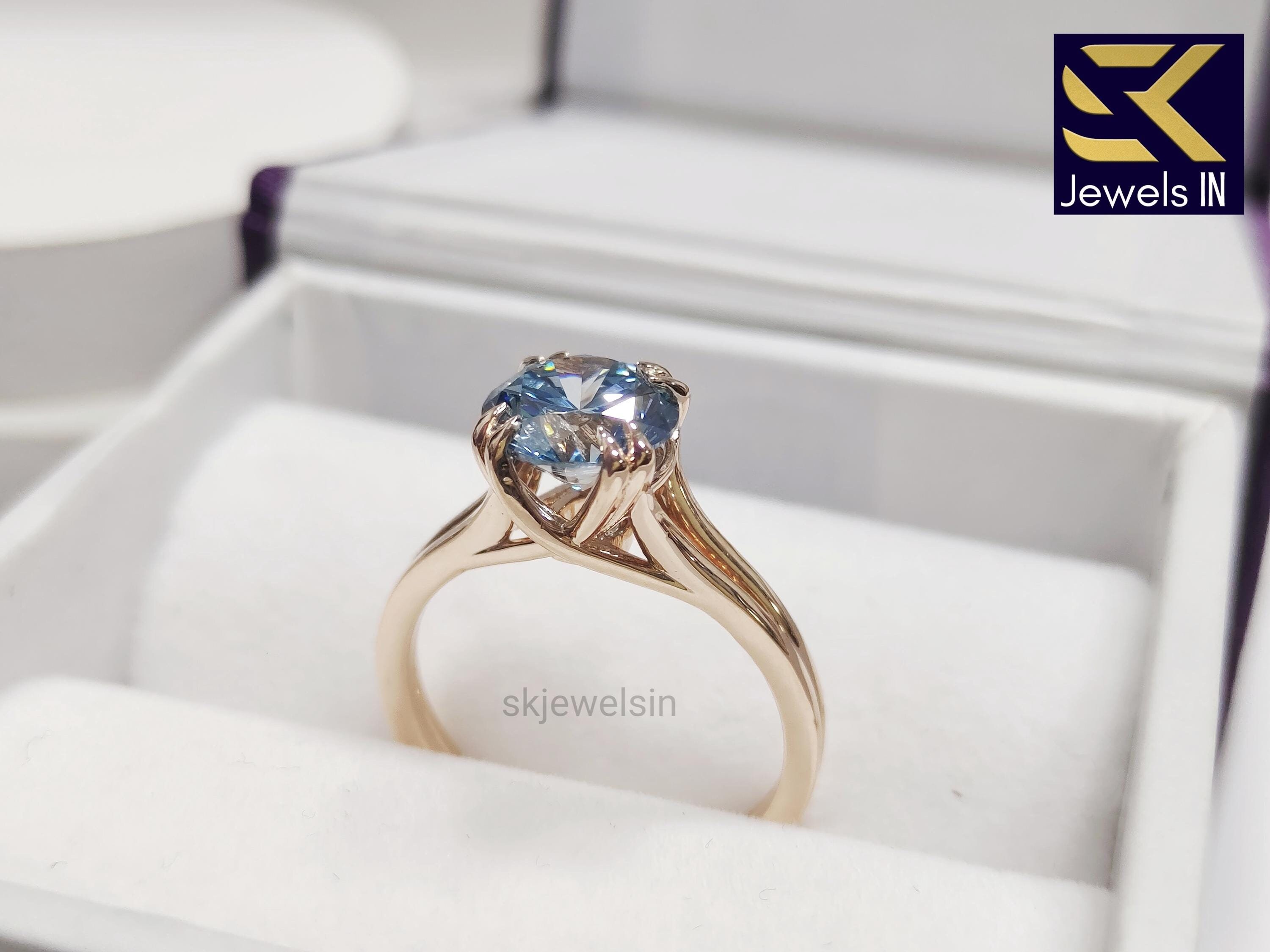 14K Rose Gold Blue Round Moissanite Engagement Ring, Double Claw Prong, Split band Wedding Ring, Anniversary Gifts, Promise ring handmade