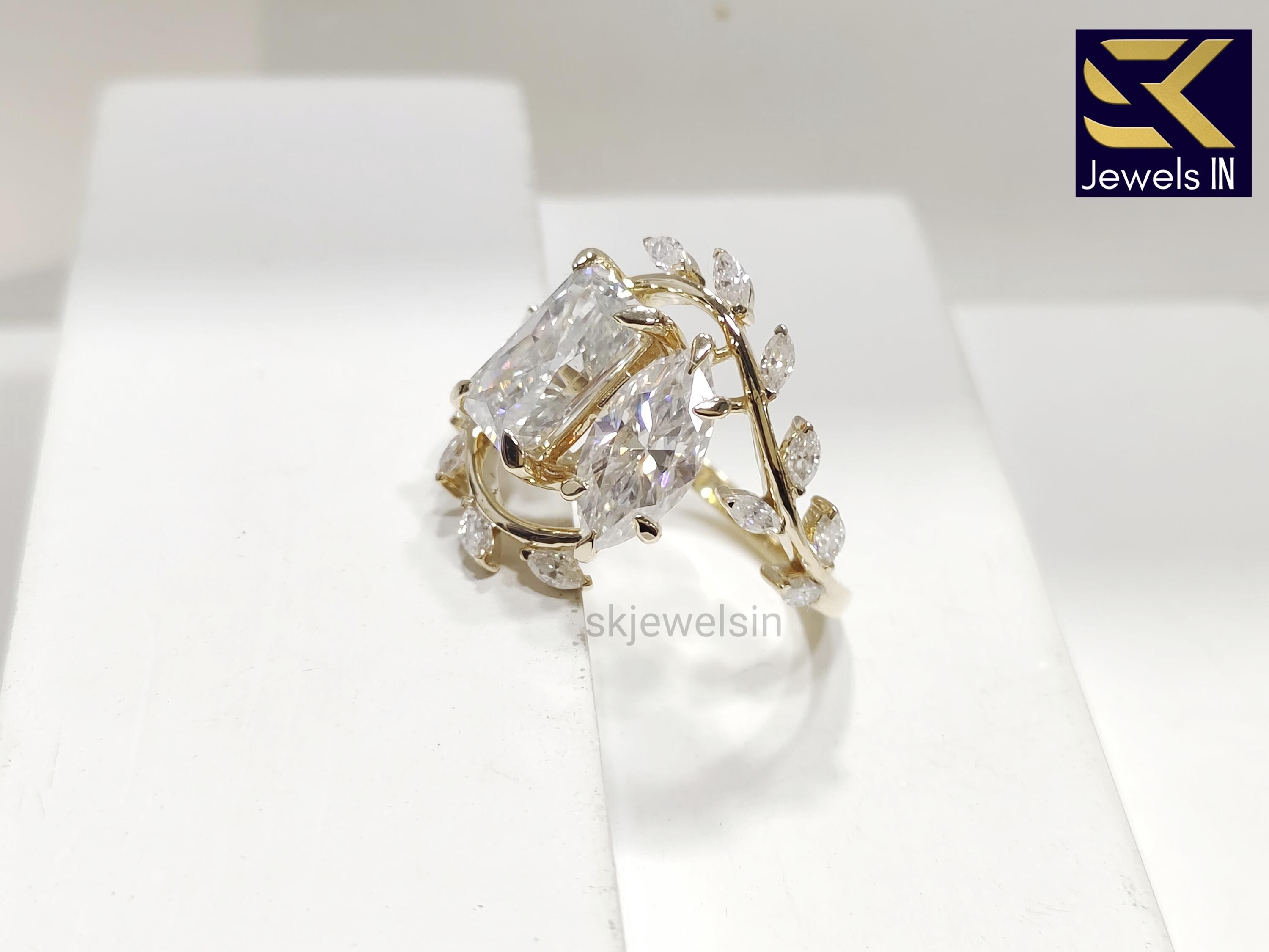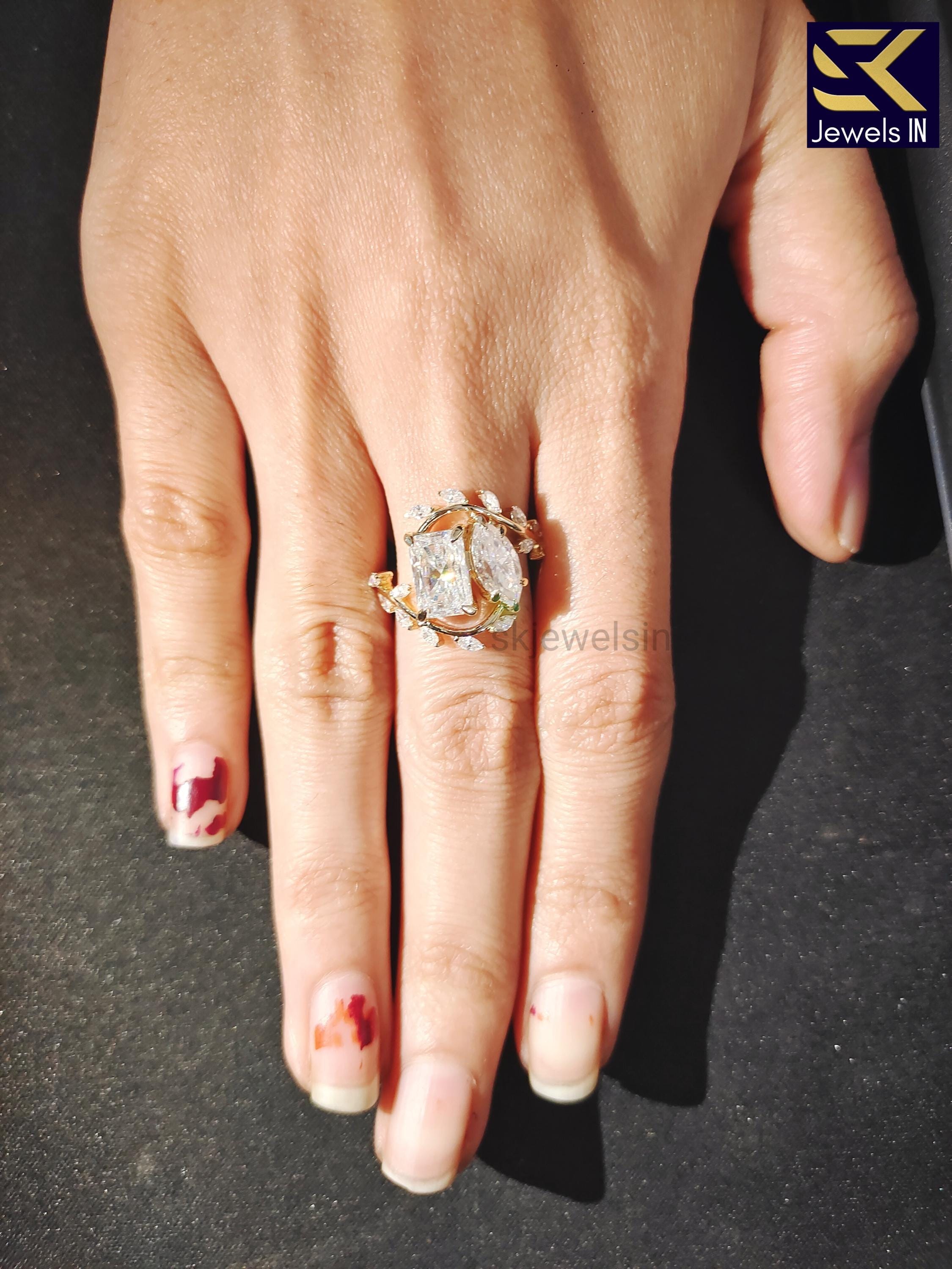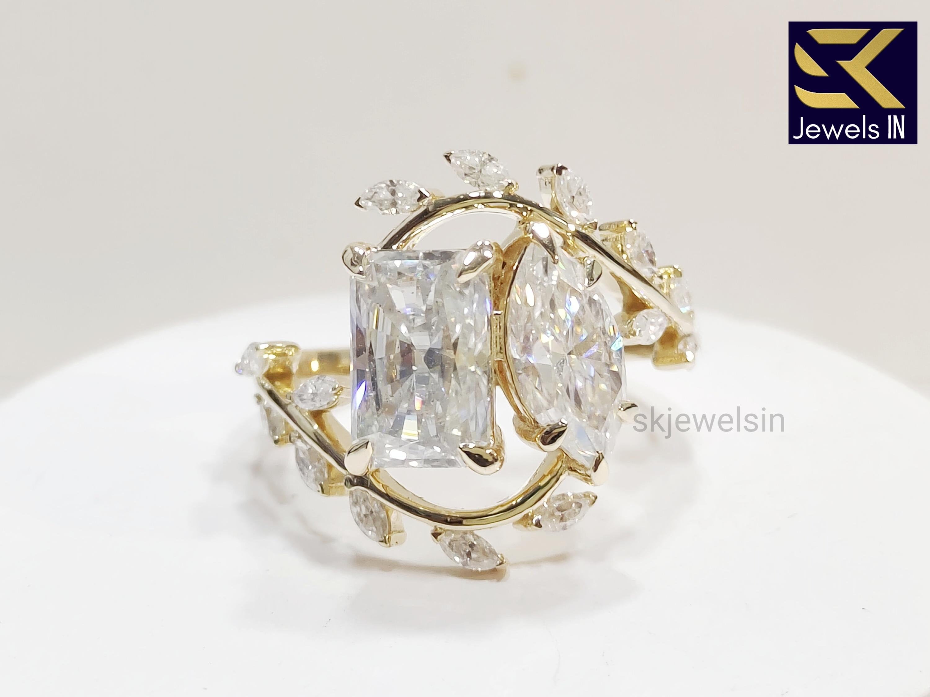 Toi Et Moi Engagement Ring, 14K Gold Nature Inspired Moissanite Wedding Ring, Anniversary gifts, Vintage Style Art deco Handmade Ring
