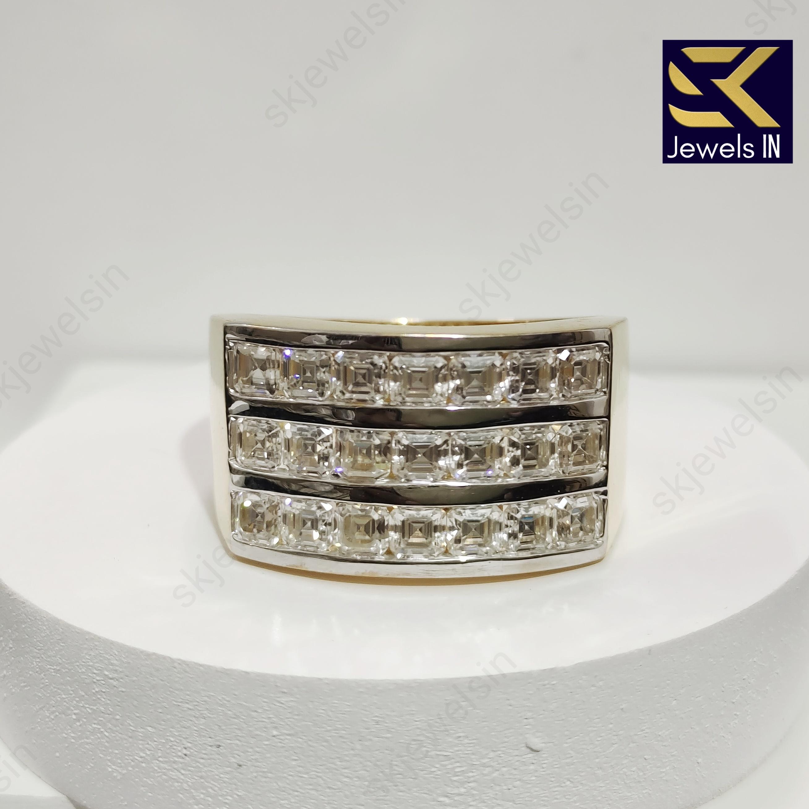 Asscher Cut Moissanite Men's Gold Ring, 10K 14K Channel Set Ring For Him, Wedding Ring For Men, Iced out diamond ring Anniversary gift