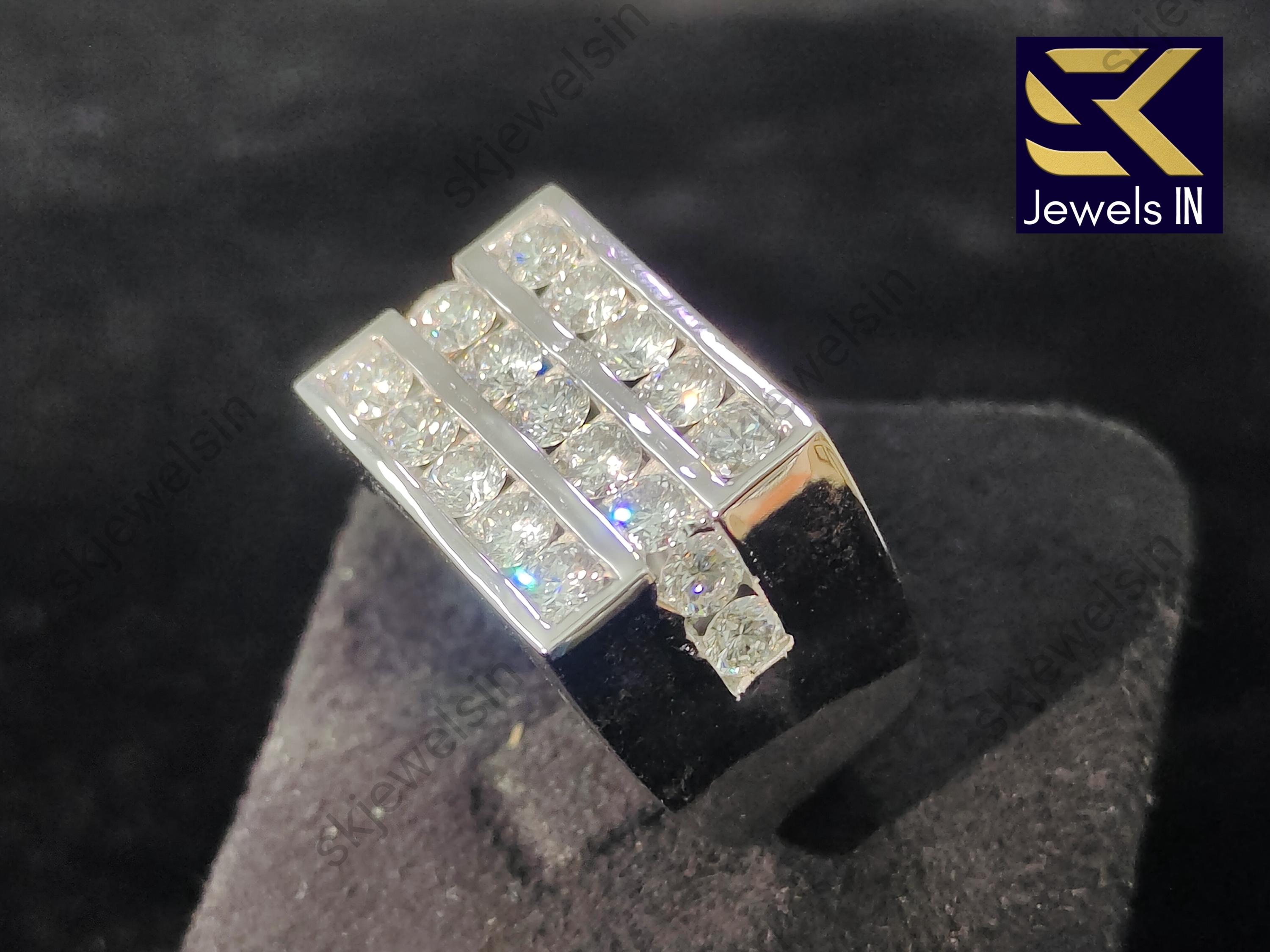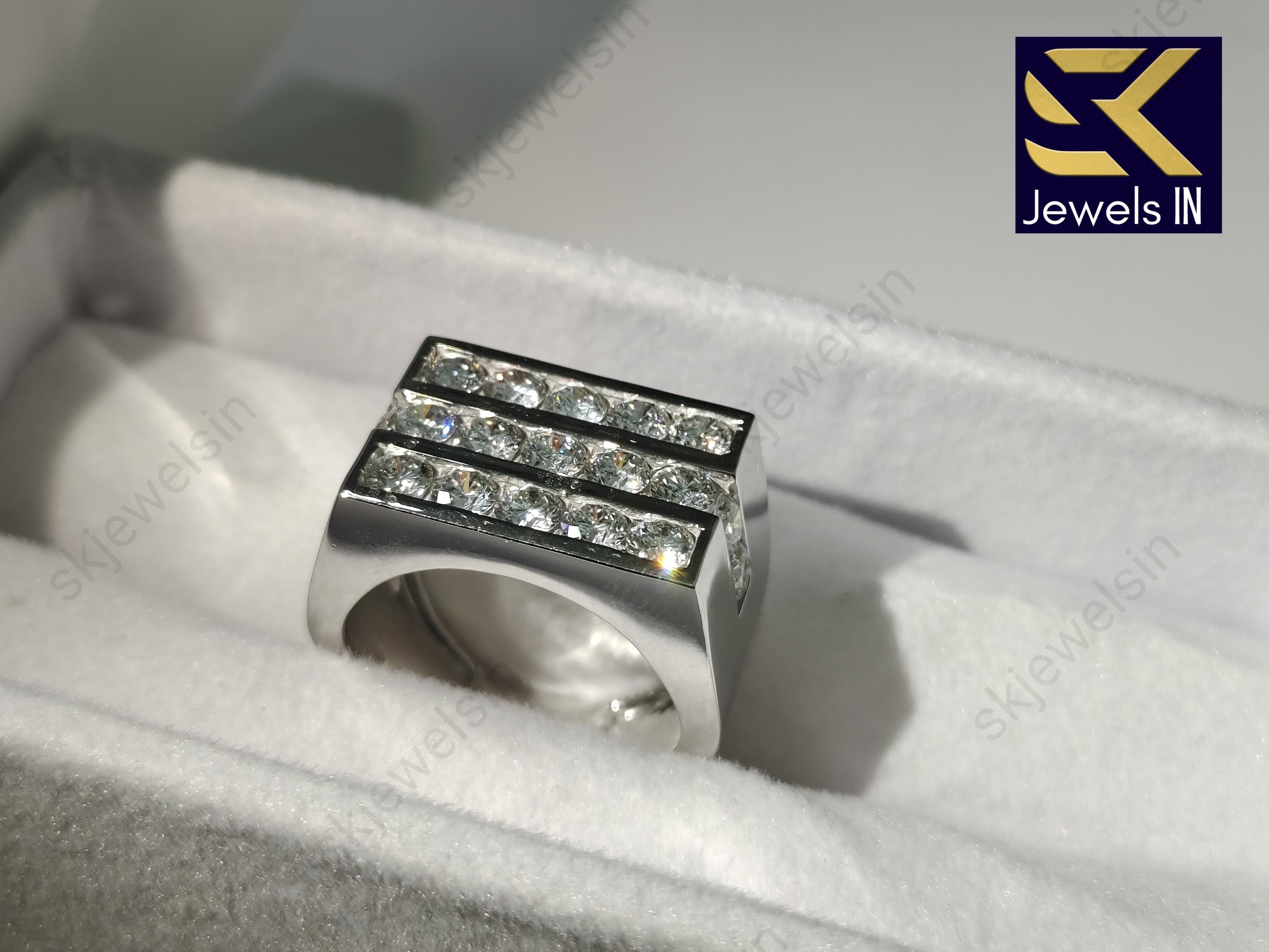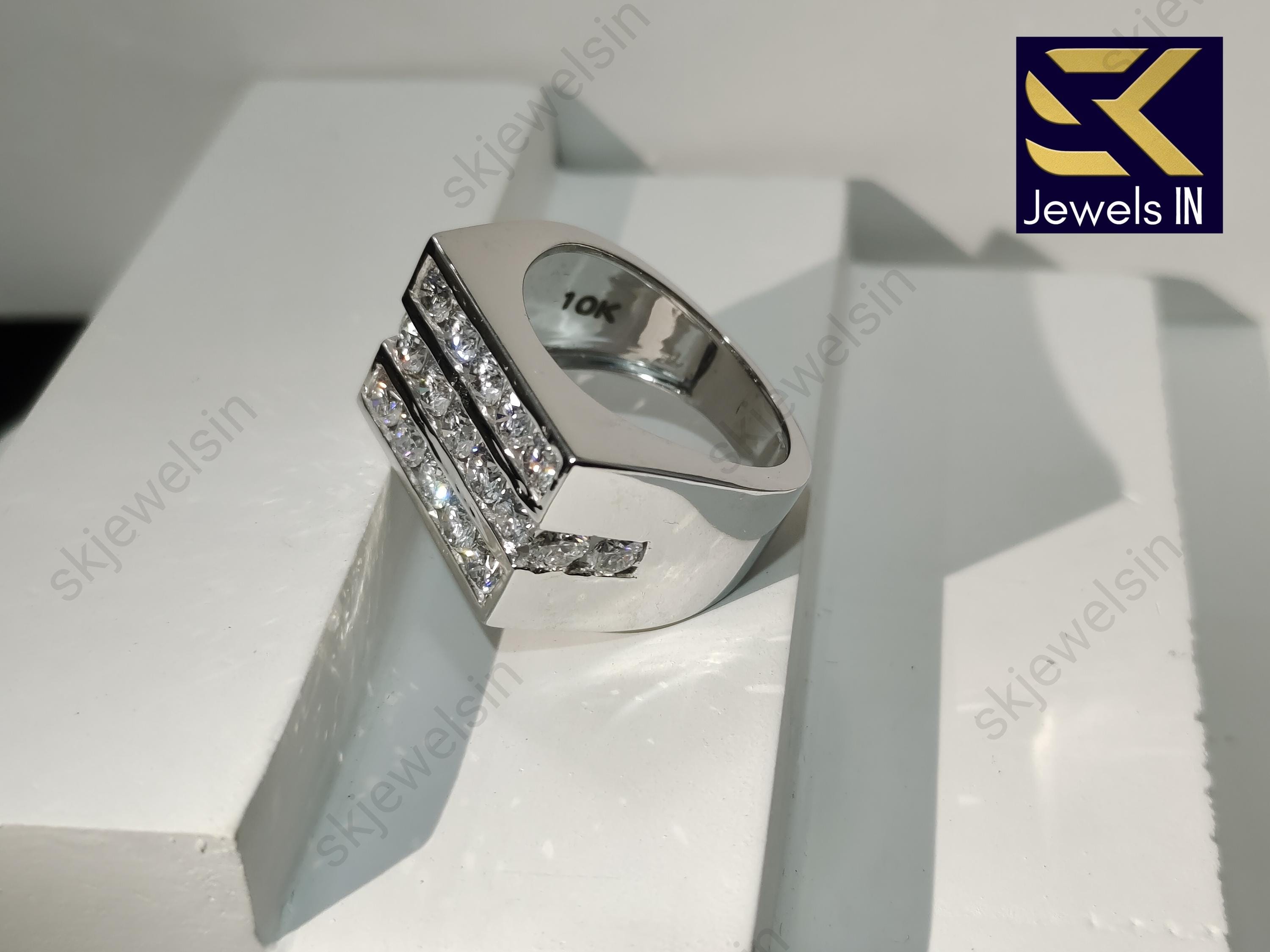 Round Cut Moissanite Men's Wedding Ring, 10K White Gold Channel Set Ring For Men, Anniversary Gift For Him, VVS Moissanite Diamond test pass