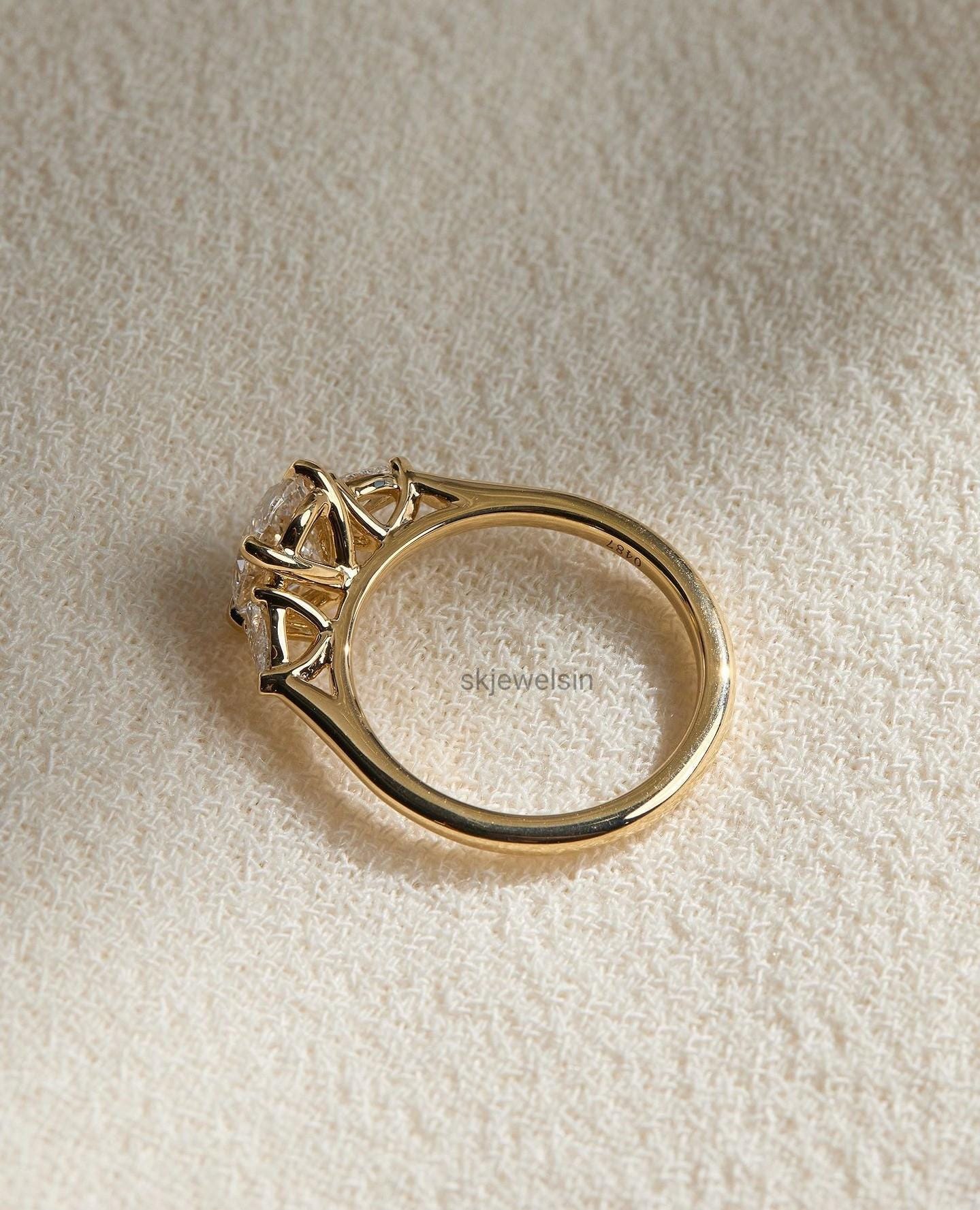 18K Gold Oval Moissanite Engagement Ring, Pear accents Three Stone Wedding Ring Anniversary Gifts Promise Ring Gifts for Women