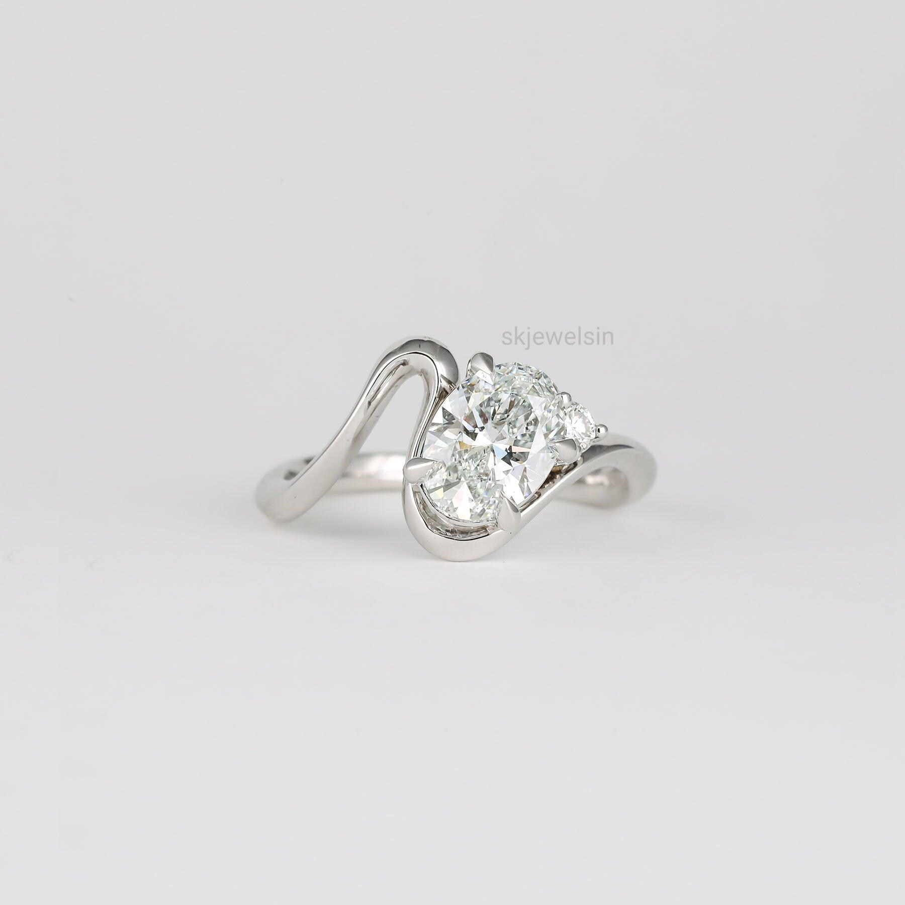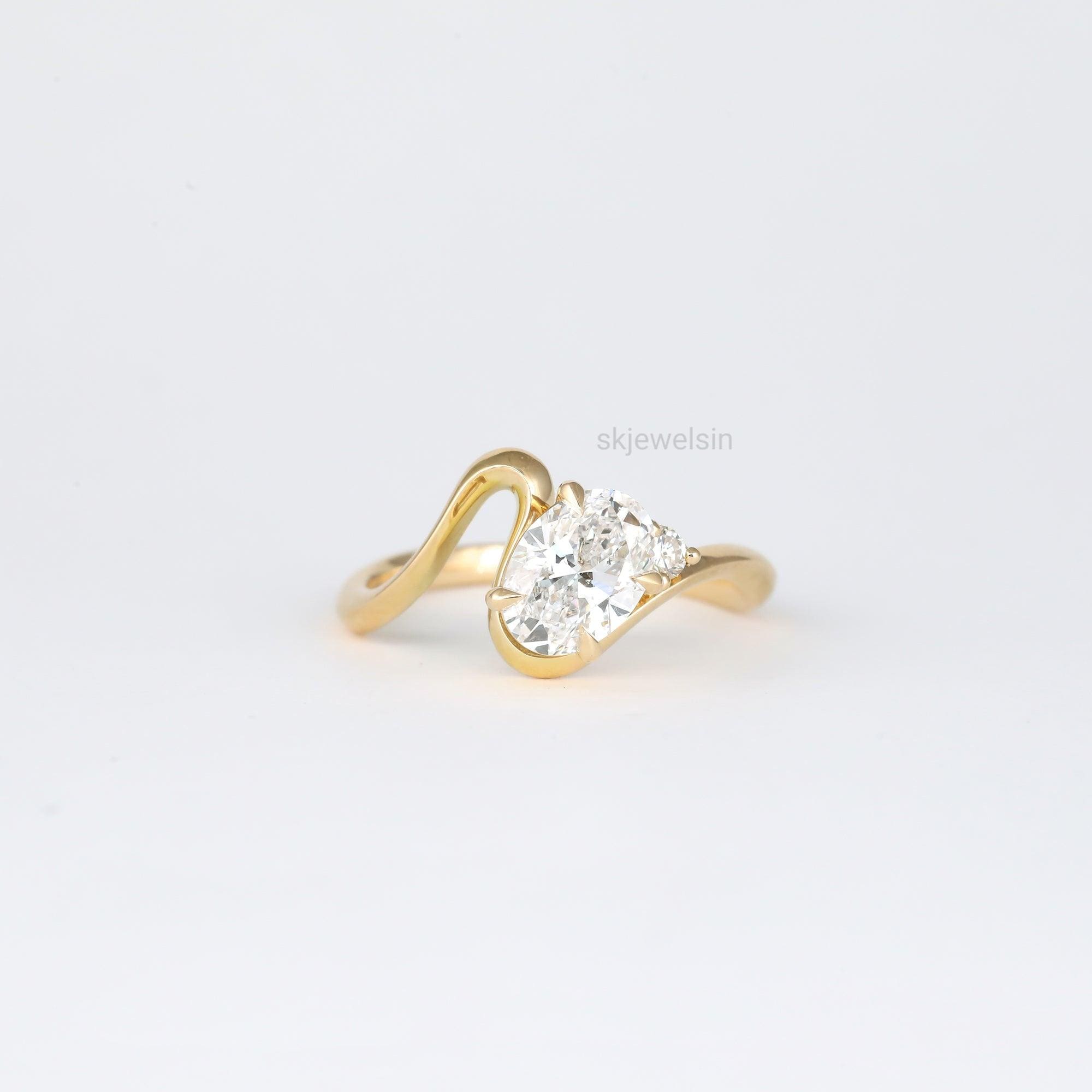Oval Cut Moissanite Engagement Ring, 14K Gold Toi et Moi Wedding Ring Curved Shank Unique Promise Ring Gifts for Women Minimalist ring