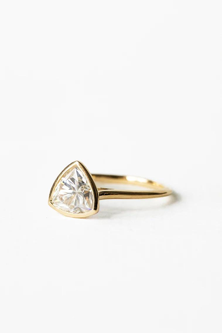 Crafted with precision, the trillion cut moissanite provides exceptional fire and brilliance, while the secure bezel setting protects the stone from everyday wear.Trillion Cut Moissanite Engagement Ring 14K Gold Bezel Set Wedding Ring Anniversary Gifts Ring Vintage Promise Ring Low Profile Ring