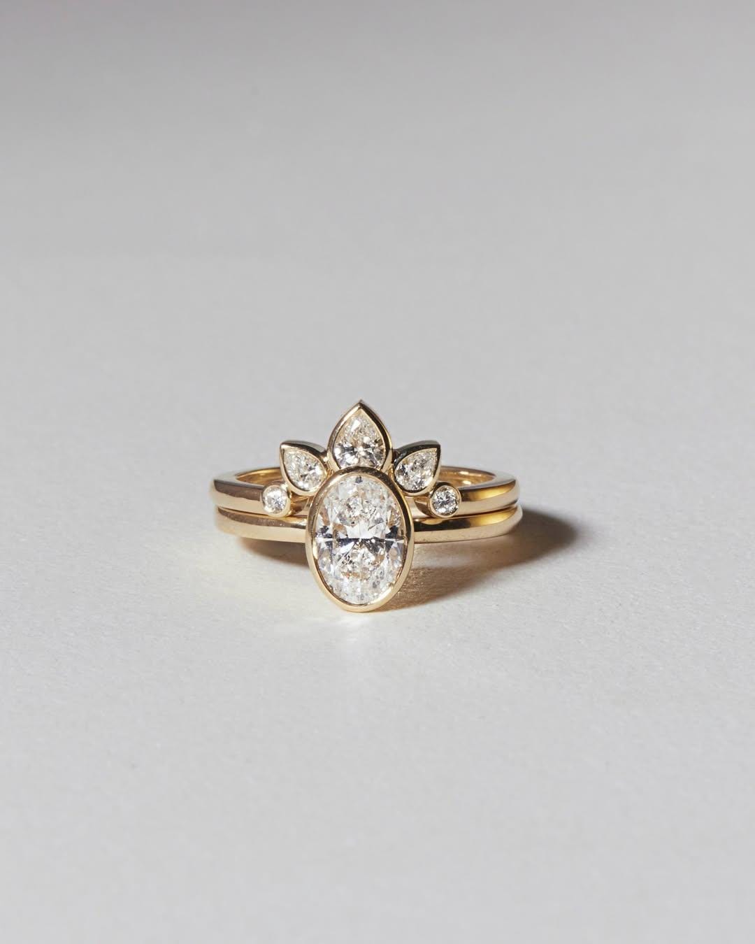 Oval Cut Moissanite Bridal Sets Wedding Ring with Stacking Band 14K Gold Bezel Set Engagement Ring Set, Anniversary Gift for her