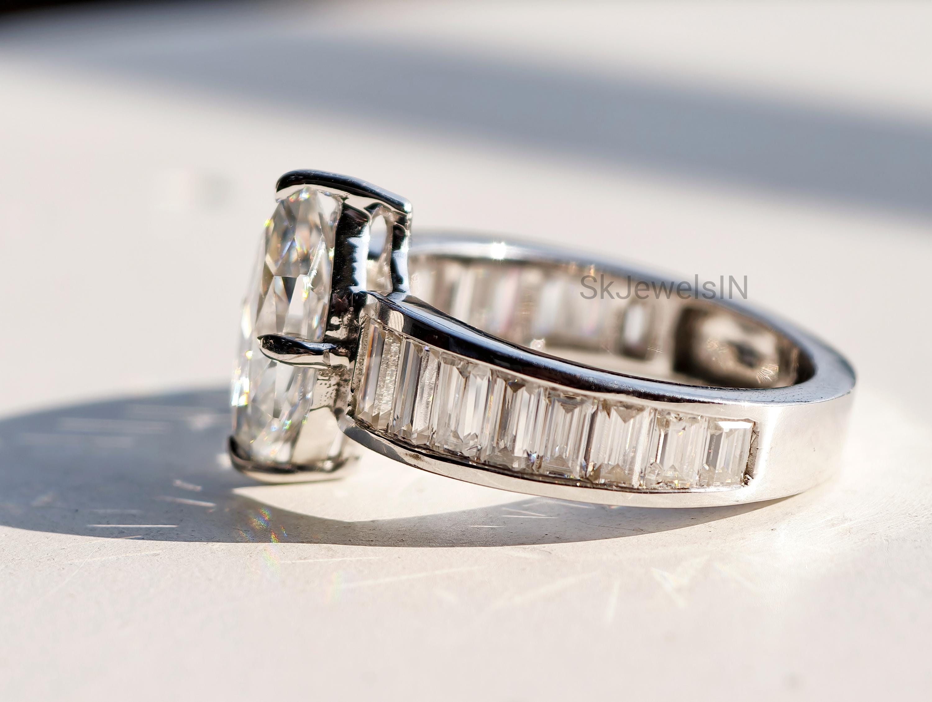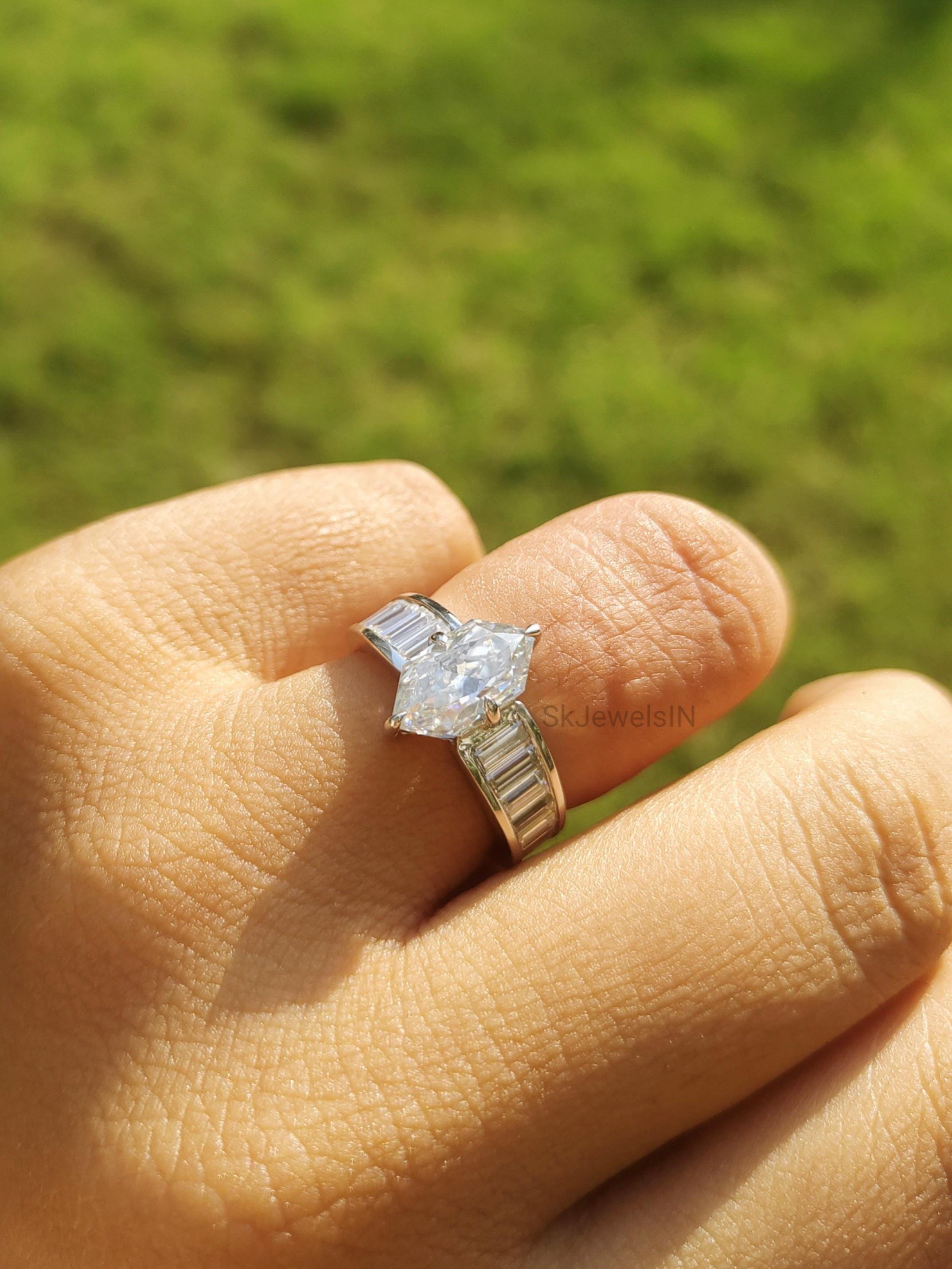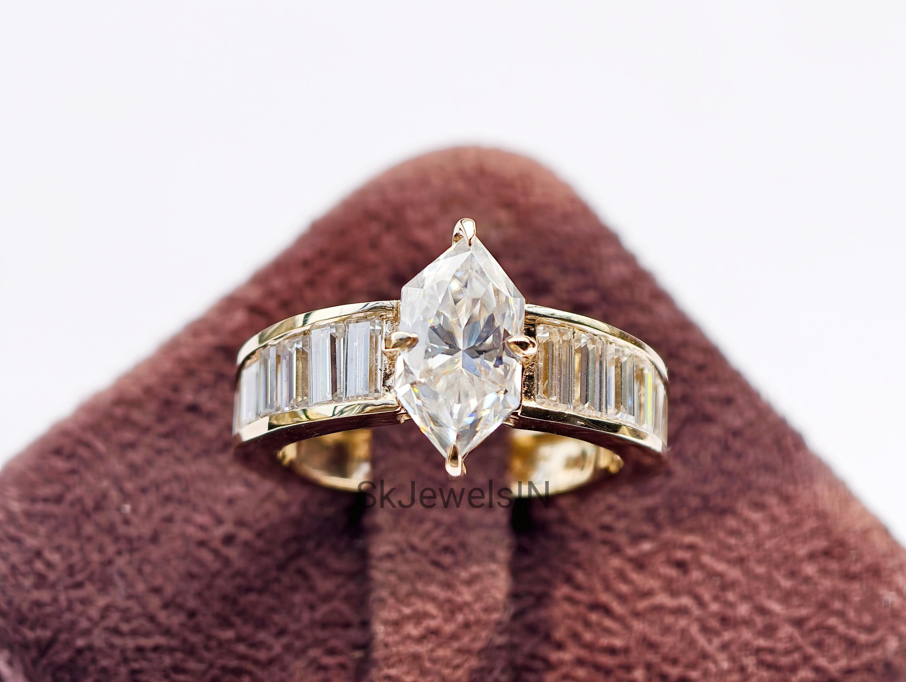 Dutch Marquise Engagement Ring 14K Gold Moissanite Wedding Ring With Baguette Channel Set Ring for Anniversary Gifts, Art Deco Ring Handmade