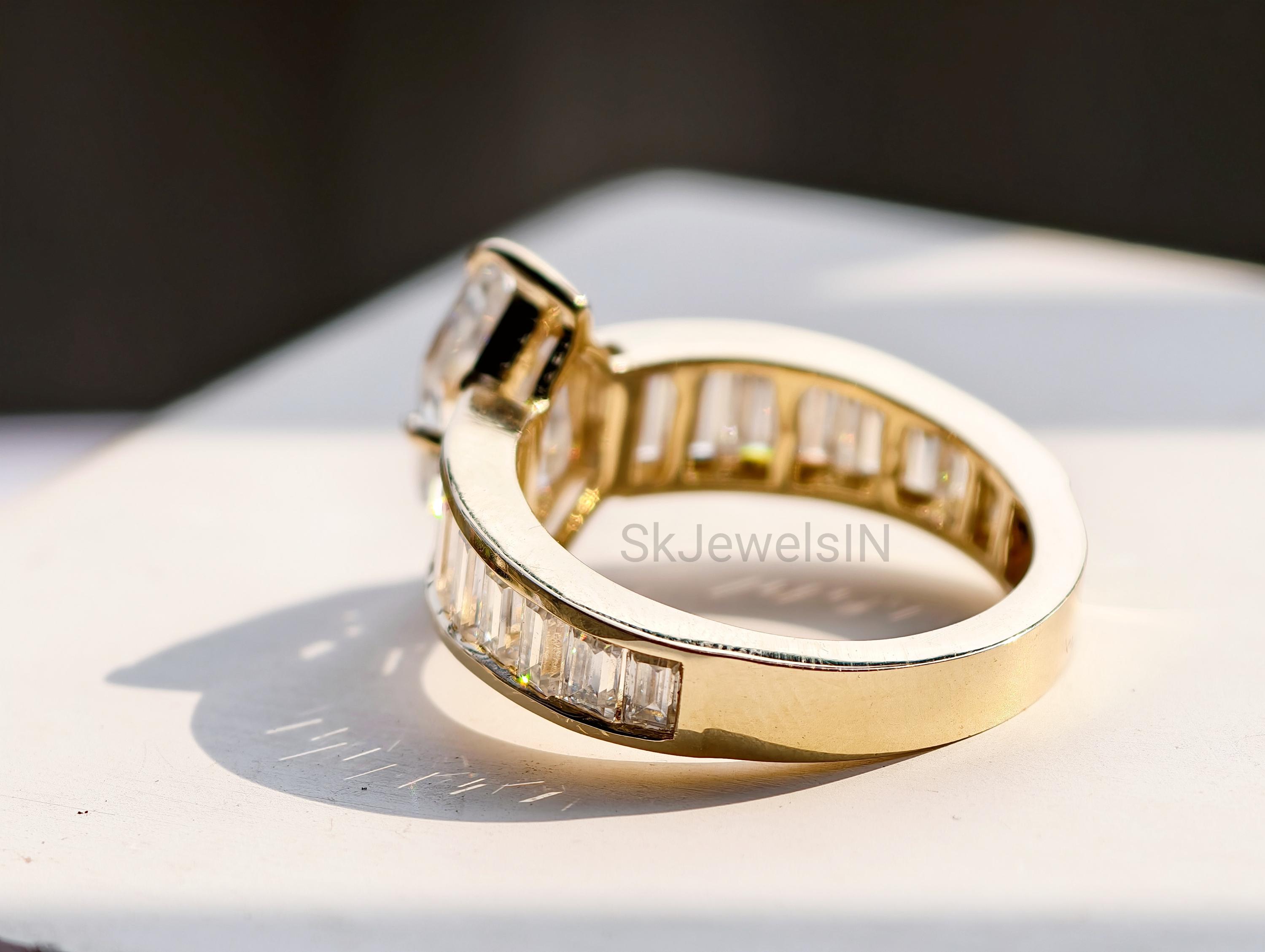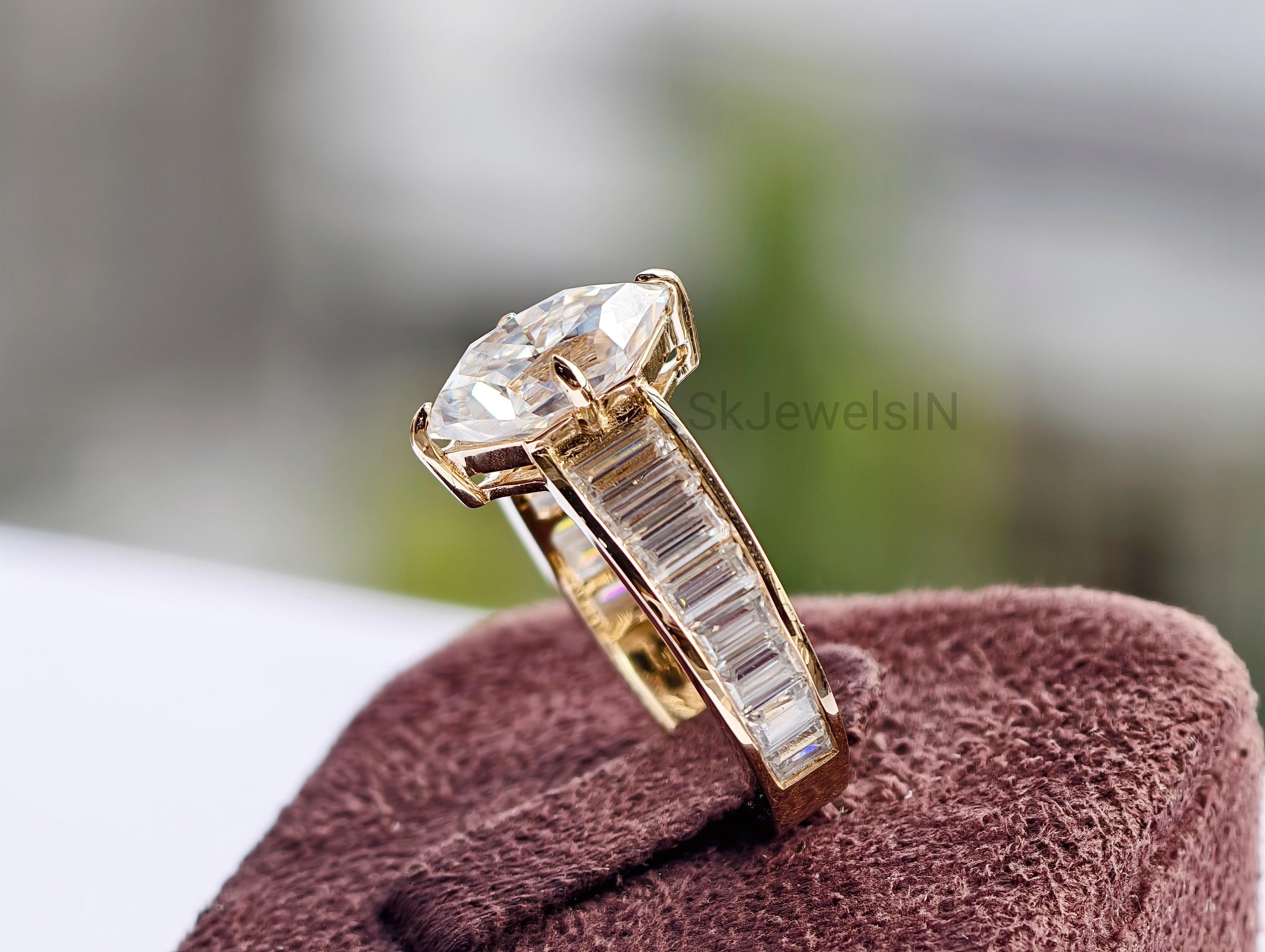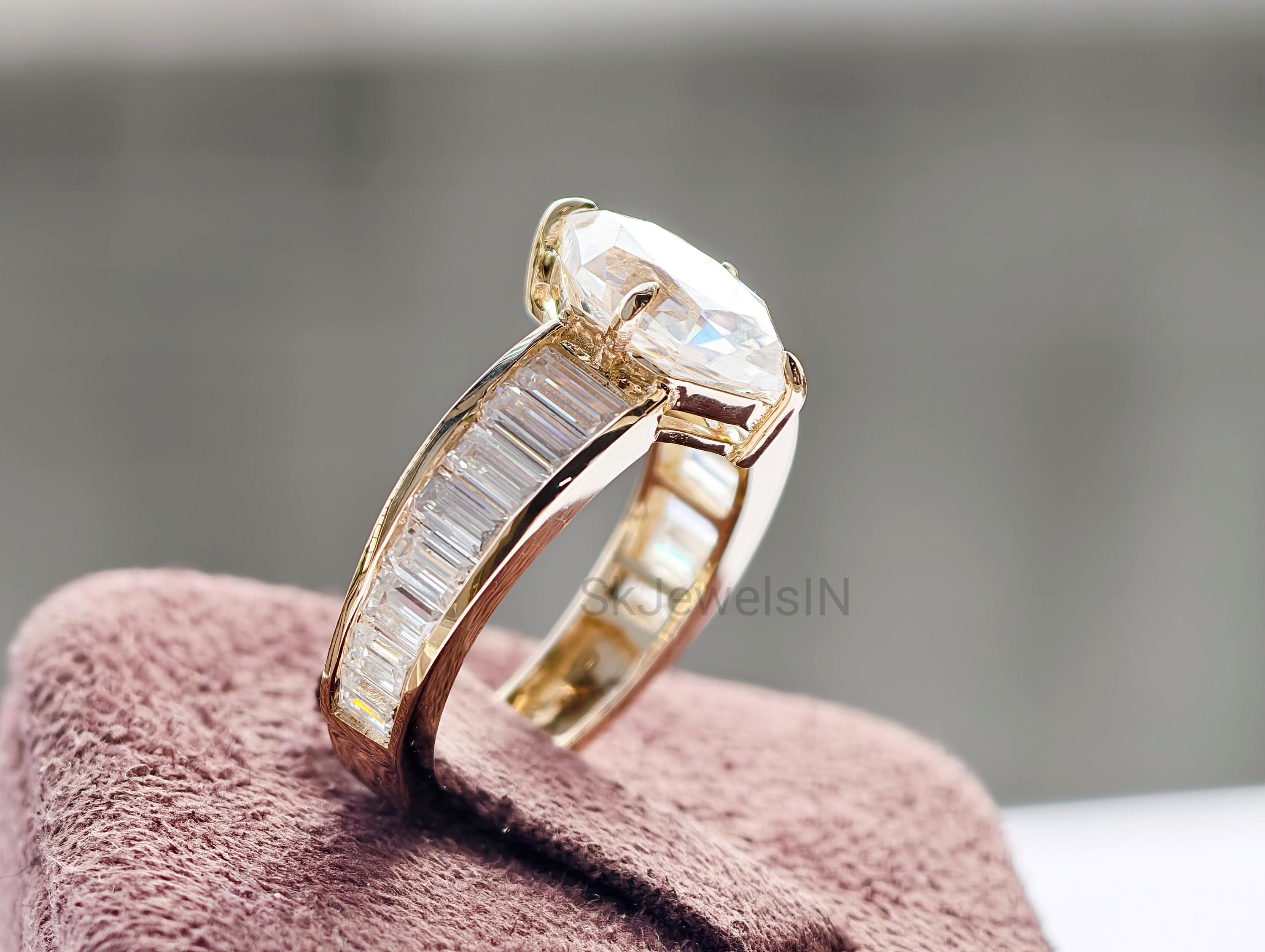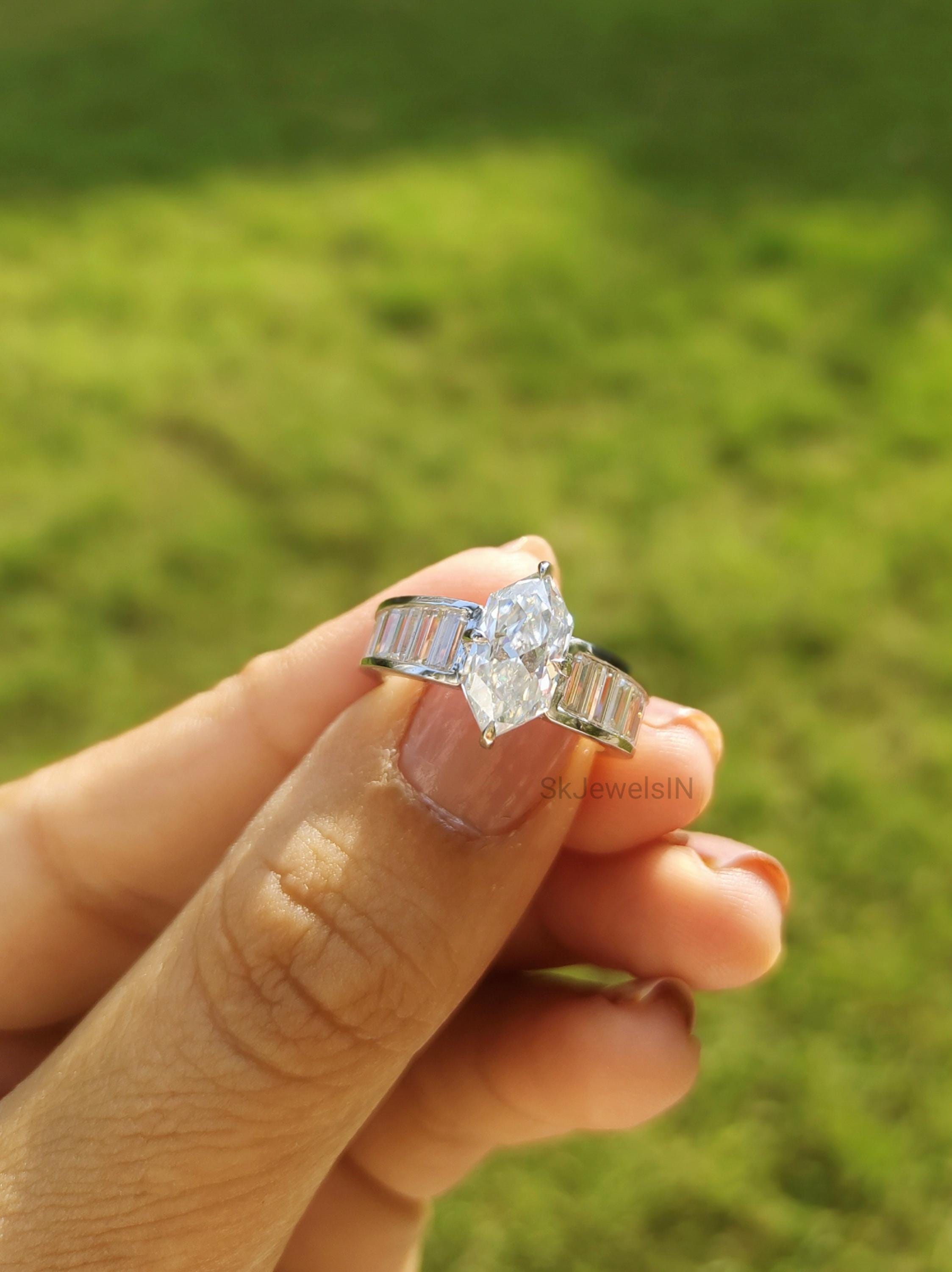 Dutch Marquise Engagement Ring 14K Gold Moissanite Wedding Ring With Baguette Channel Set Ring for Anniversary Gifts, Art Deco Ring Handmade