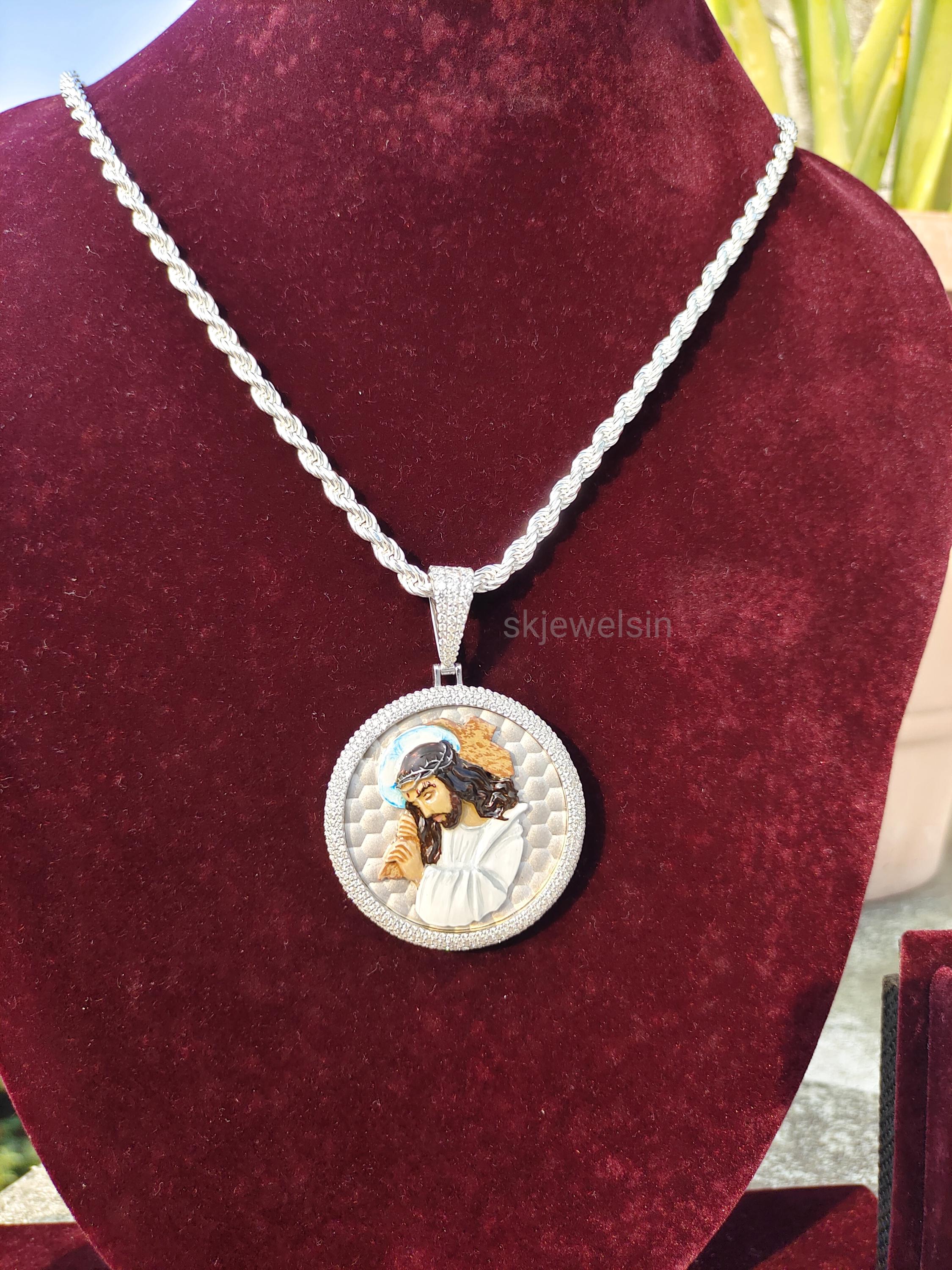Ready to Ship 925 Silver Jesus Head - VVS Moissanite Diamond Pendant - Matte Honeycomb Enamel - Big Rapper Charm Necklace