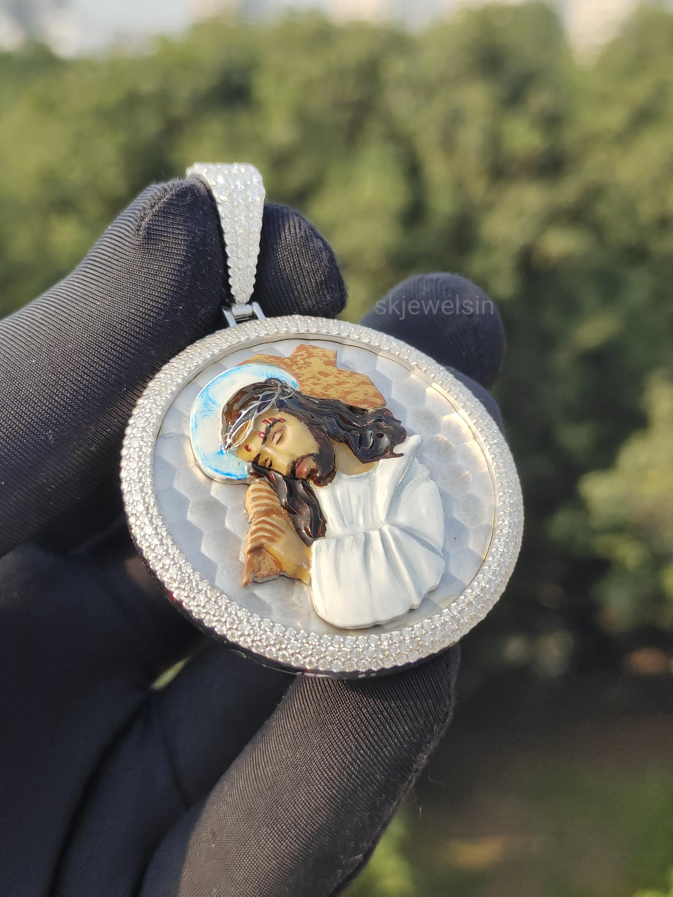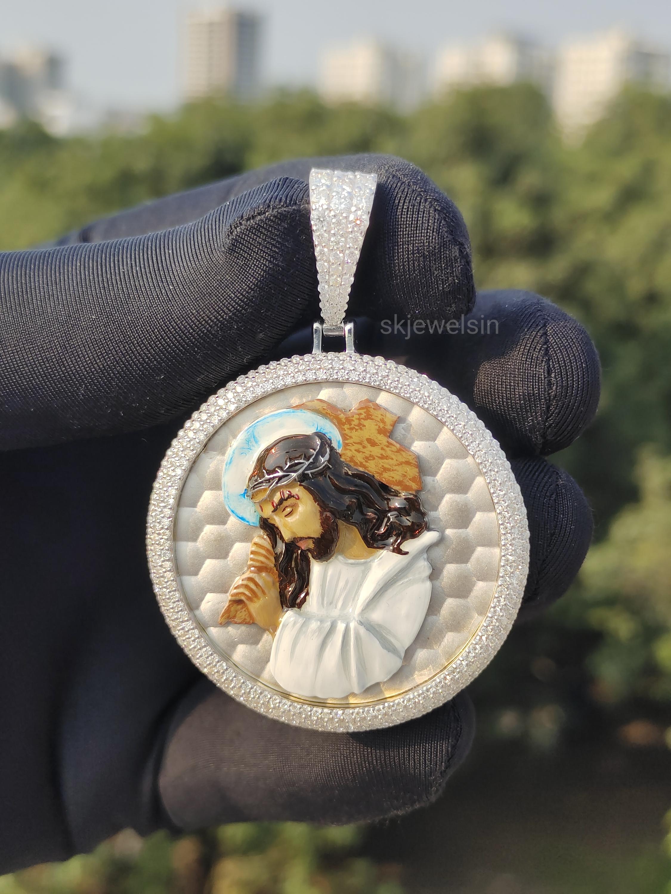 Jesus pendant Round Diamond Bezel Matte Honey comb Background Enamel Jesus Face Moissanite VVS Diamond Rapper pendant Hip Hop Pendant