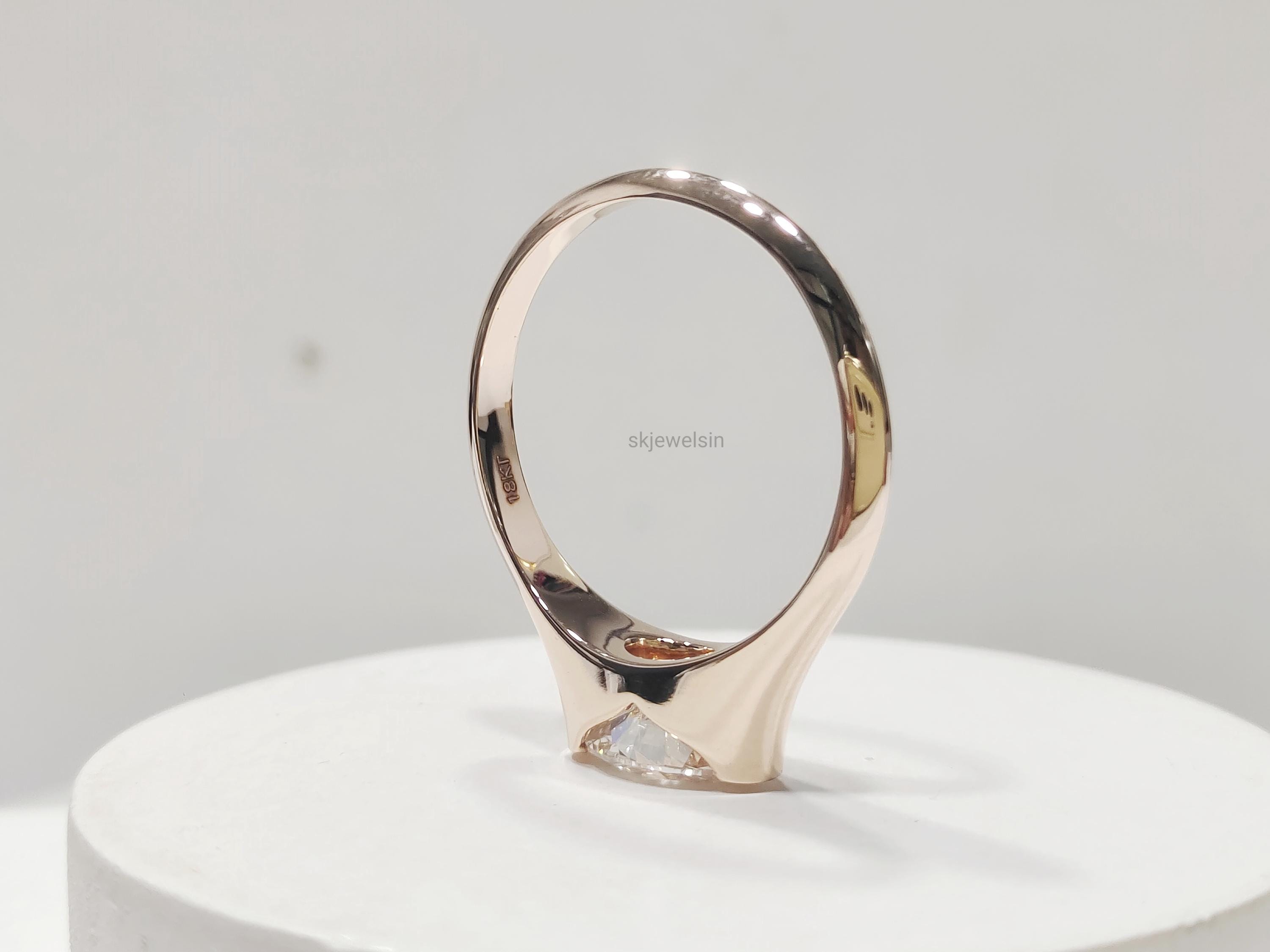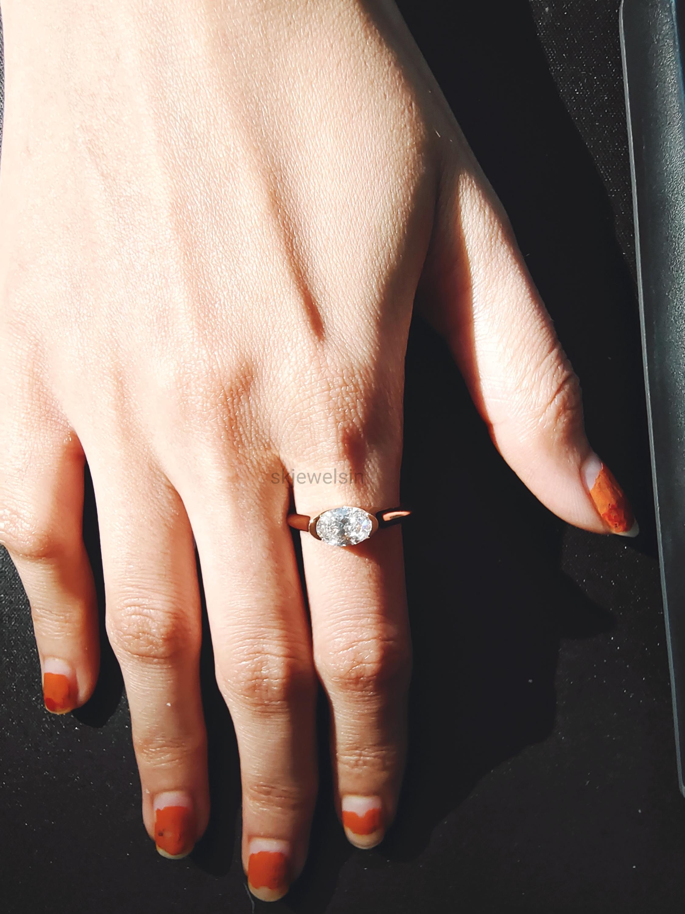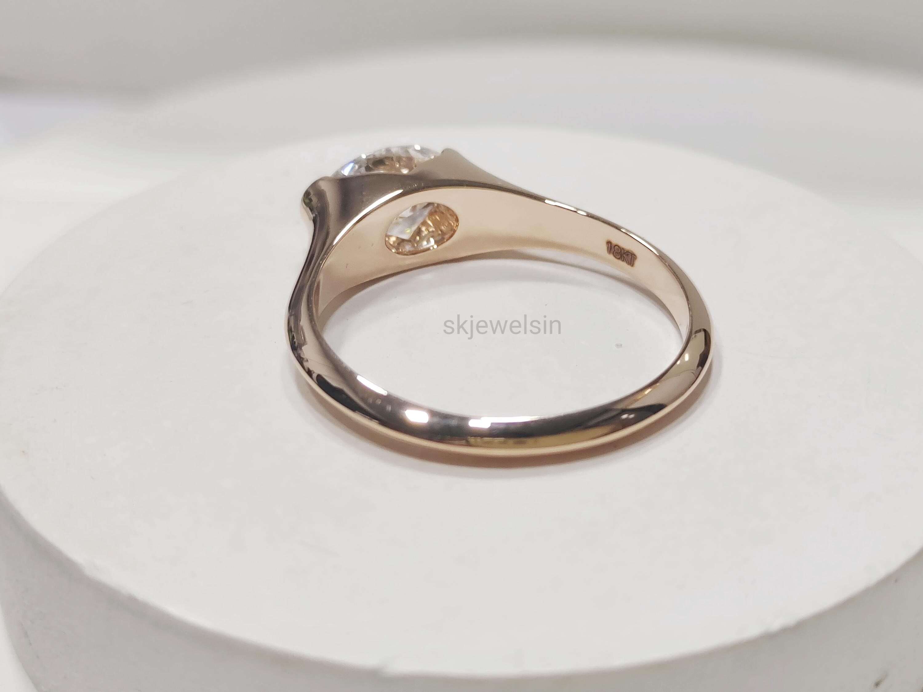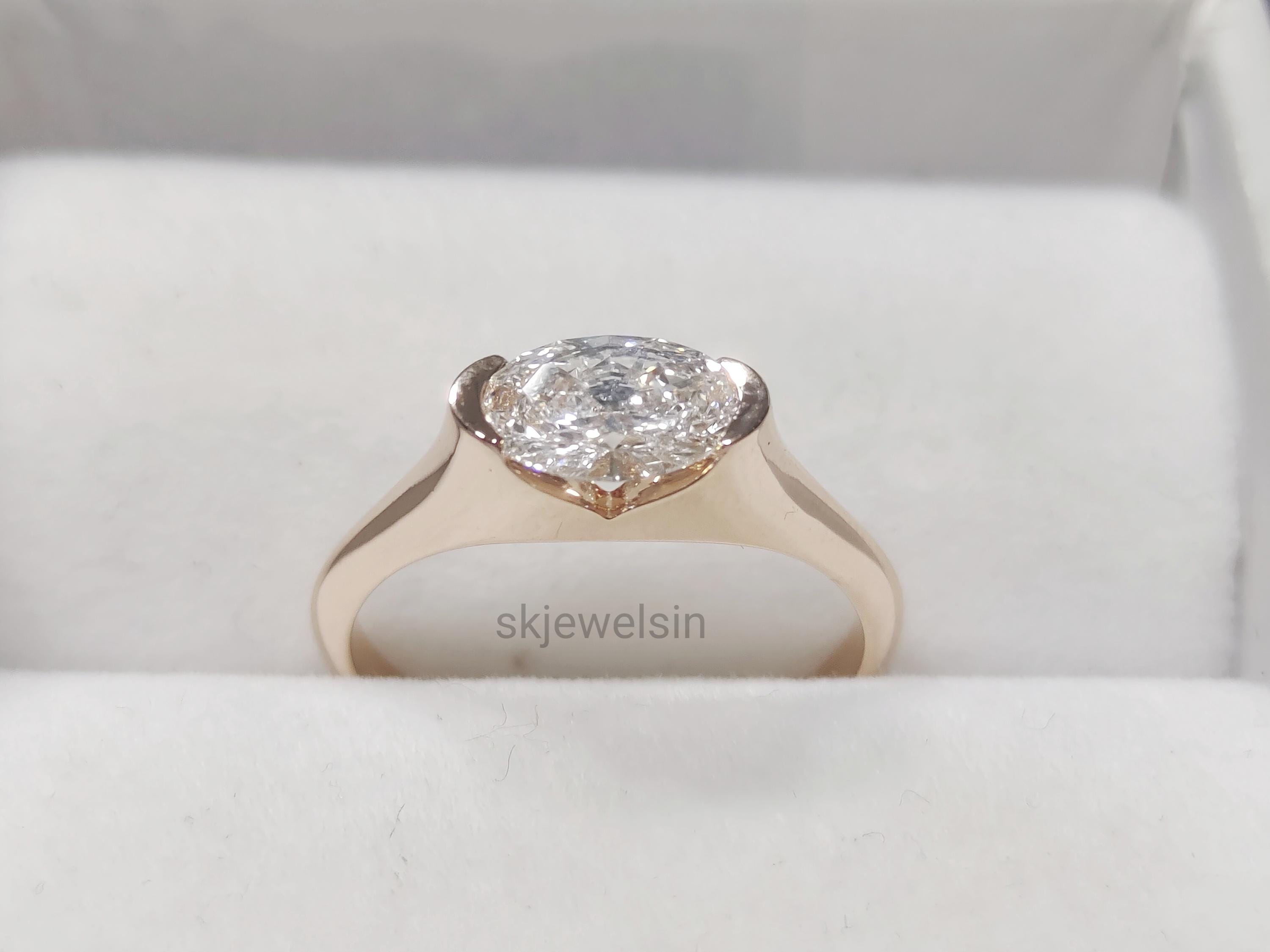 Half Bezel Set Oval Engagement Ring 14K Gold East West Oval Moissanite Ring Unique wedding ring Bridal set ring Handmade Rose gold ring