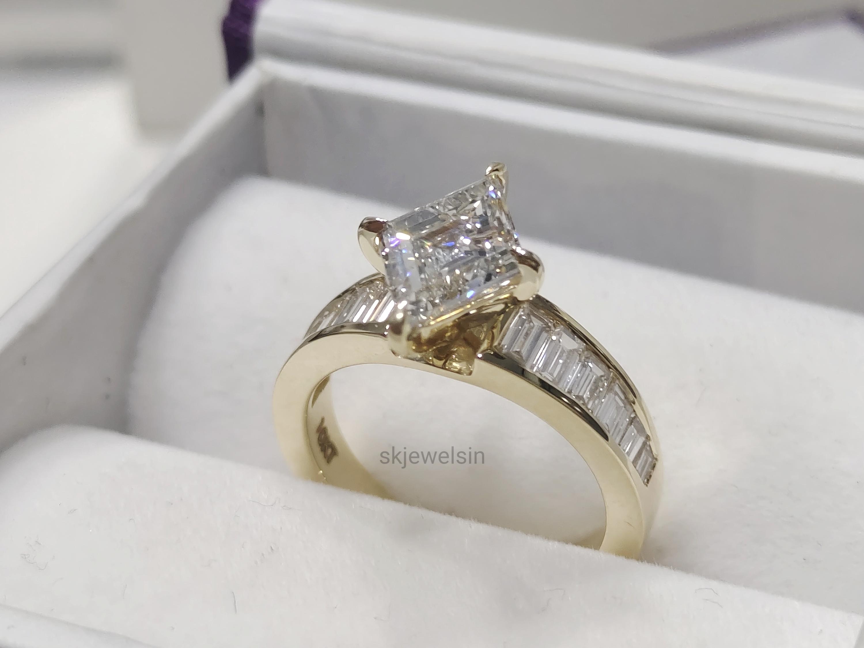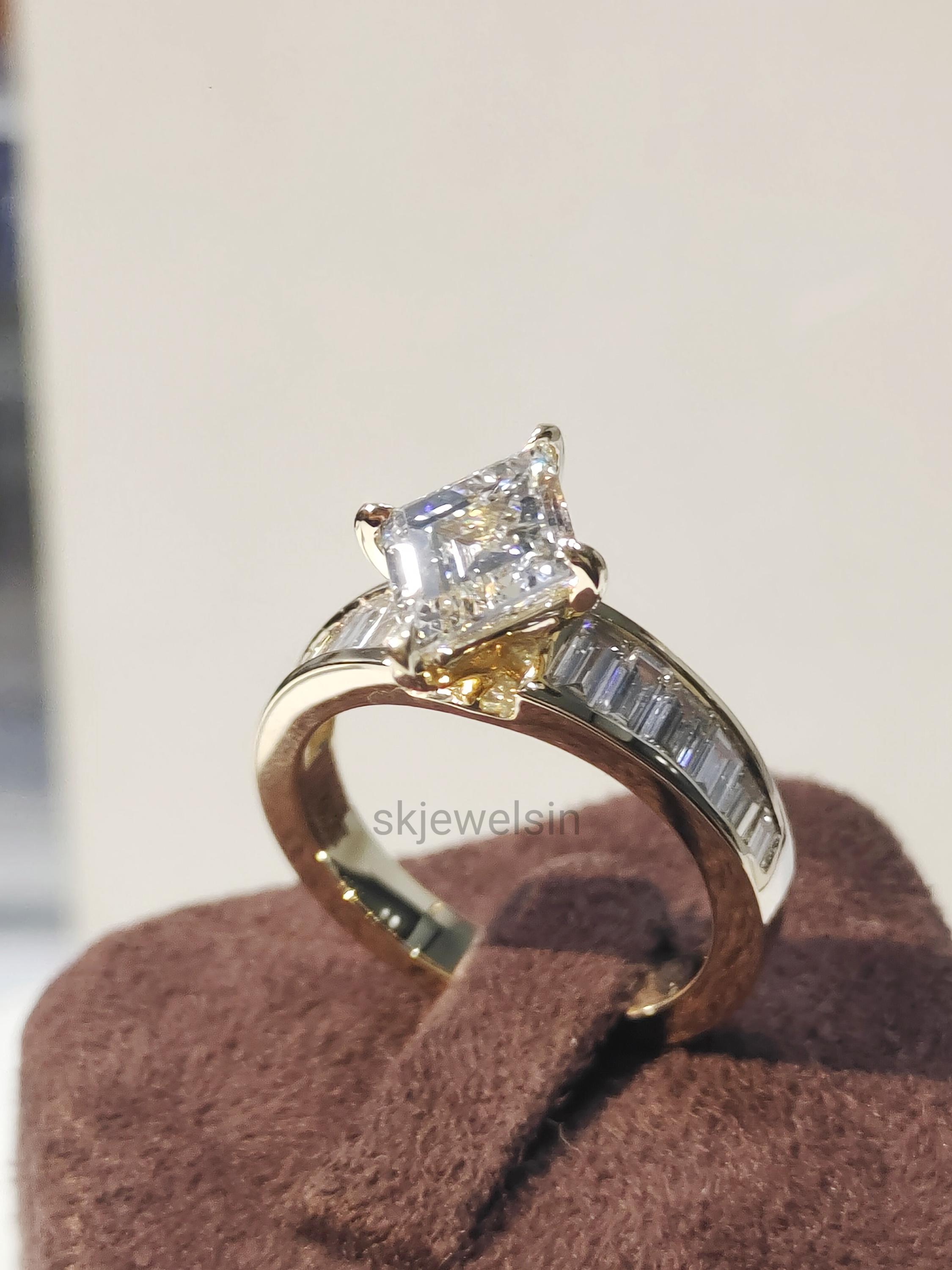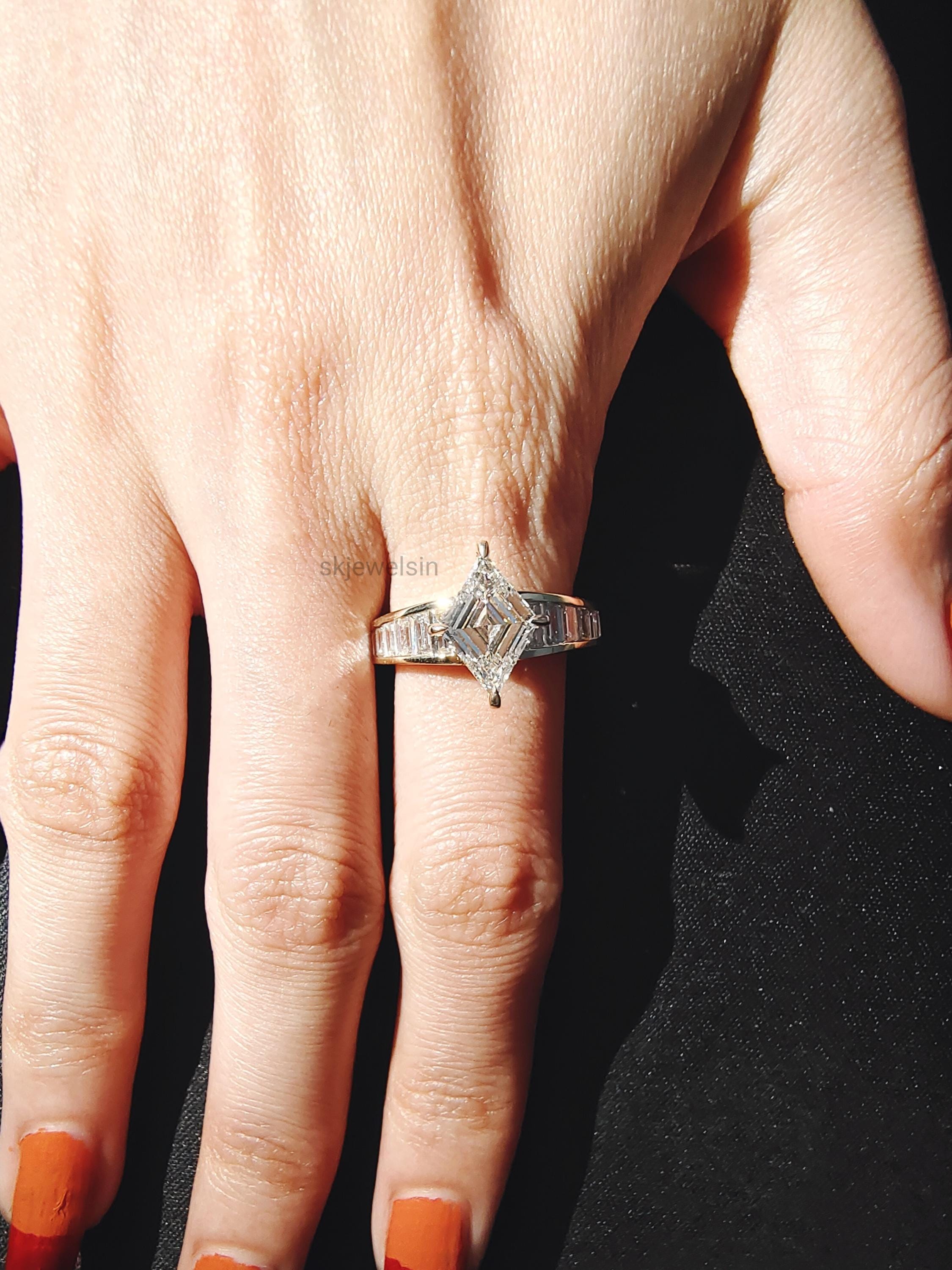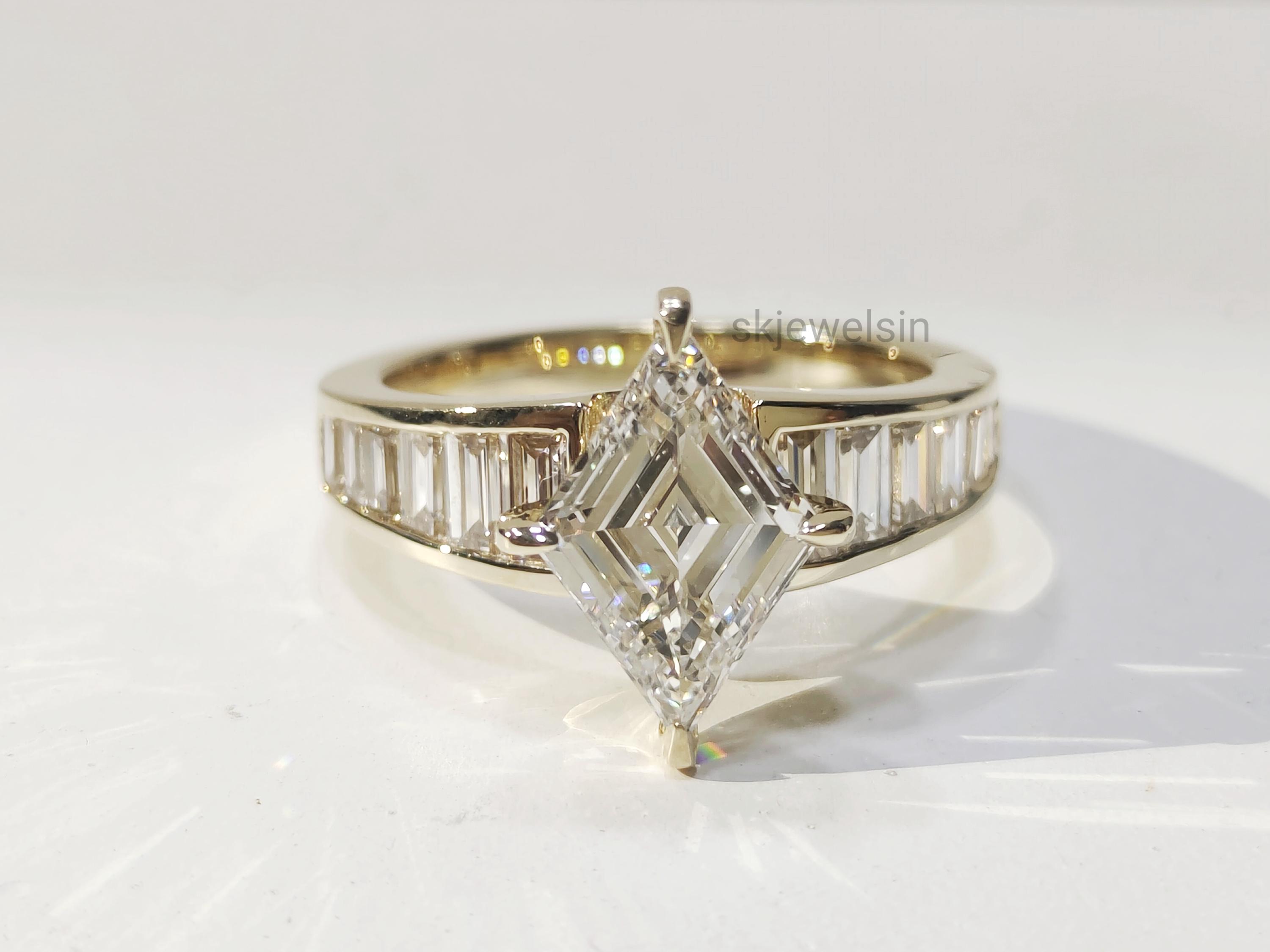 Unique Kite Cut Moissanite Engagement Ring 14K Gold Unique Wedding Ring For Women Baguette Channel Halo ring for Anniversary Gifts Art Deco