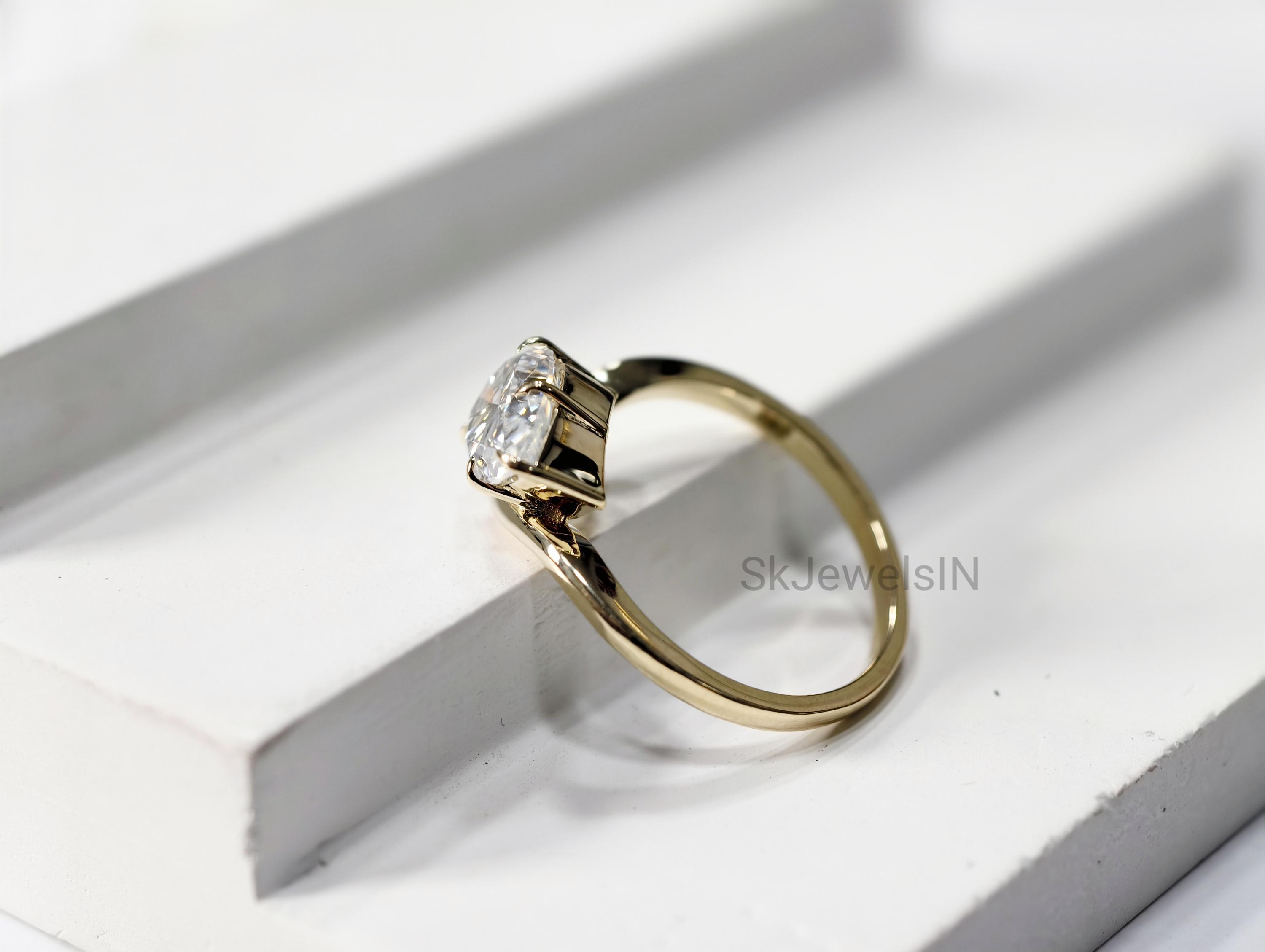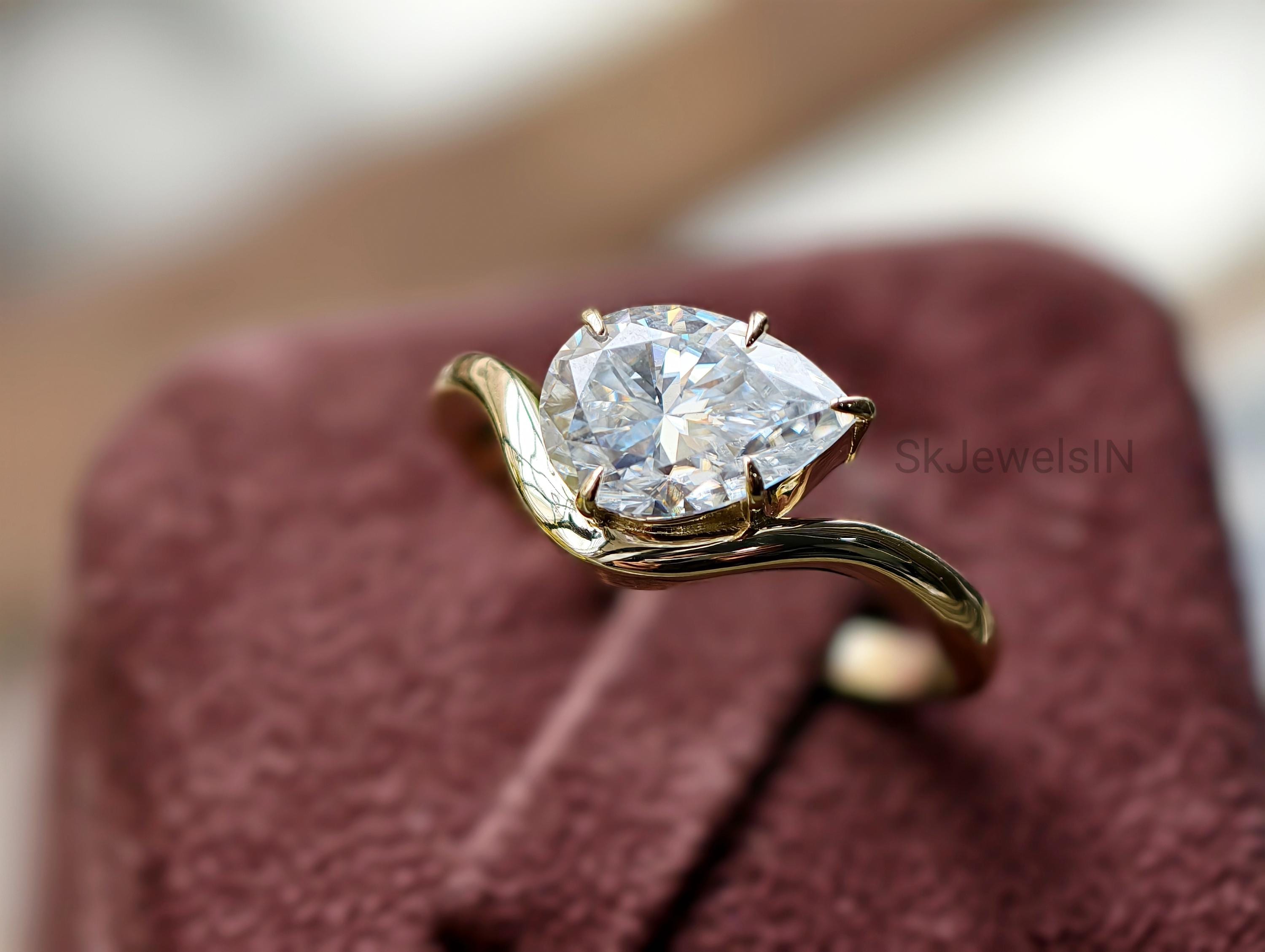 East West Pear Diamond Engagement Ring, Unique 14K Gold Teardrop Moissanite U band Wedding Ring, Vintage Gift for Women, Solitaire Ring