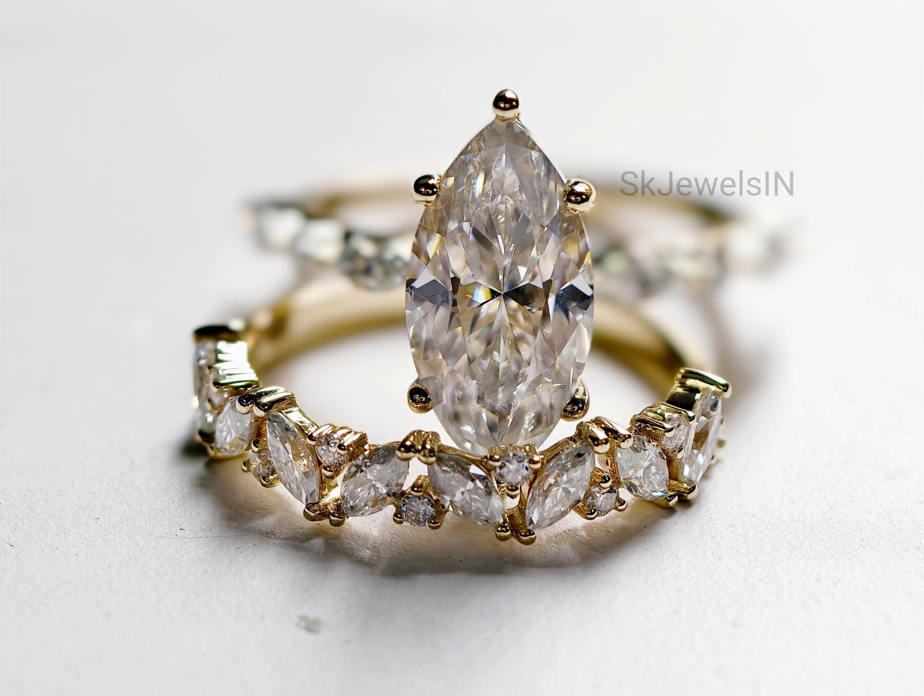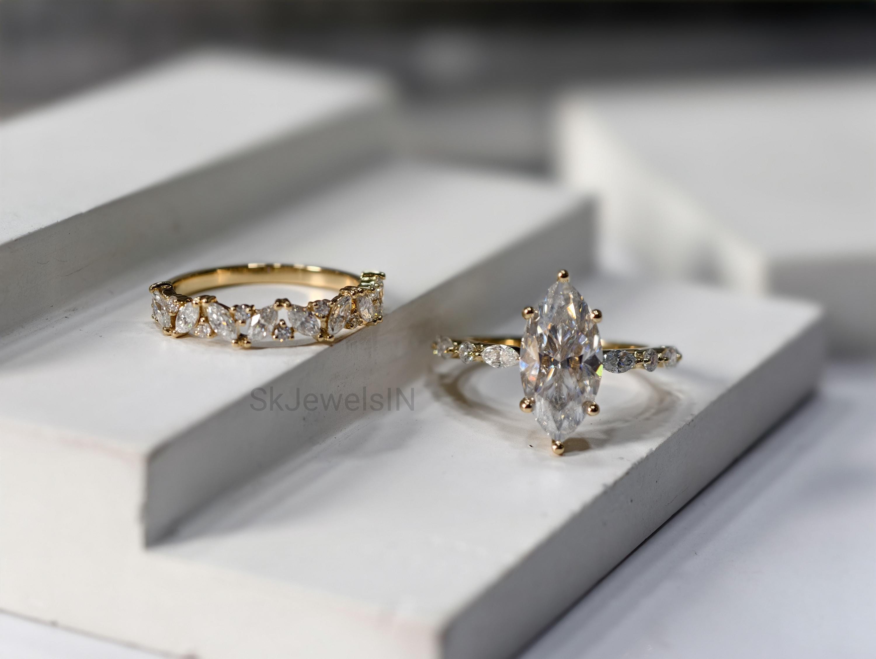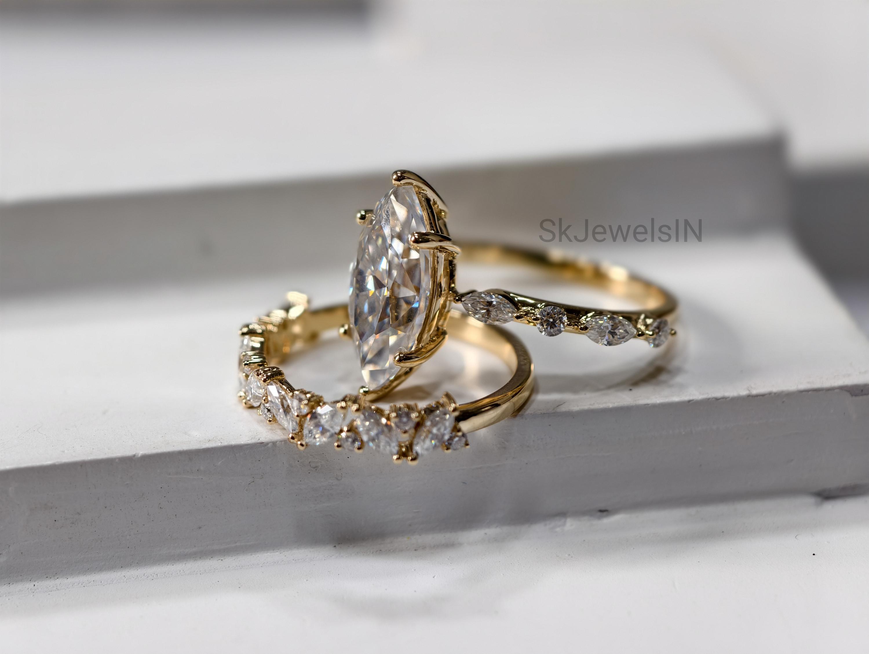3 CT Marquise Moissanite Bridal sets 14K Gold Engagement Ring With Stacking Diamond Band , Unique Wedding ring Vintage ring for women