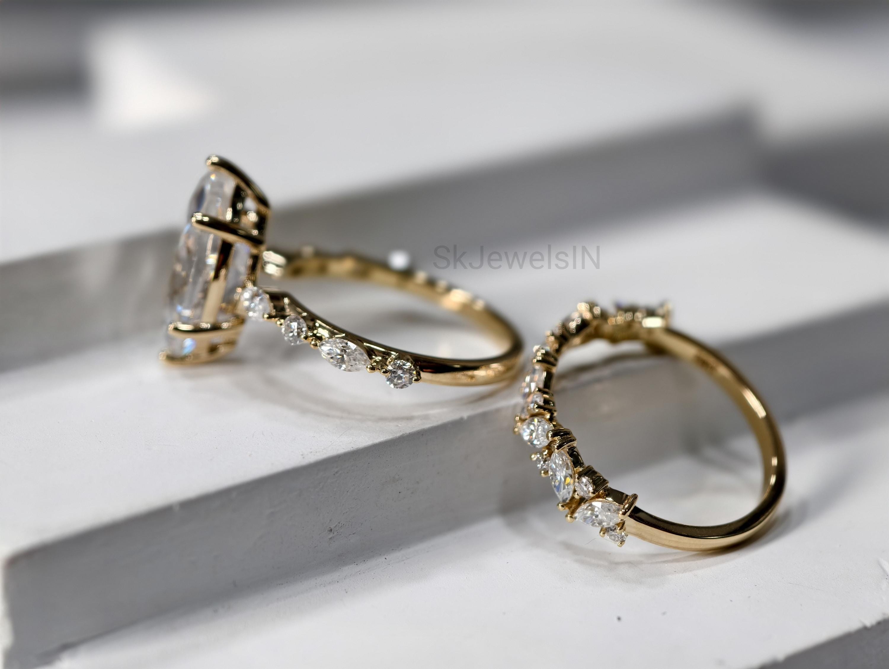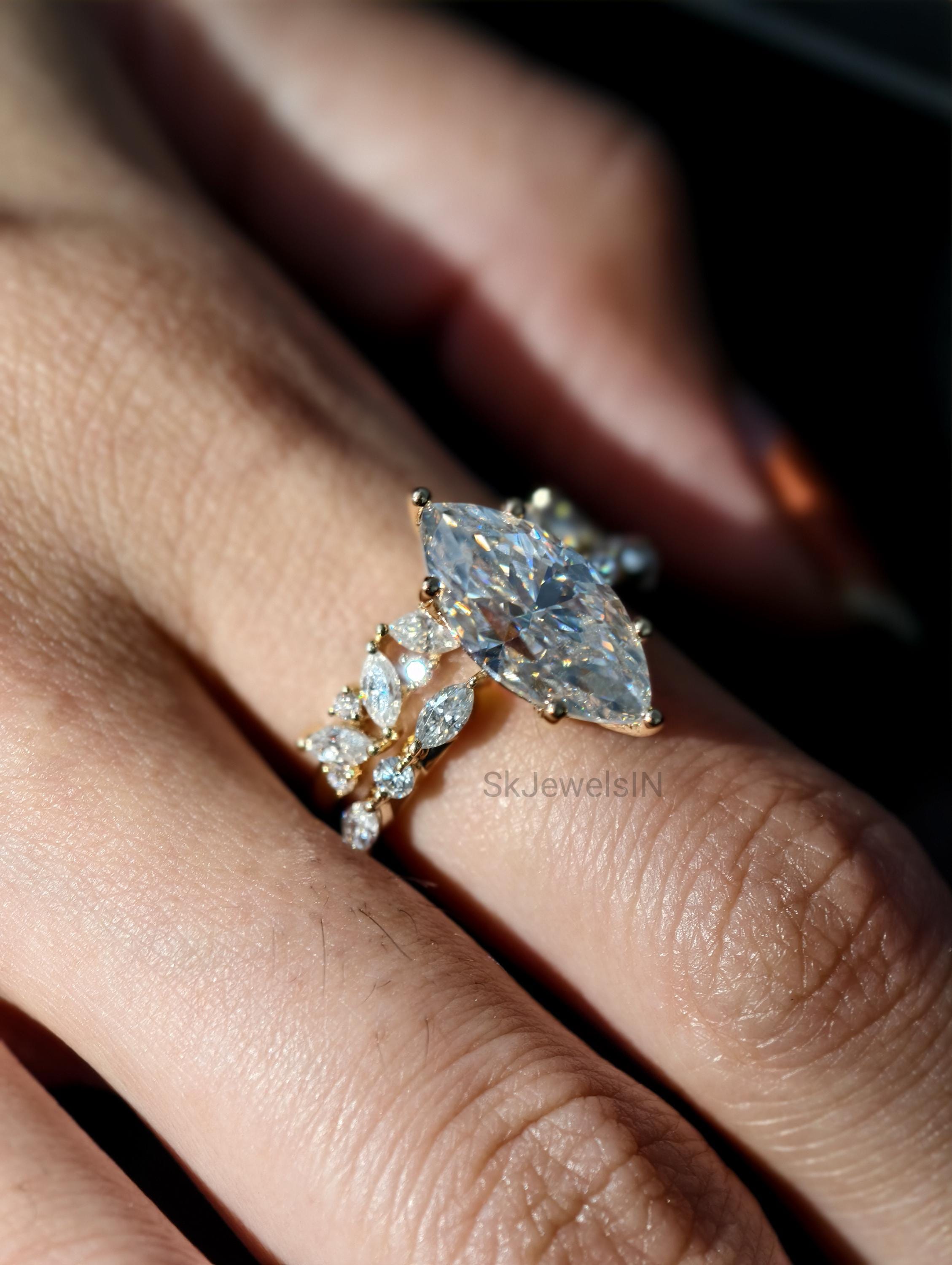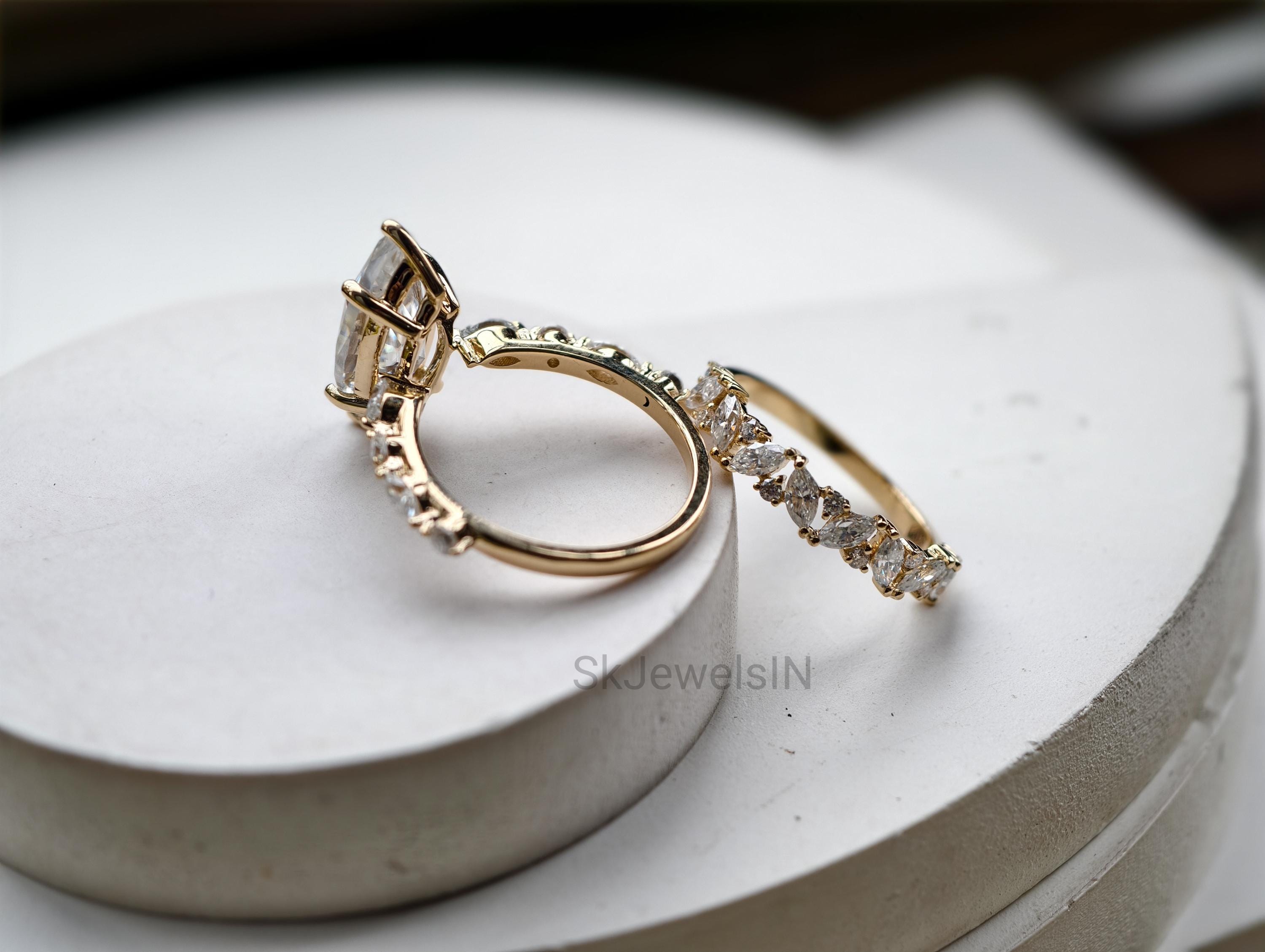 3 CT Marquise Moissanite Bridal sets 14K Gold Engagement Ring With Stacking Diamond Band , Unique Wedding ring Vintage ring for women