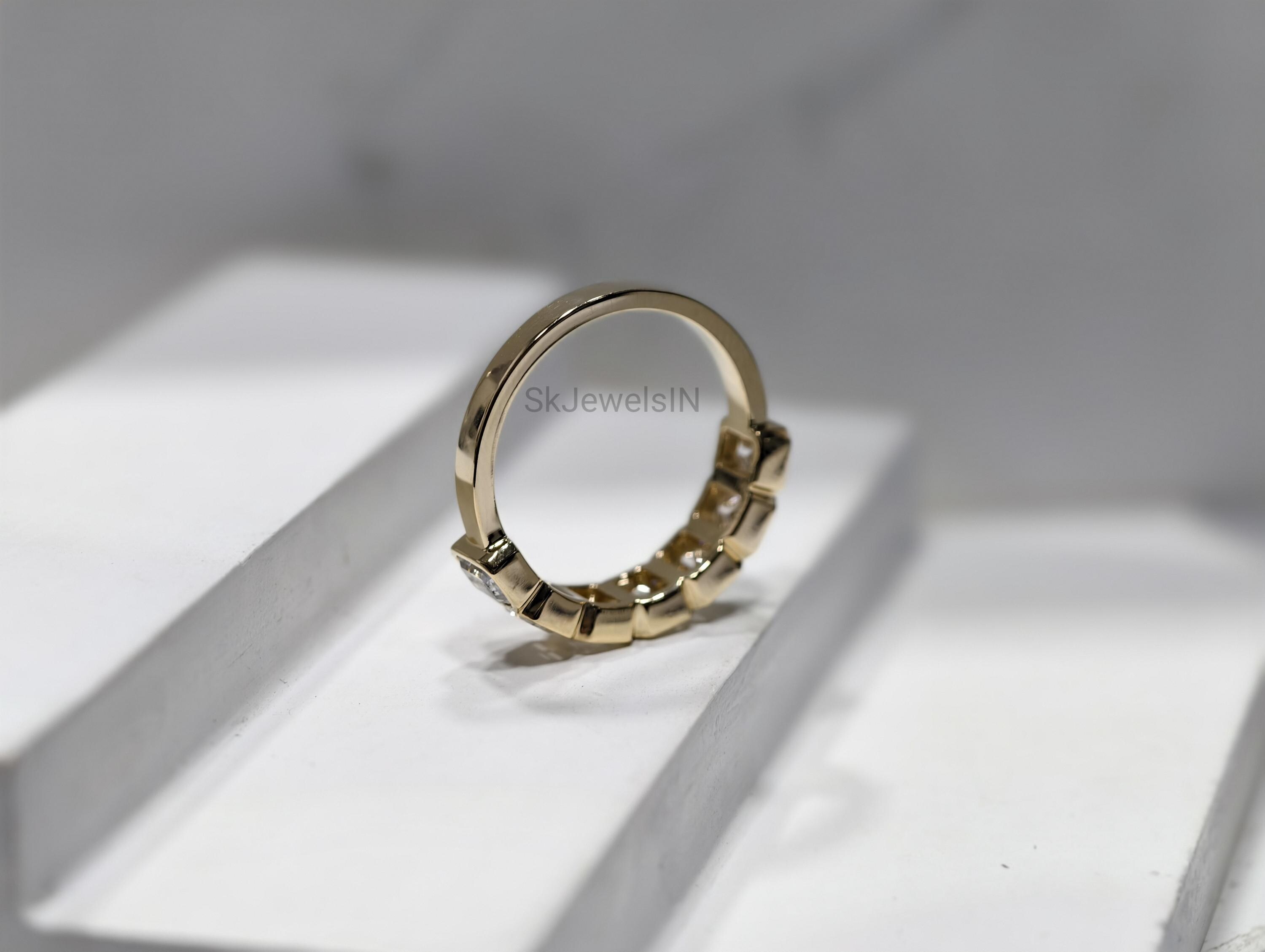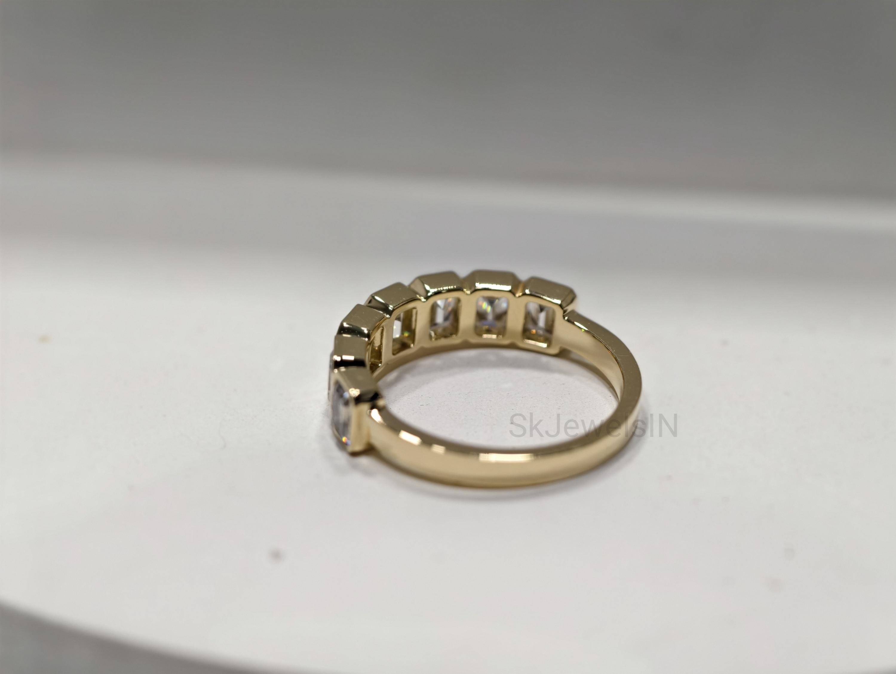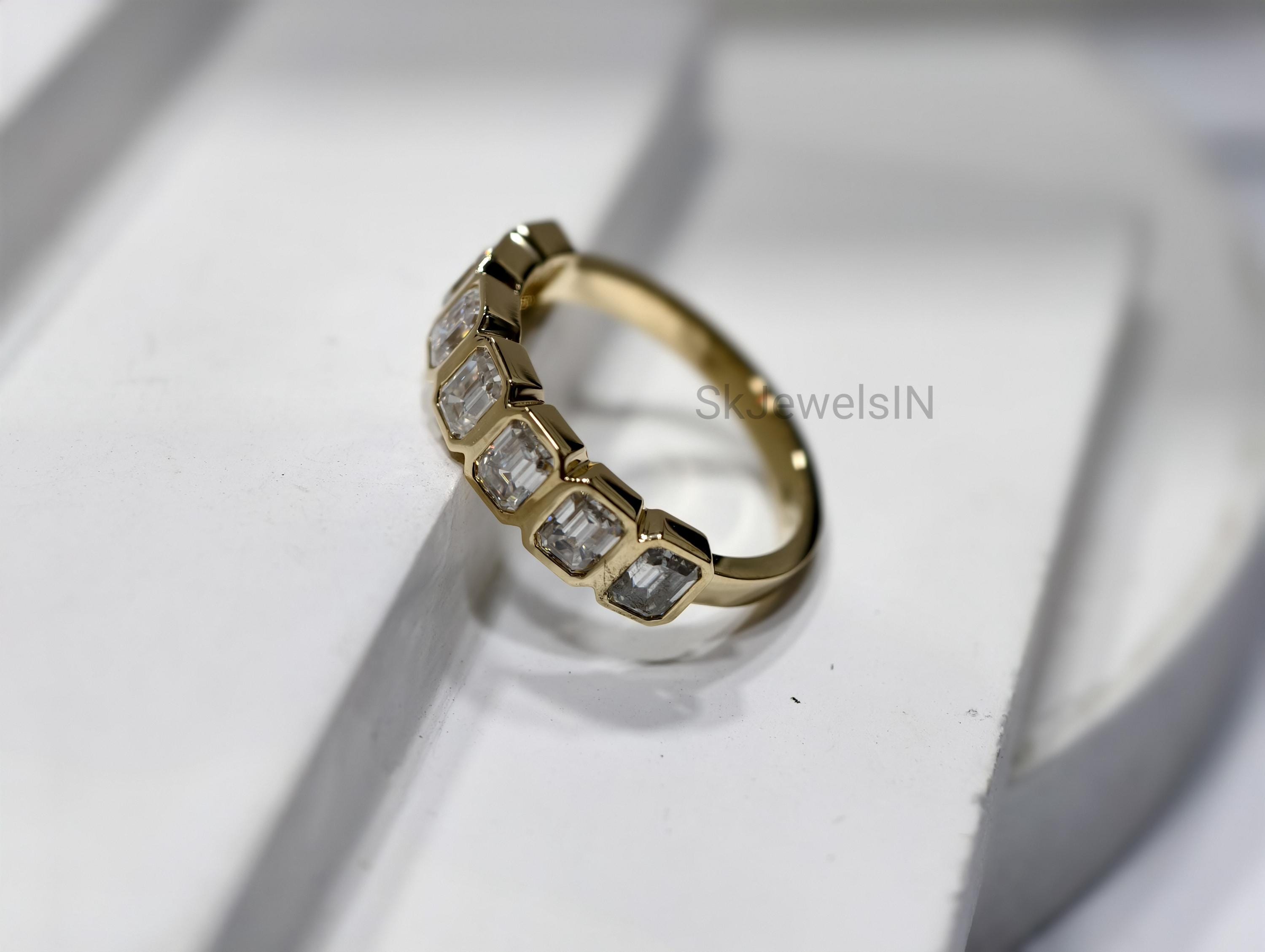 14K Gold Bezel Set Seven Stone Moissanite Band Ring | Stacking Diamond Ring | Dainty Moissanite Ring Gift For Women Art deco