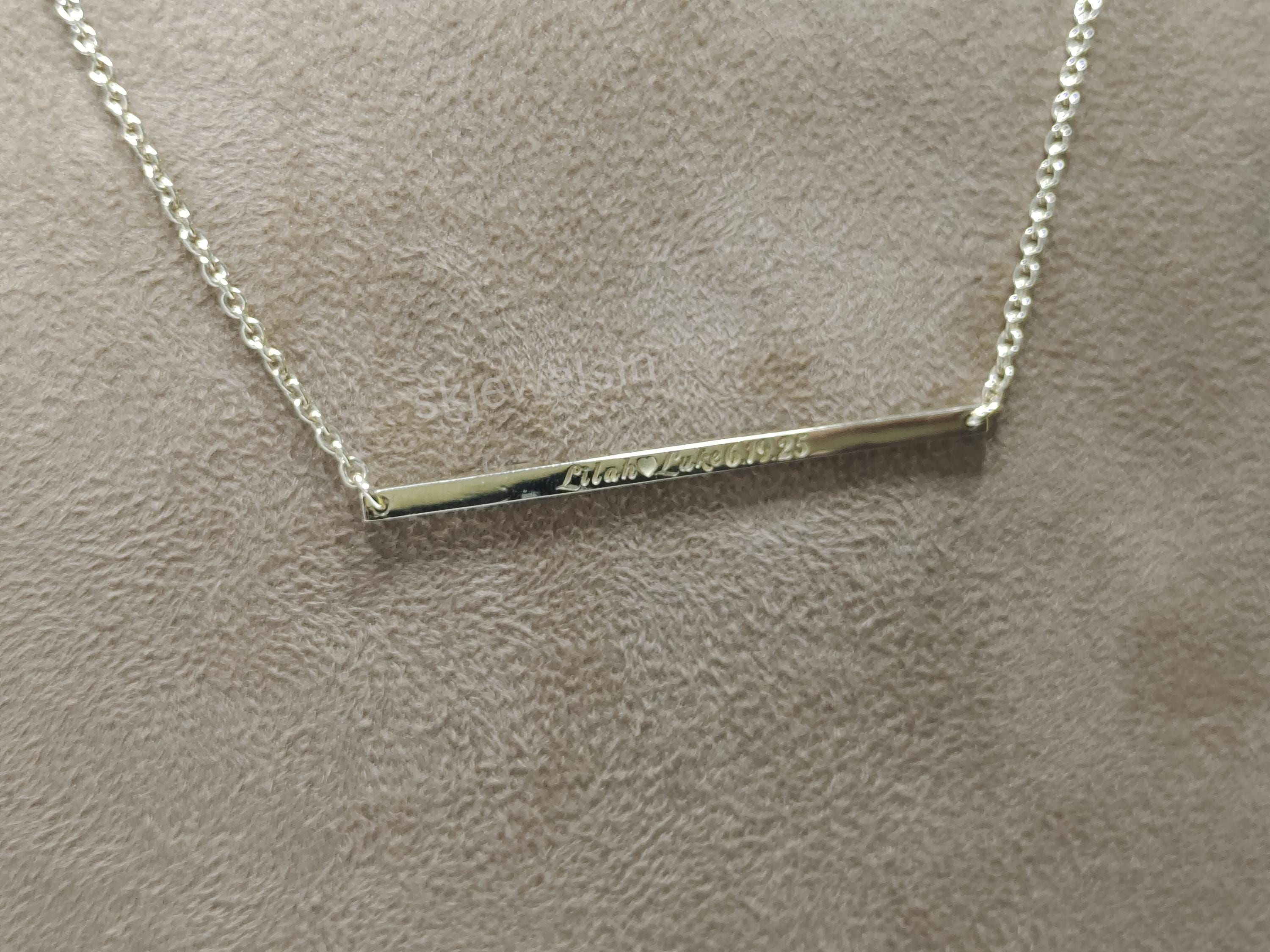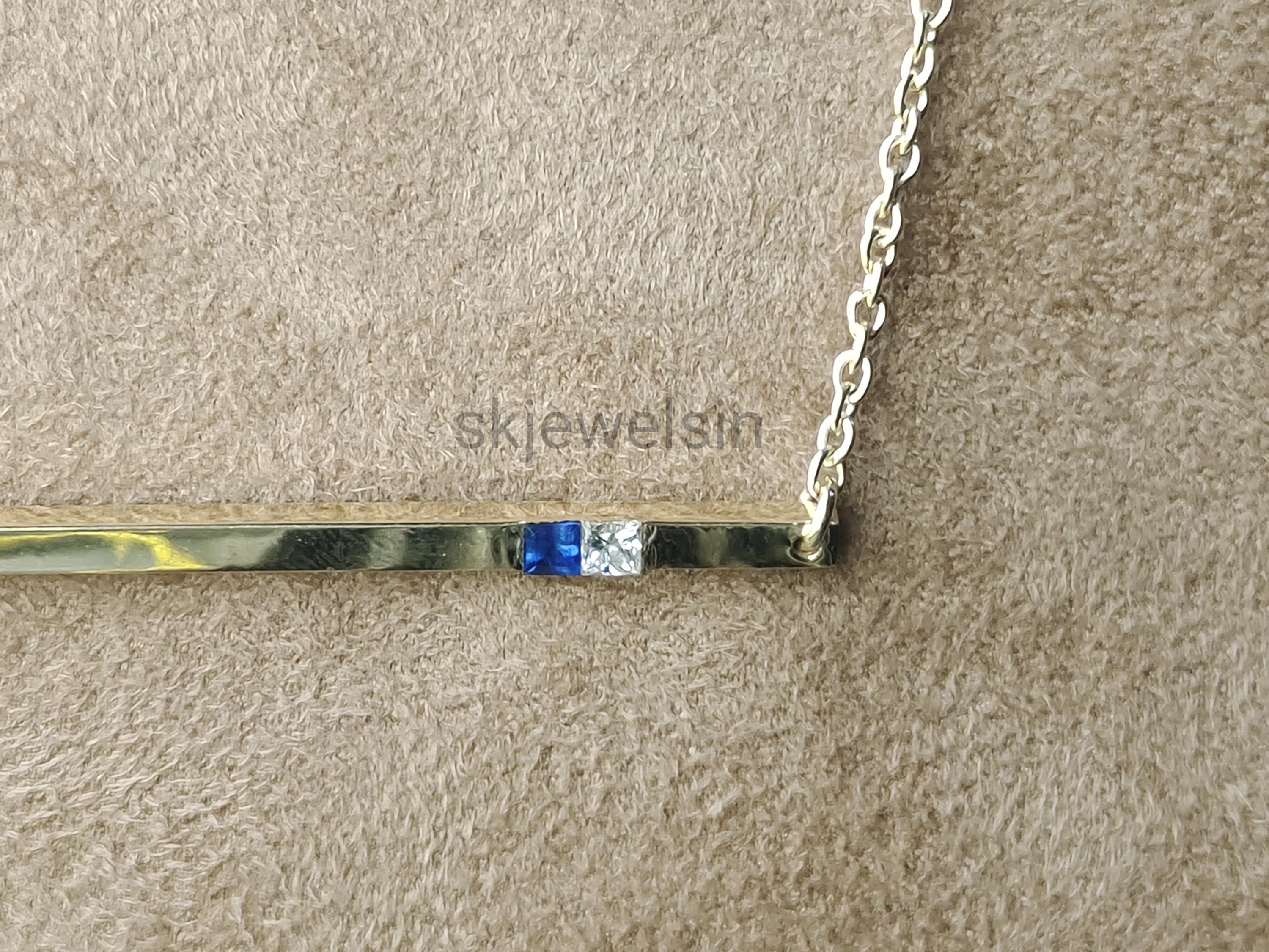 14K Solid Gold Bar Necklace, Personalized Bar Name & Birthstone Necklace, Custom Name Bar Necklace 14K Gold Engravable Horizontal Necklace