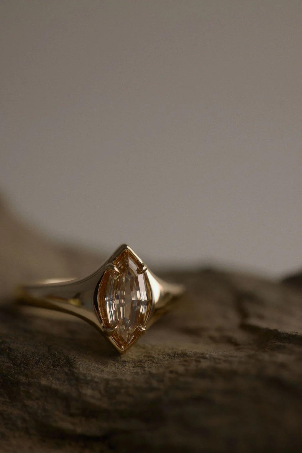 Antique Champagne Marquise Moissanite Ring, 14K Gold Engagement & Wedding Ring, Bridal Set Ring, Vintage Ring For Women, Gift for her