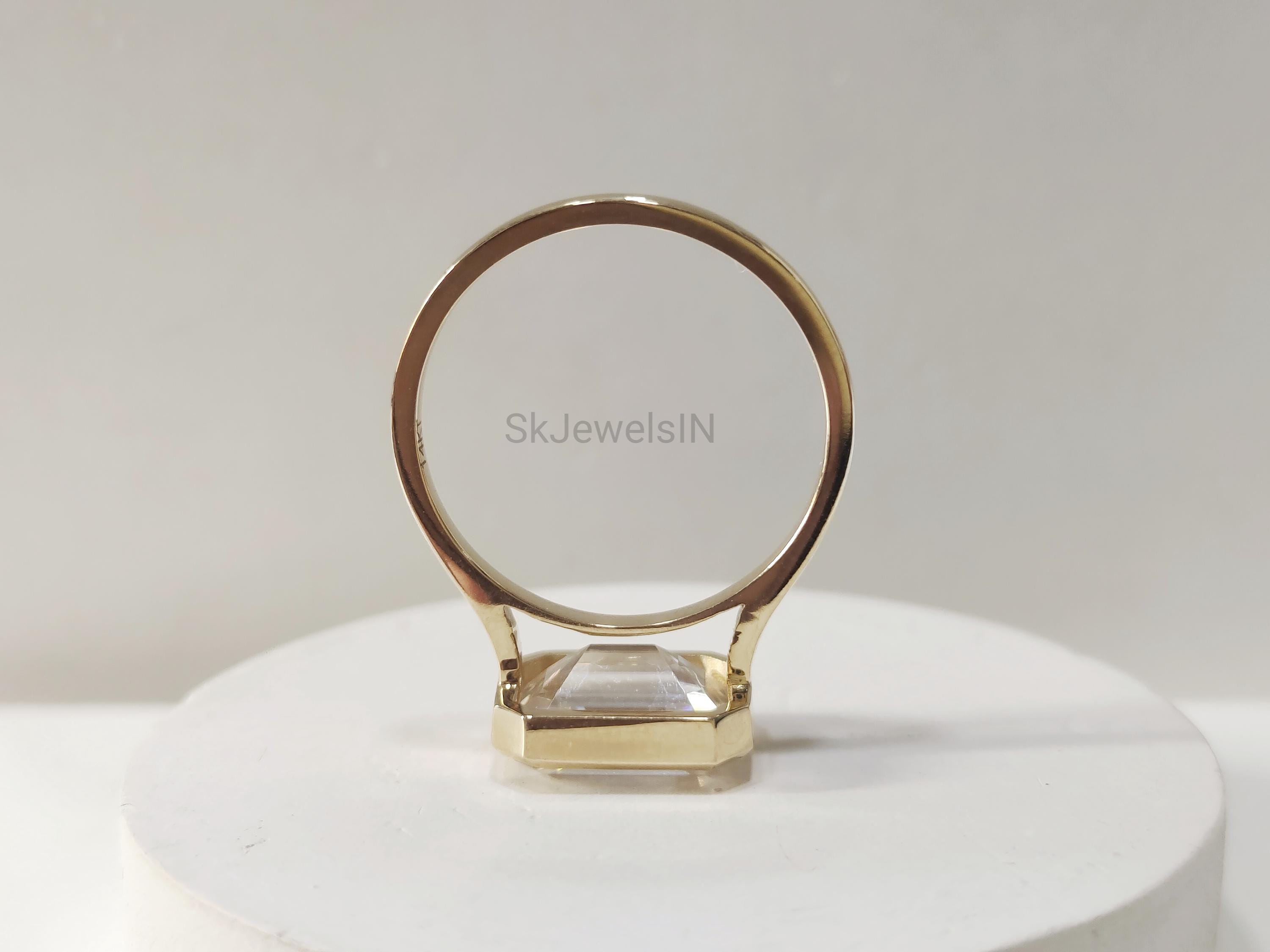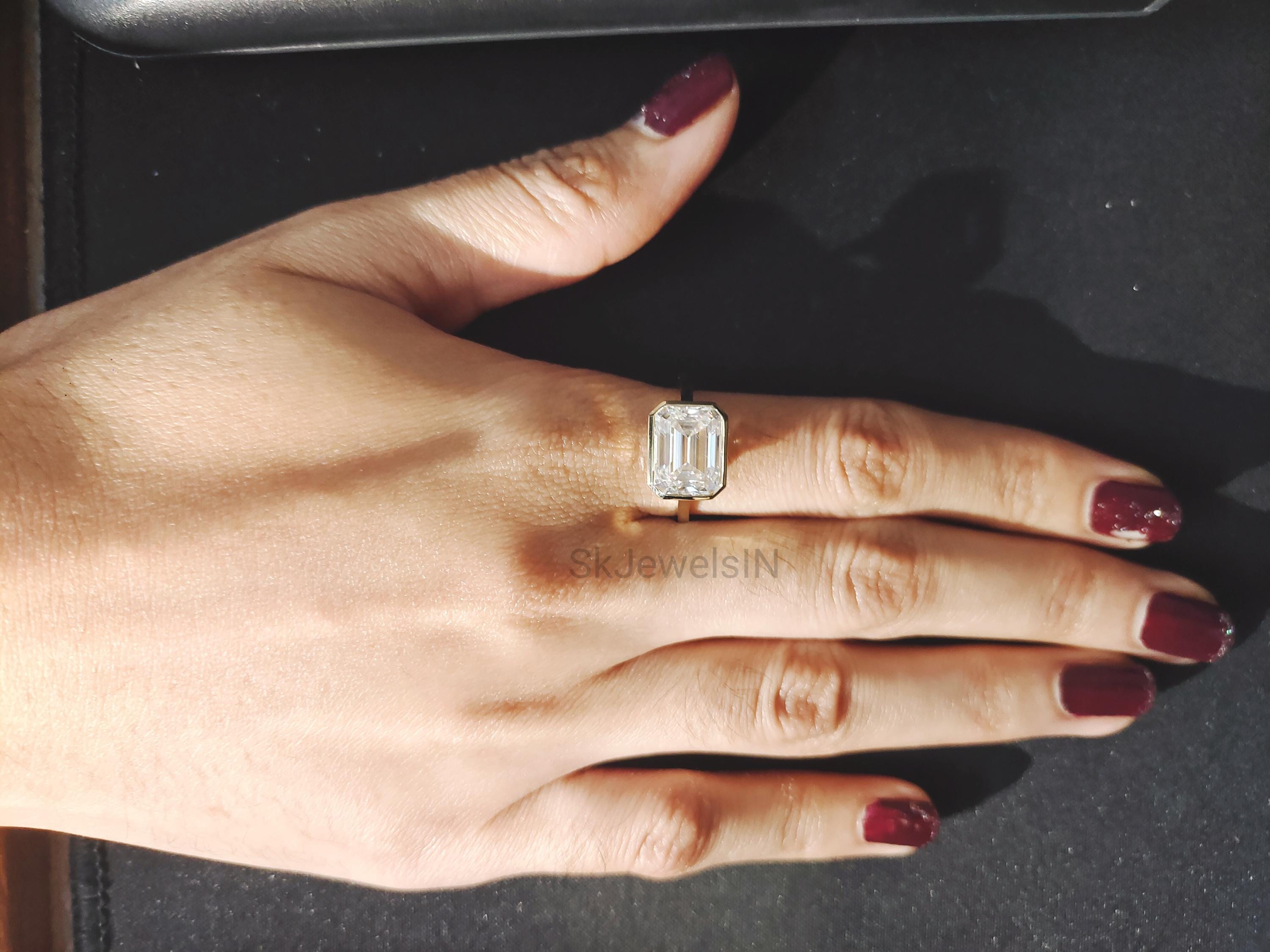 3 CT Emerald Cut Moissanite Engagement Ring, 14K Gold Bezel Set low profile ring, Anniversary gifts, Wedding Ring for Women, Gifts