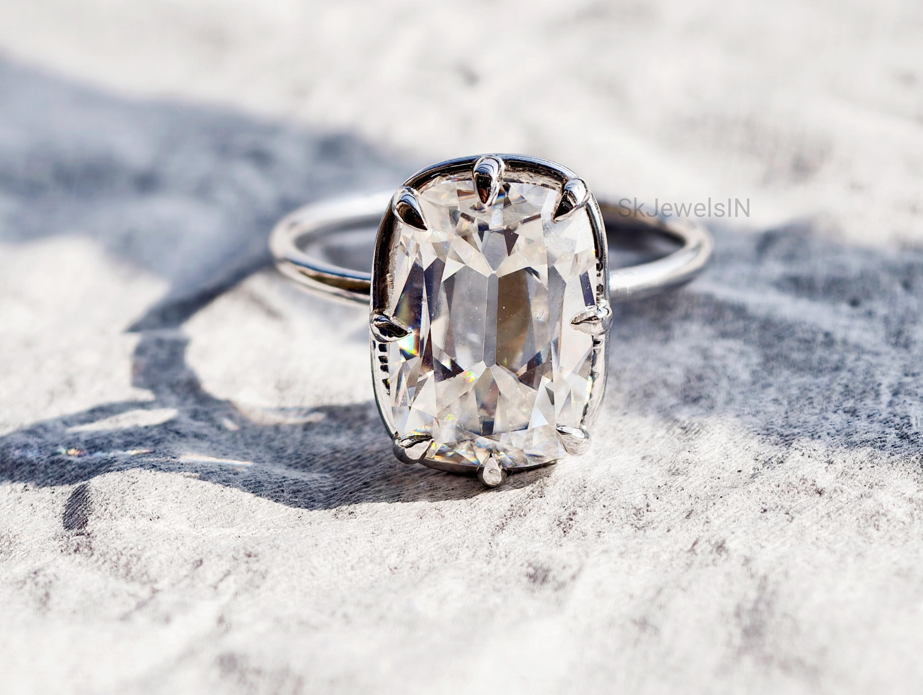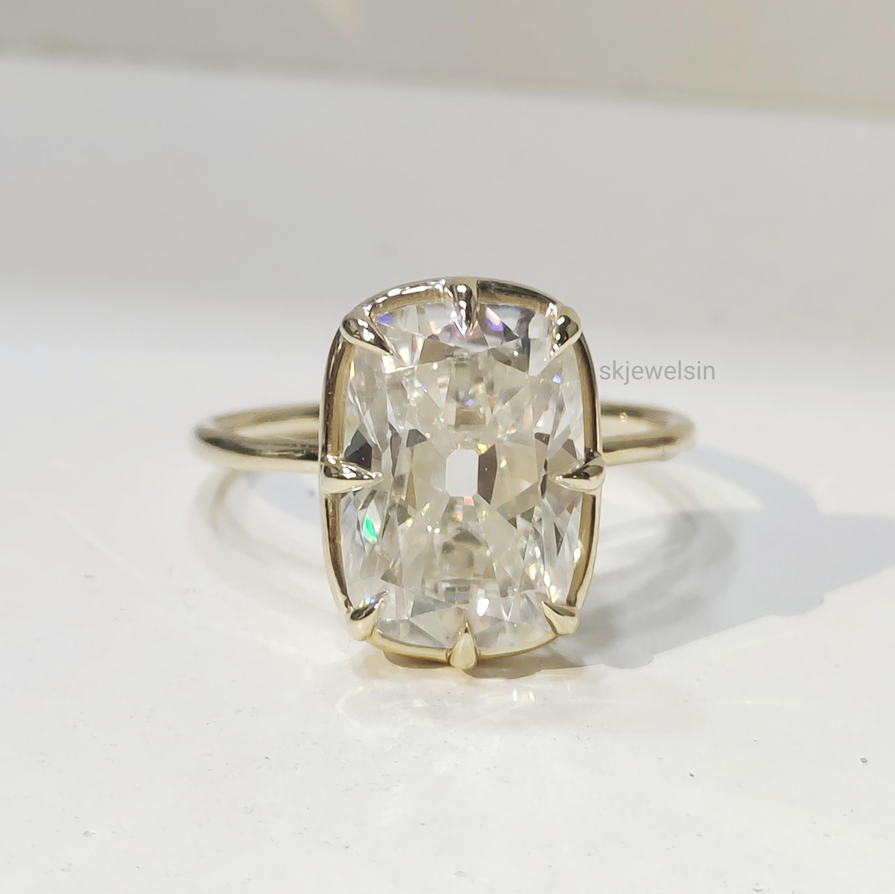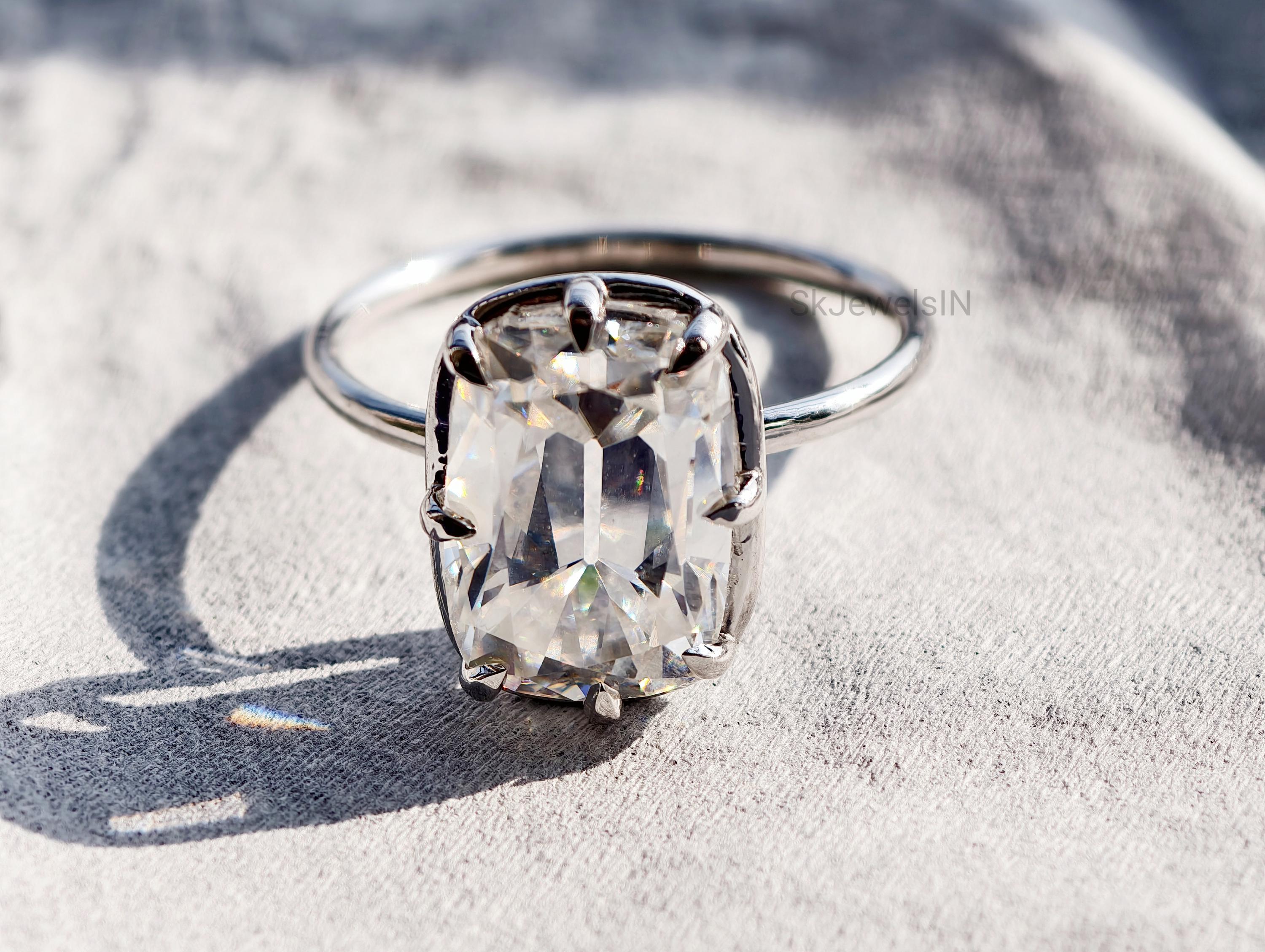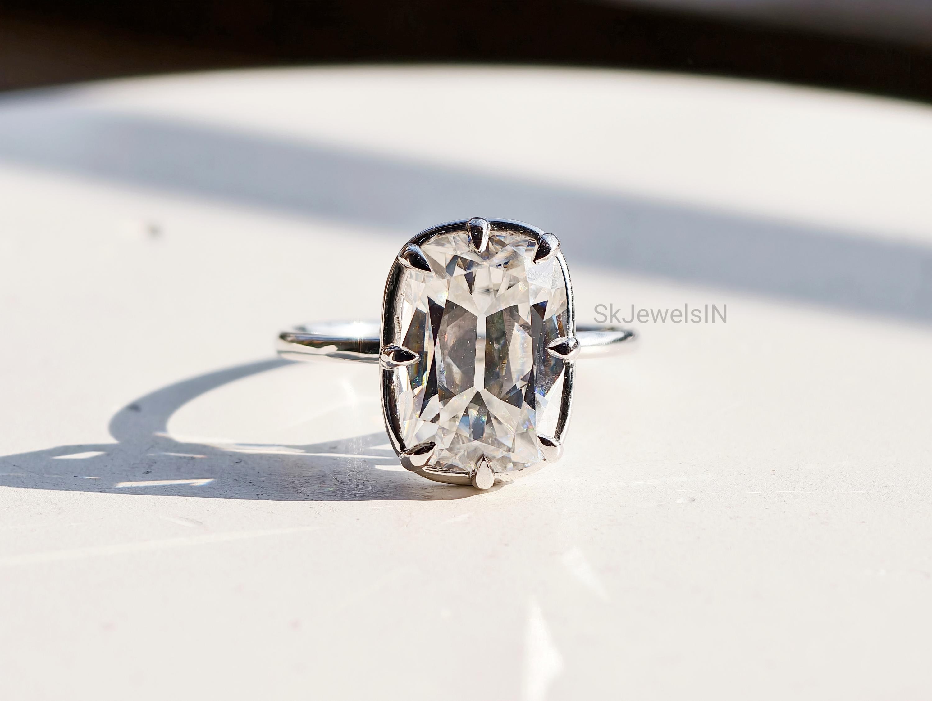 6 Carat Elongated Old mine Cushion Moissanite Engagement Ring,14K Gold Tiger Prong, Handmade Antique cut diamond, Wedding Gifts