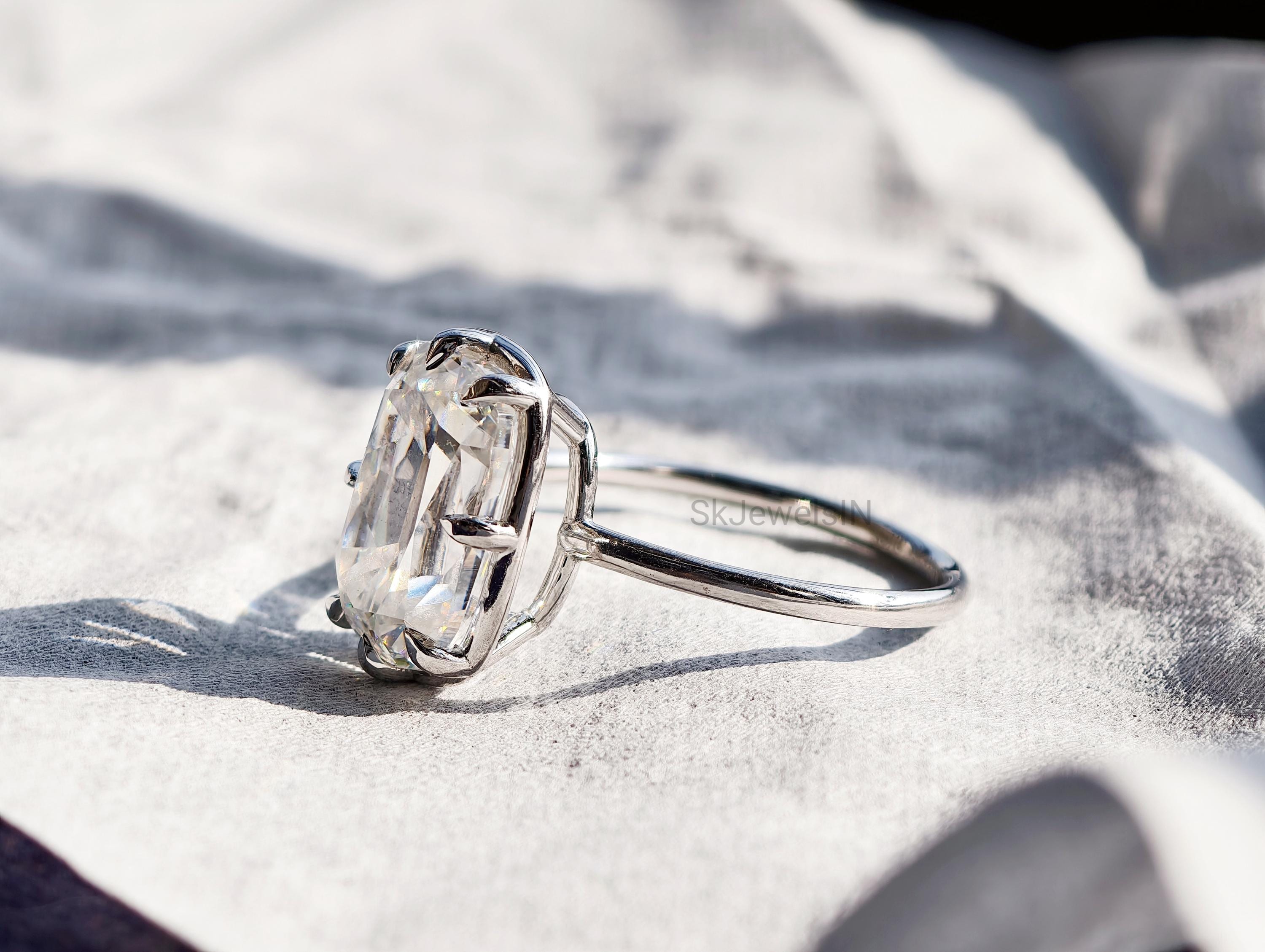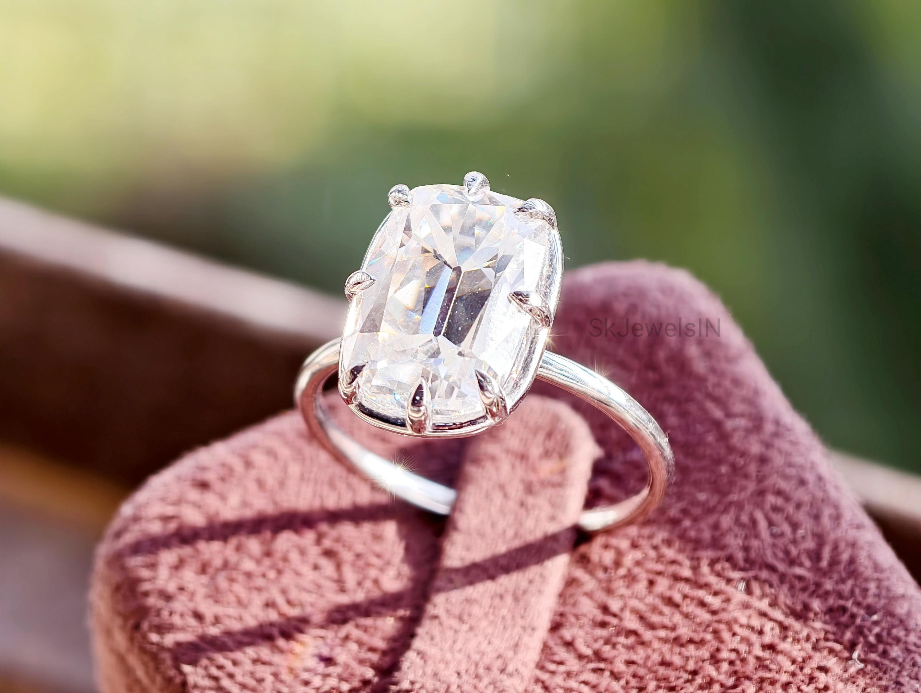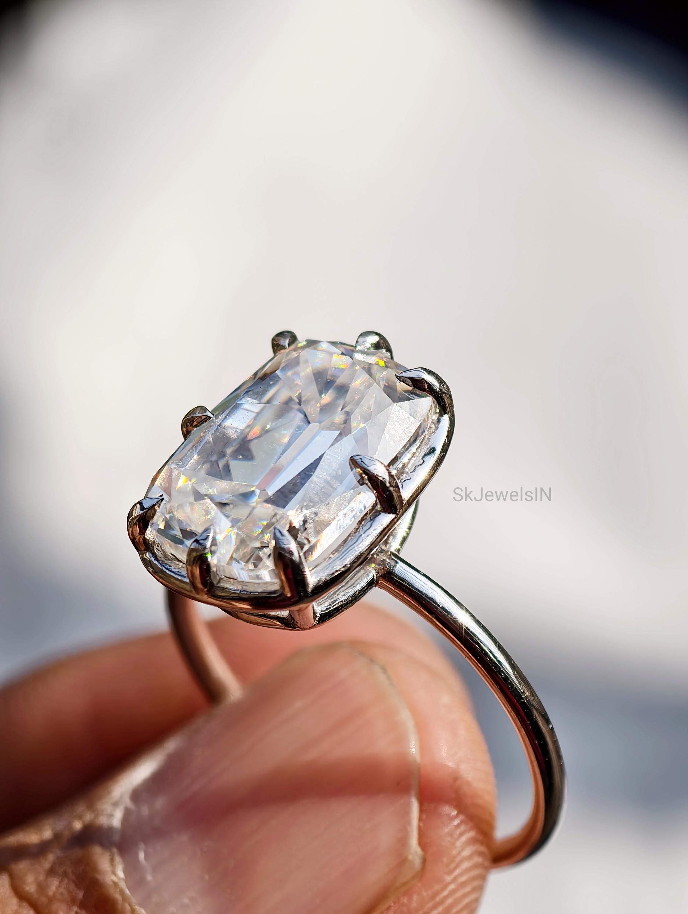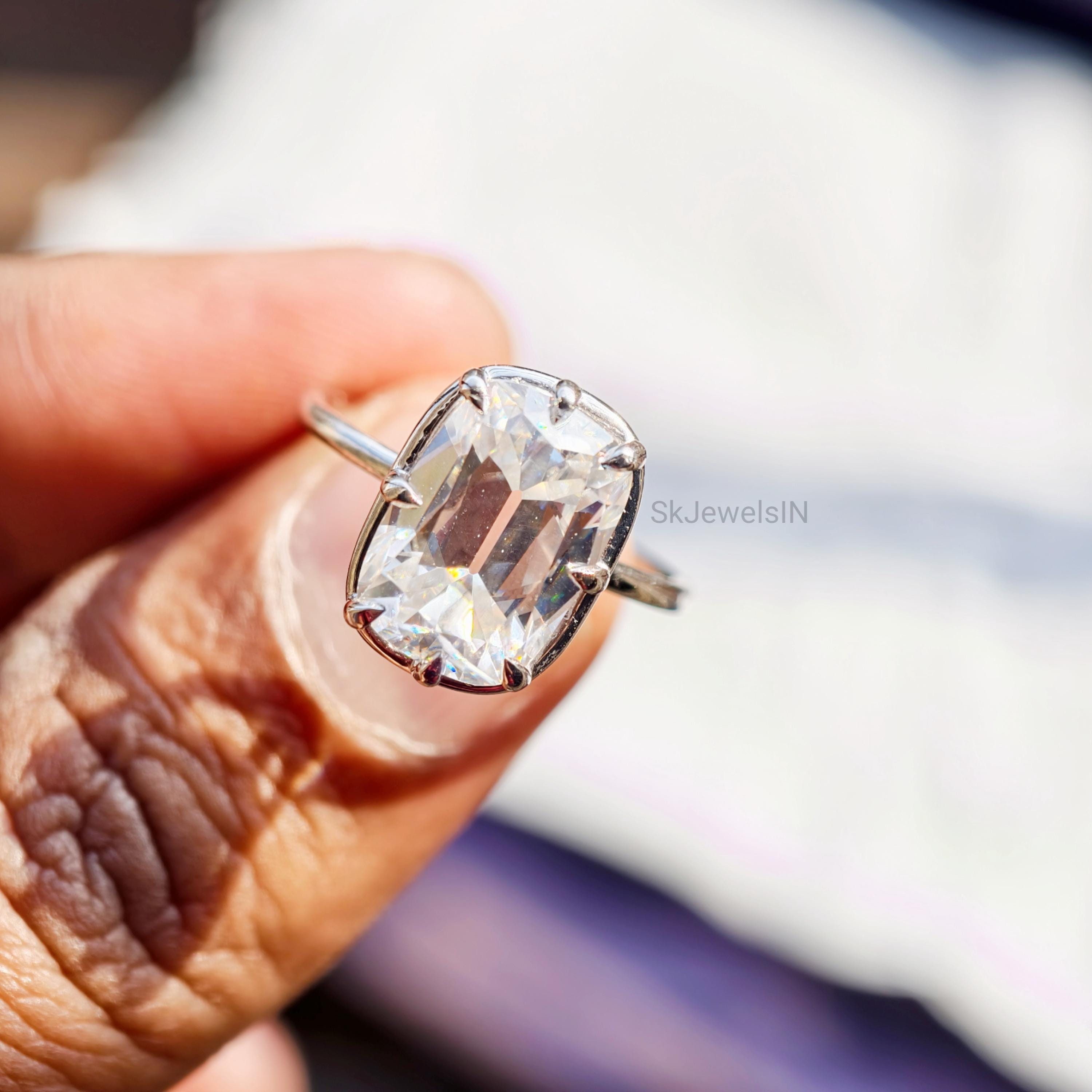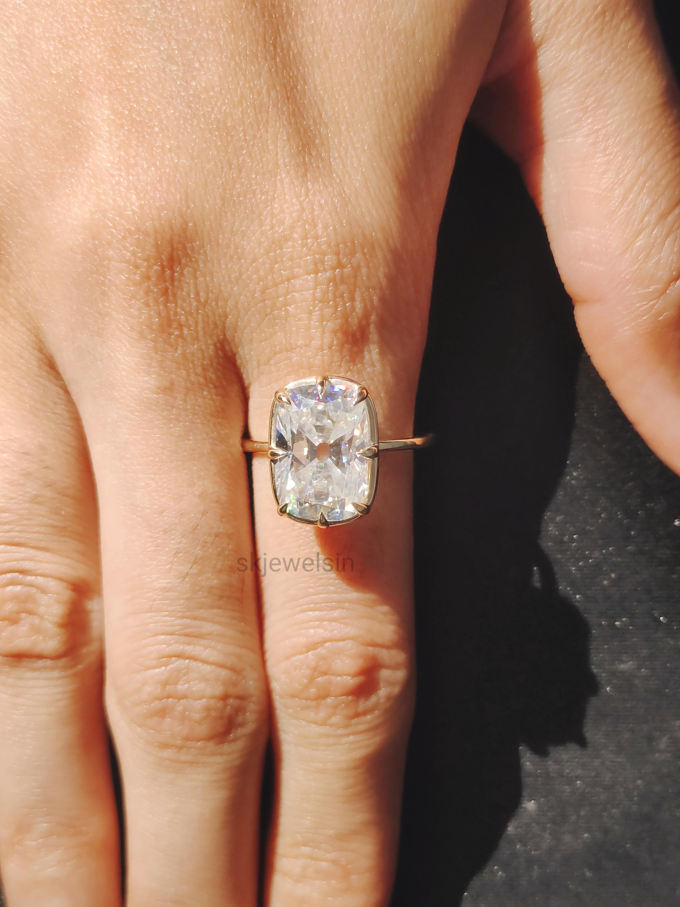 6 Carat Elongated Old mine Cushion Moissanite Engagement Ring,14K Gold Tiger Prong, Handmade Antique cut diamond, Wedding Gifts