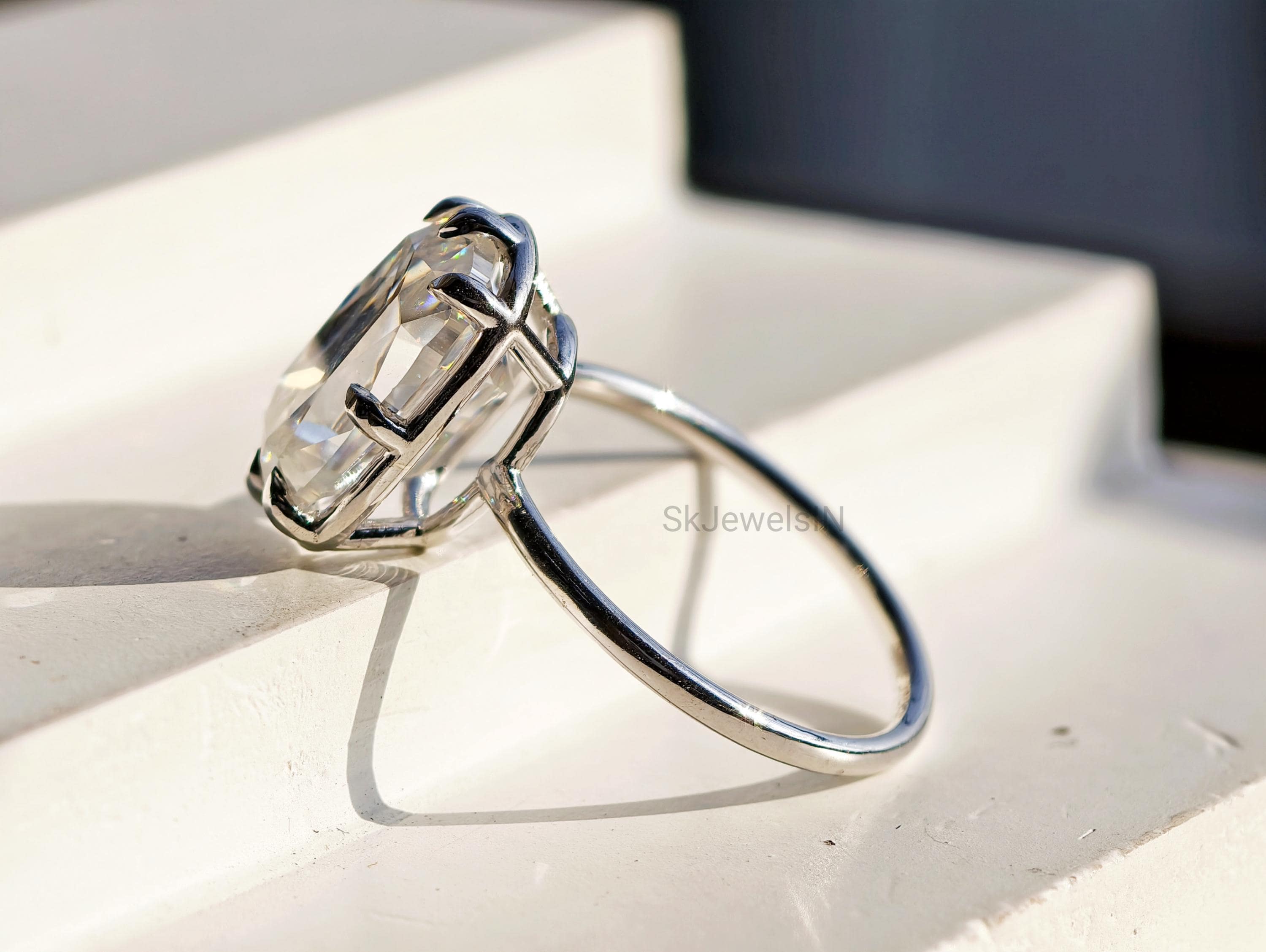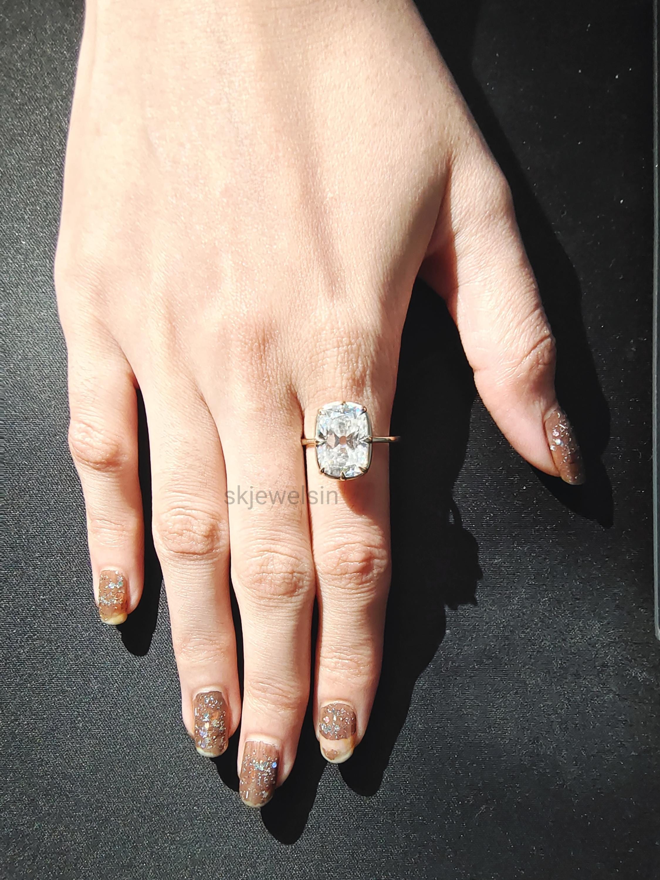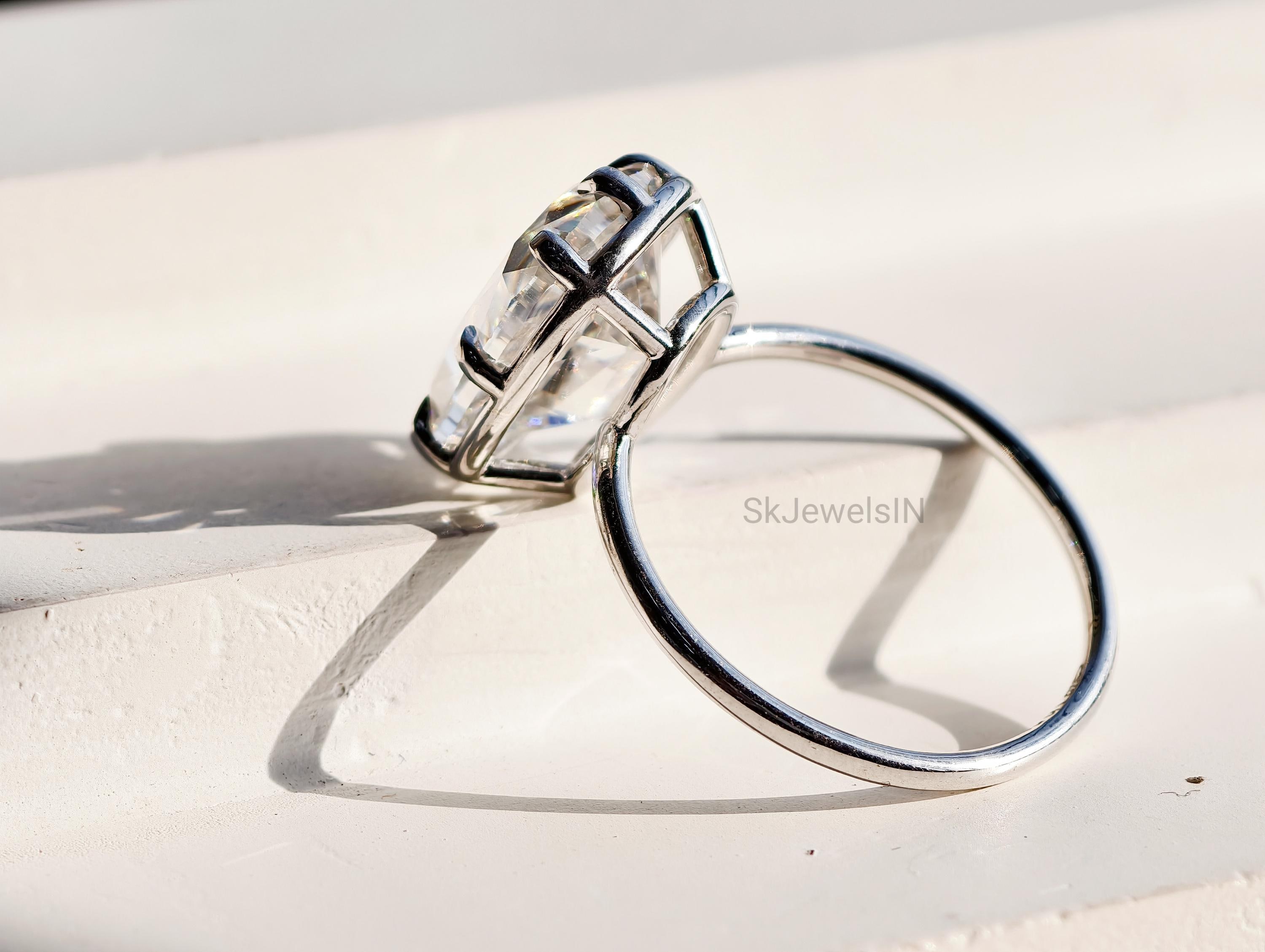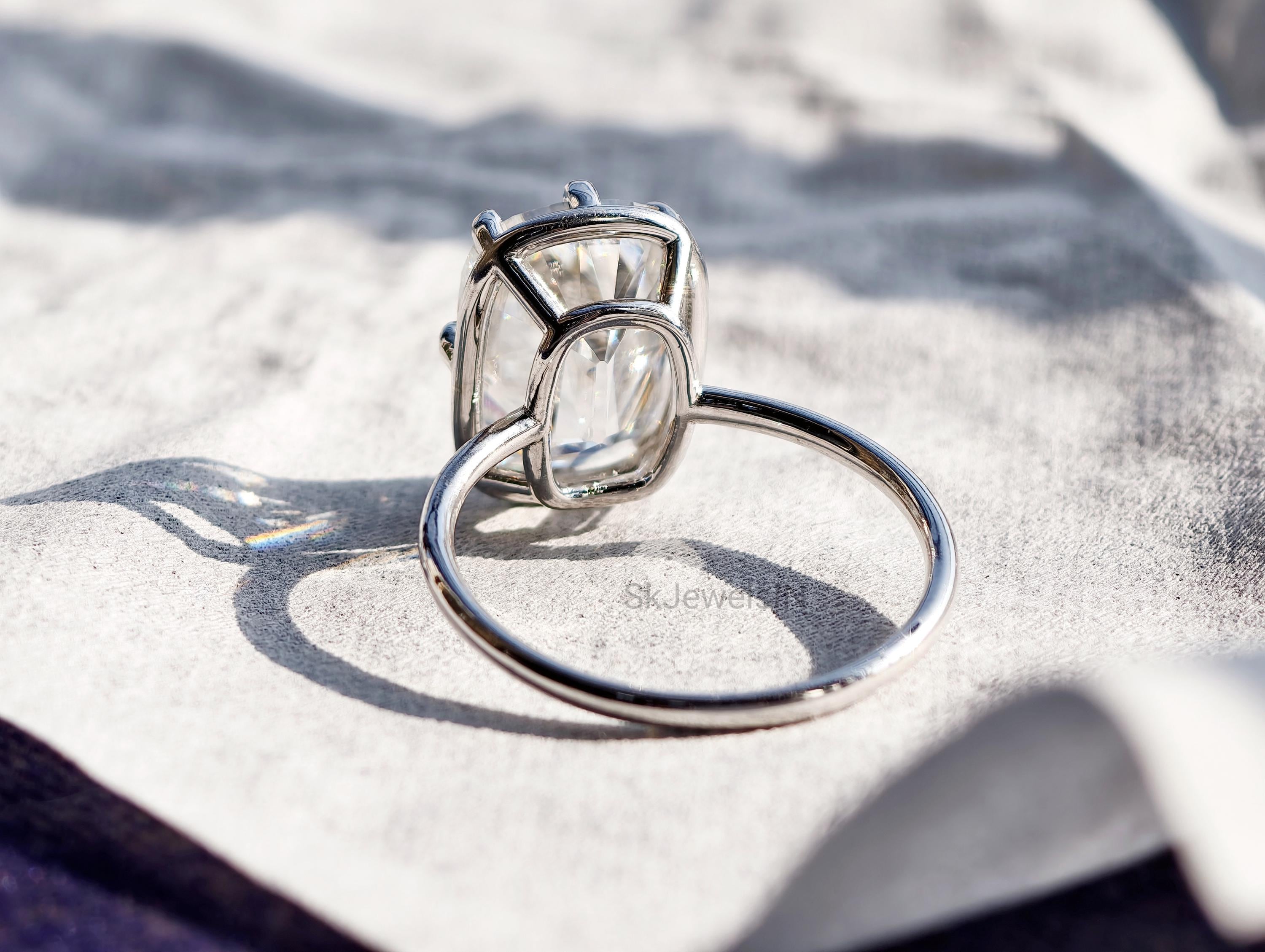6 Carat Elongated Old mine Cushion Moissanite Engagement Ring,14K Gold Tiger Prong, Handmade Antique cut diamond, Wedding Gifts