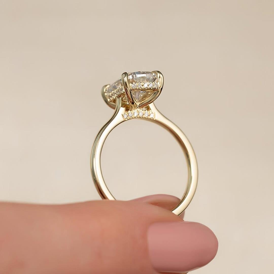 Elongated Cushion Cut Moissanite Ring, Art Deco Engagement Ring, 14K Gold Hidden halo Wedding Ring, Anniversary Gifts, Promise ring for her