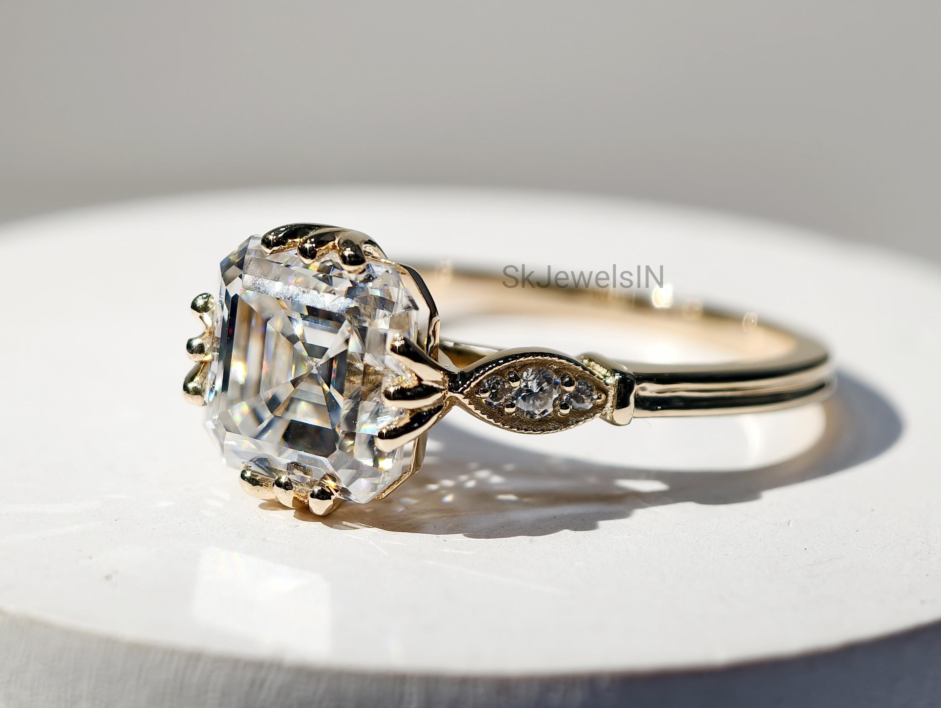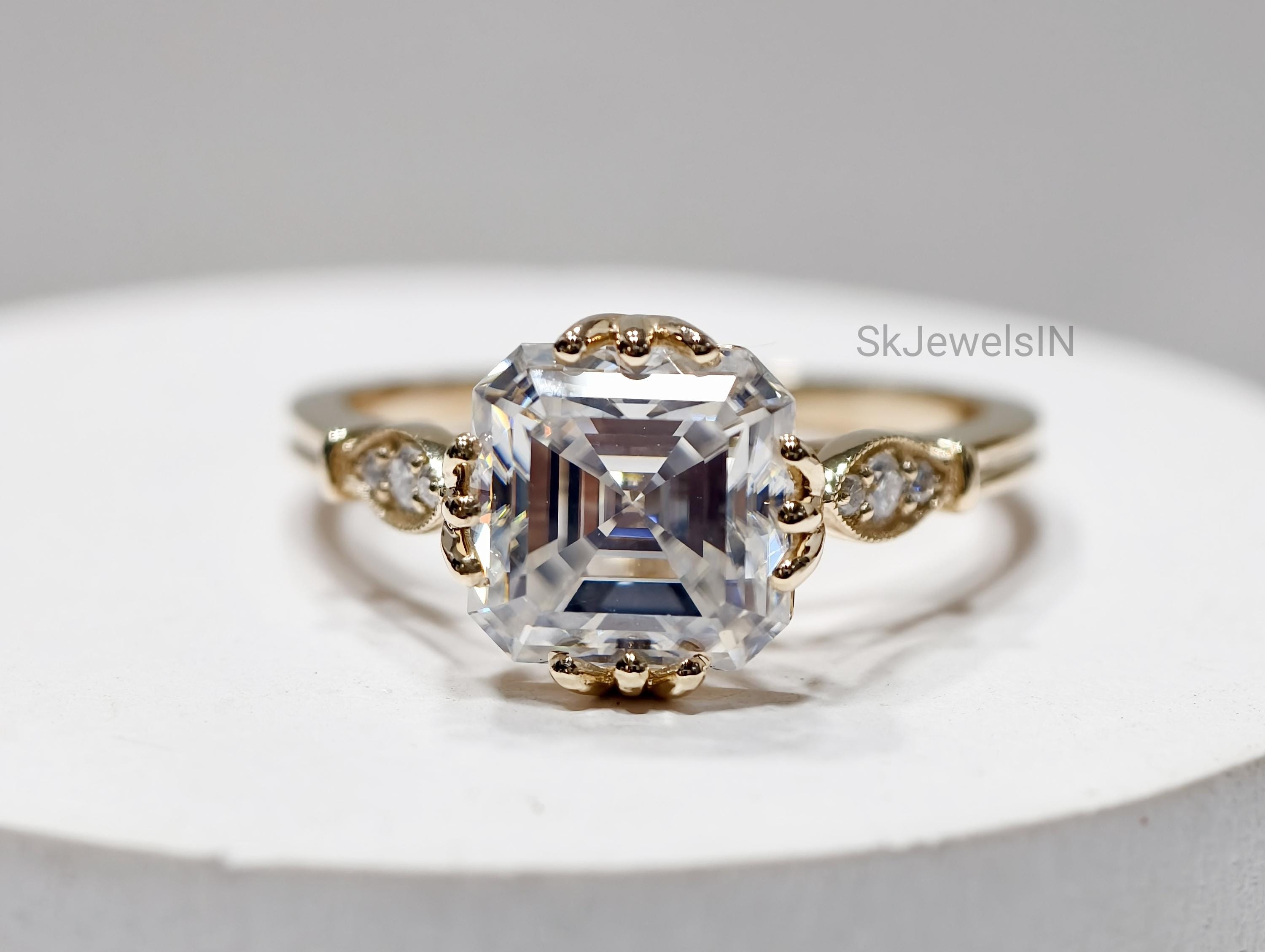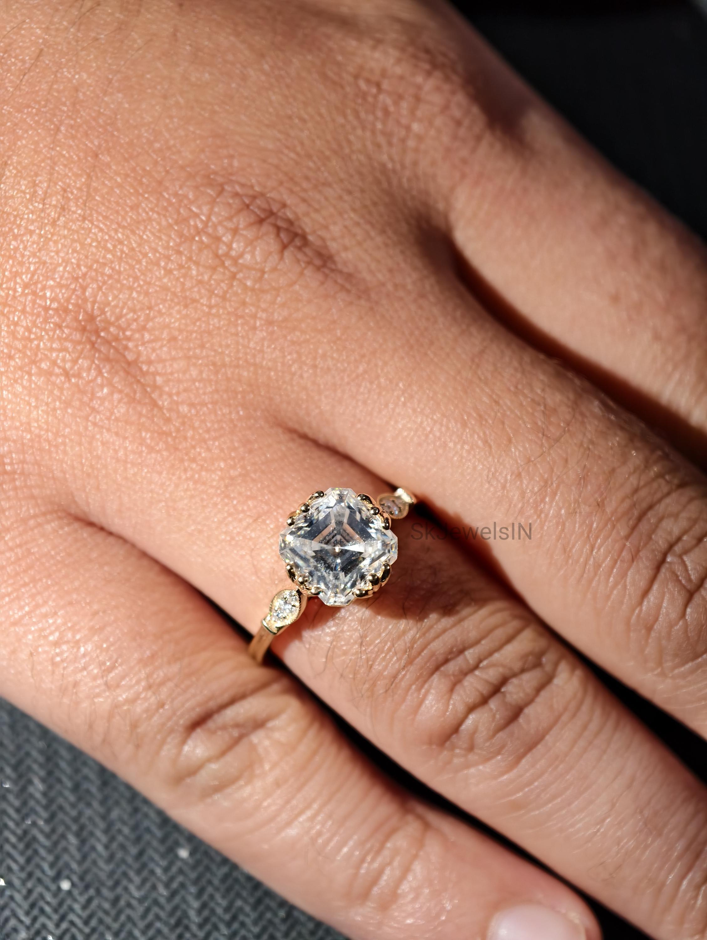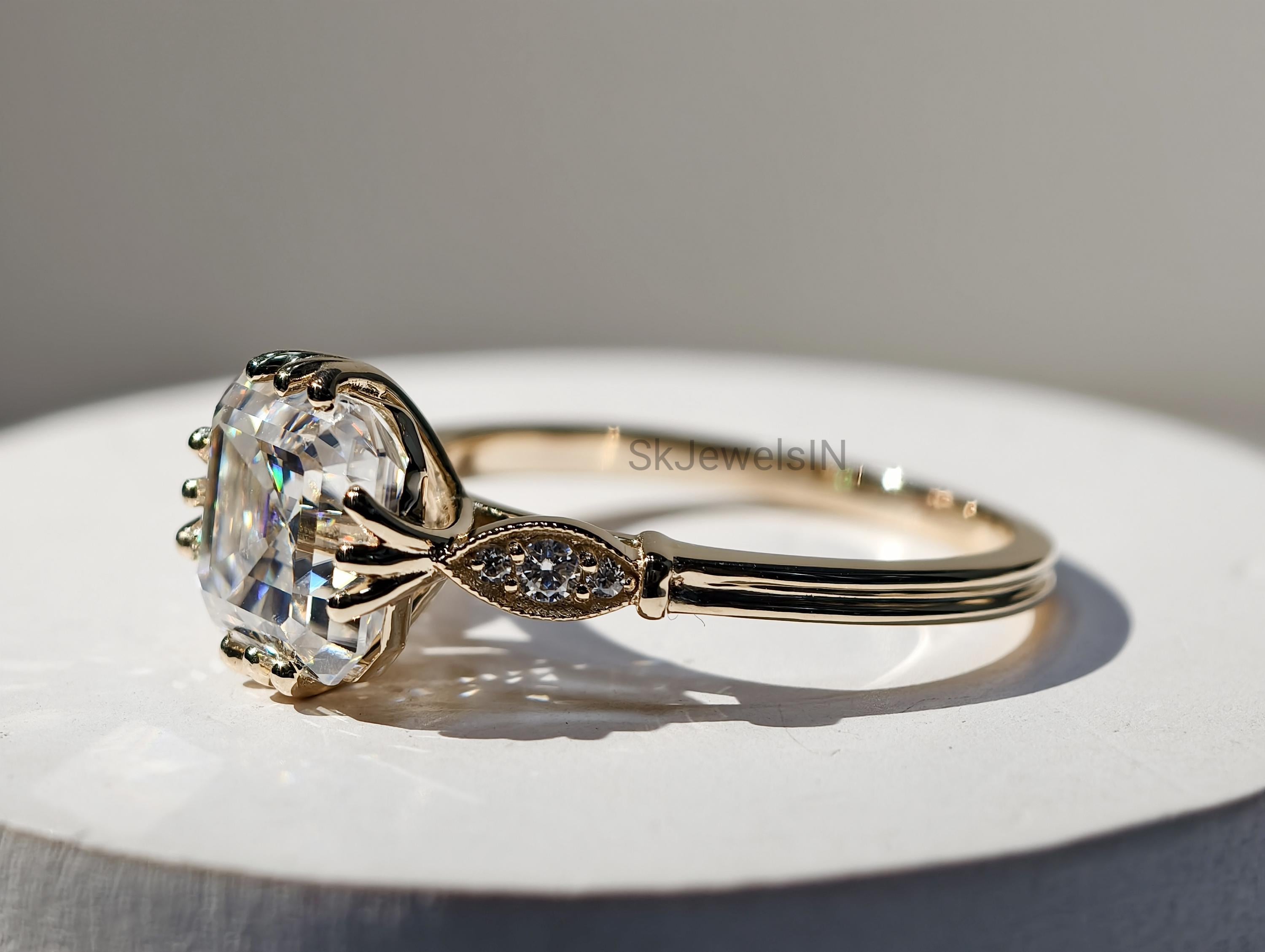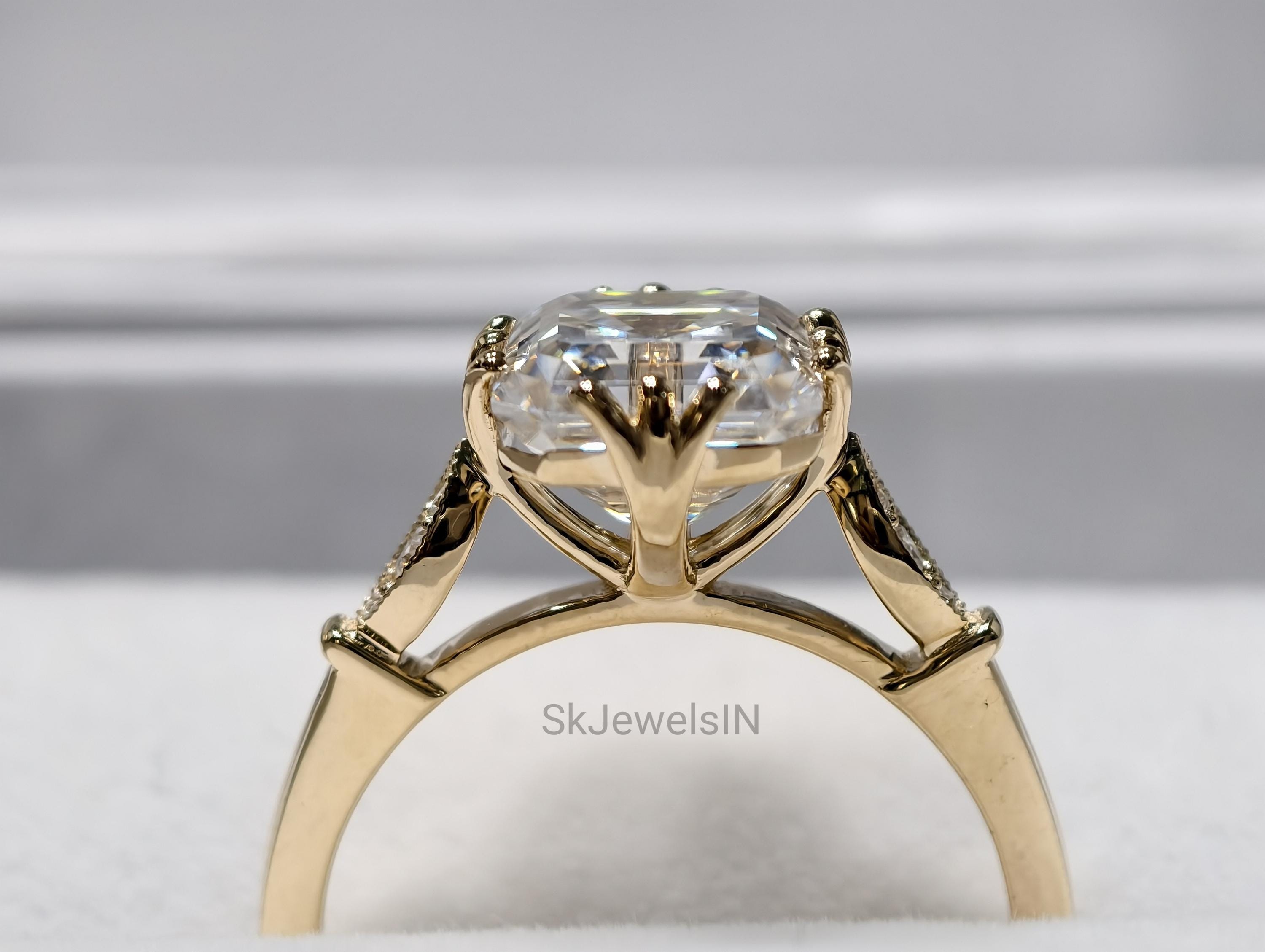 14K Gold Asscher Moissanite Engagement Ring, Unique Fish tail Prong Wedding & Anniversary Ring, Promise Ring, gift for her , birthday gifts